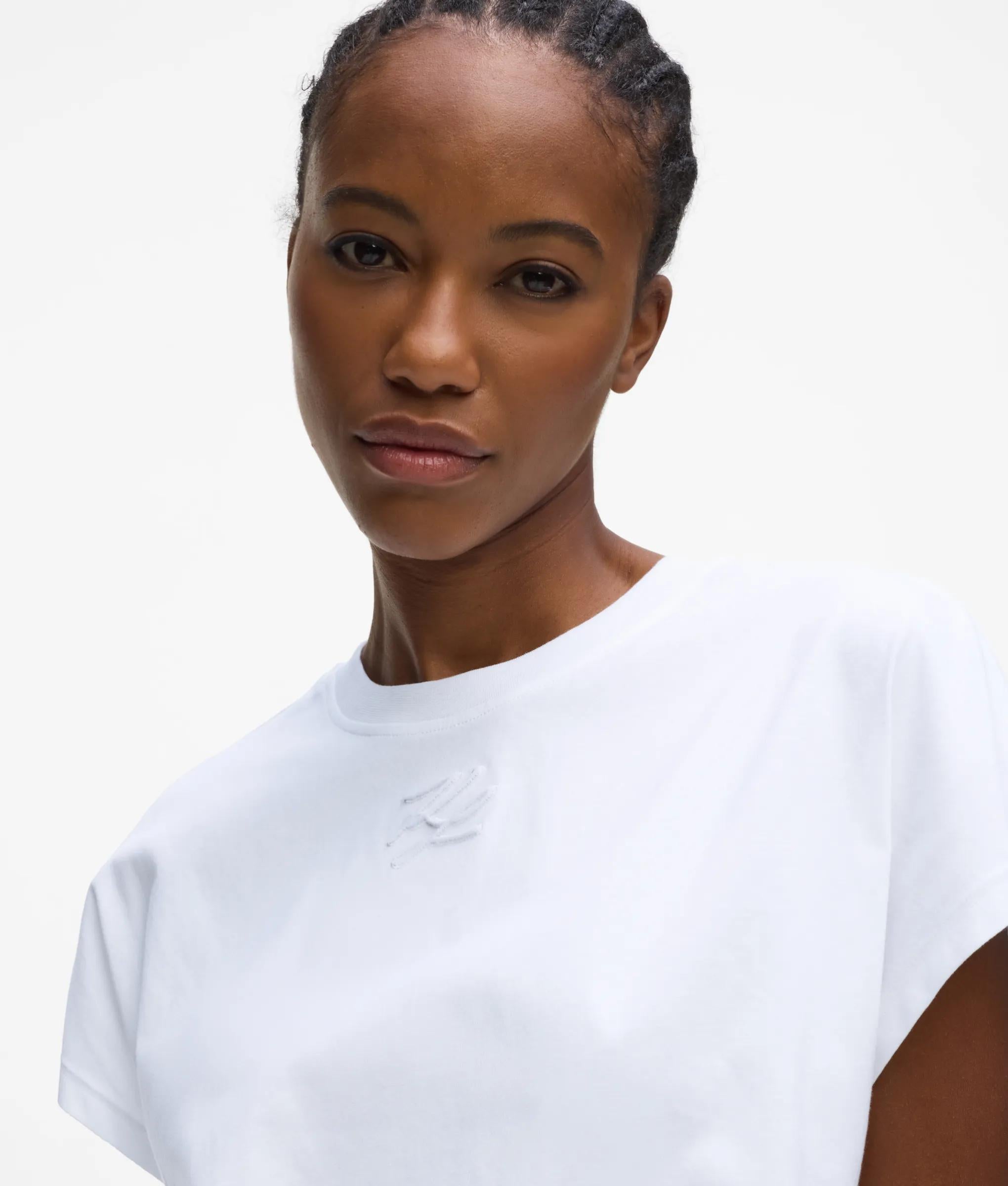 Soft organic cotton shapes a relaxed silhouette with subtle logo details. This crew-neck T-shirt balances comfort with a quiet edge, perfect for everyday ease.