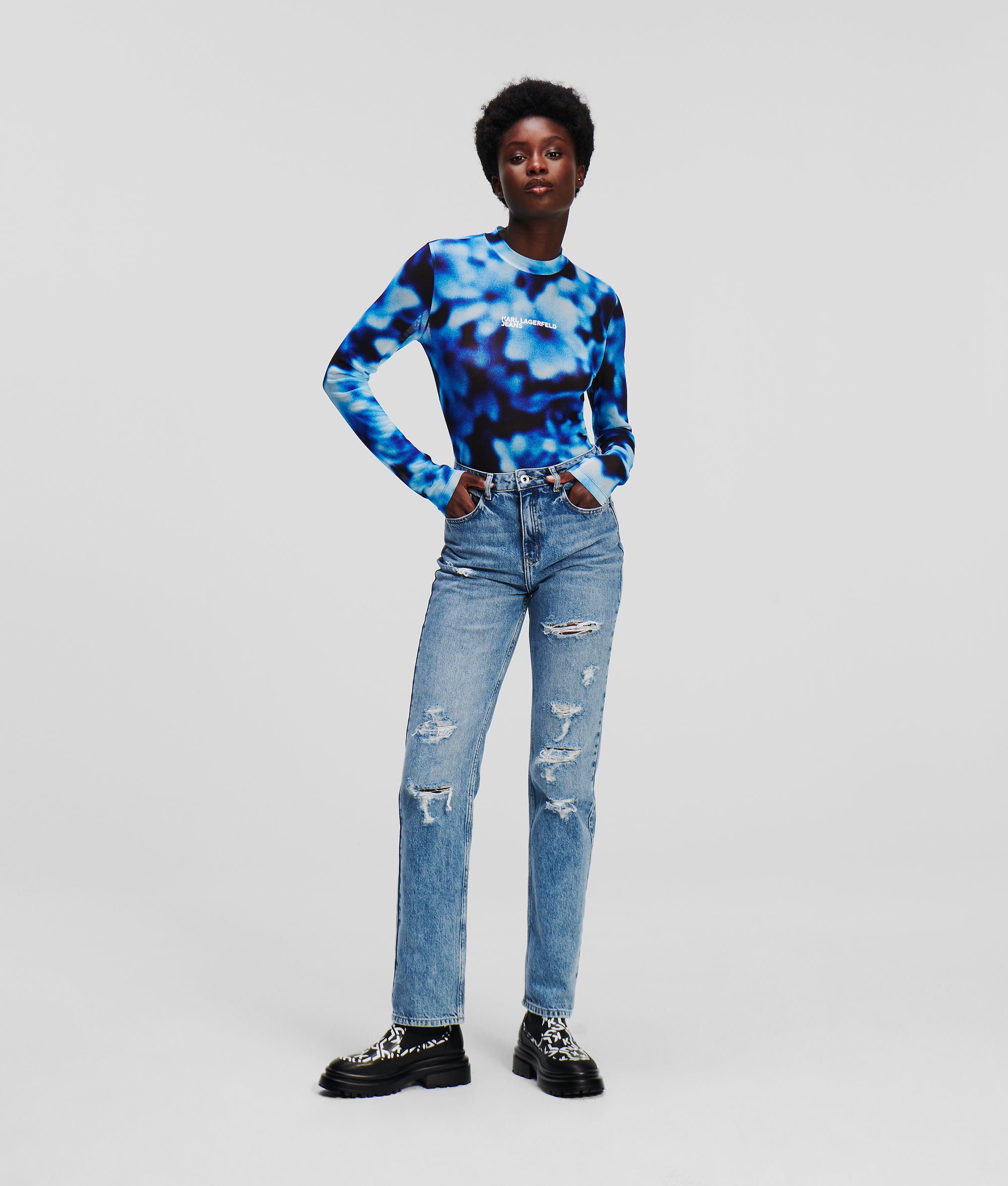 DISTRESSED HIGH-RISE STRAIGHT JEANS