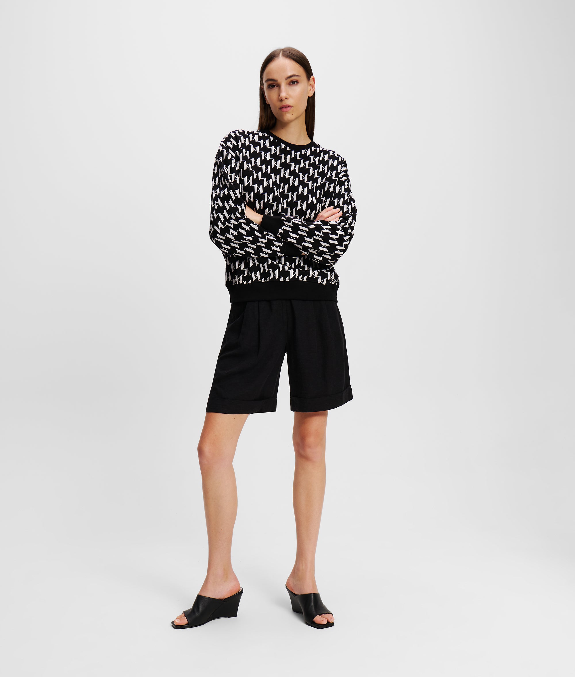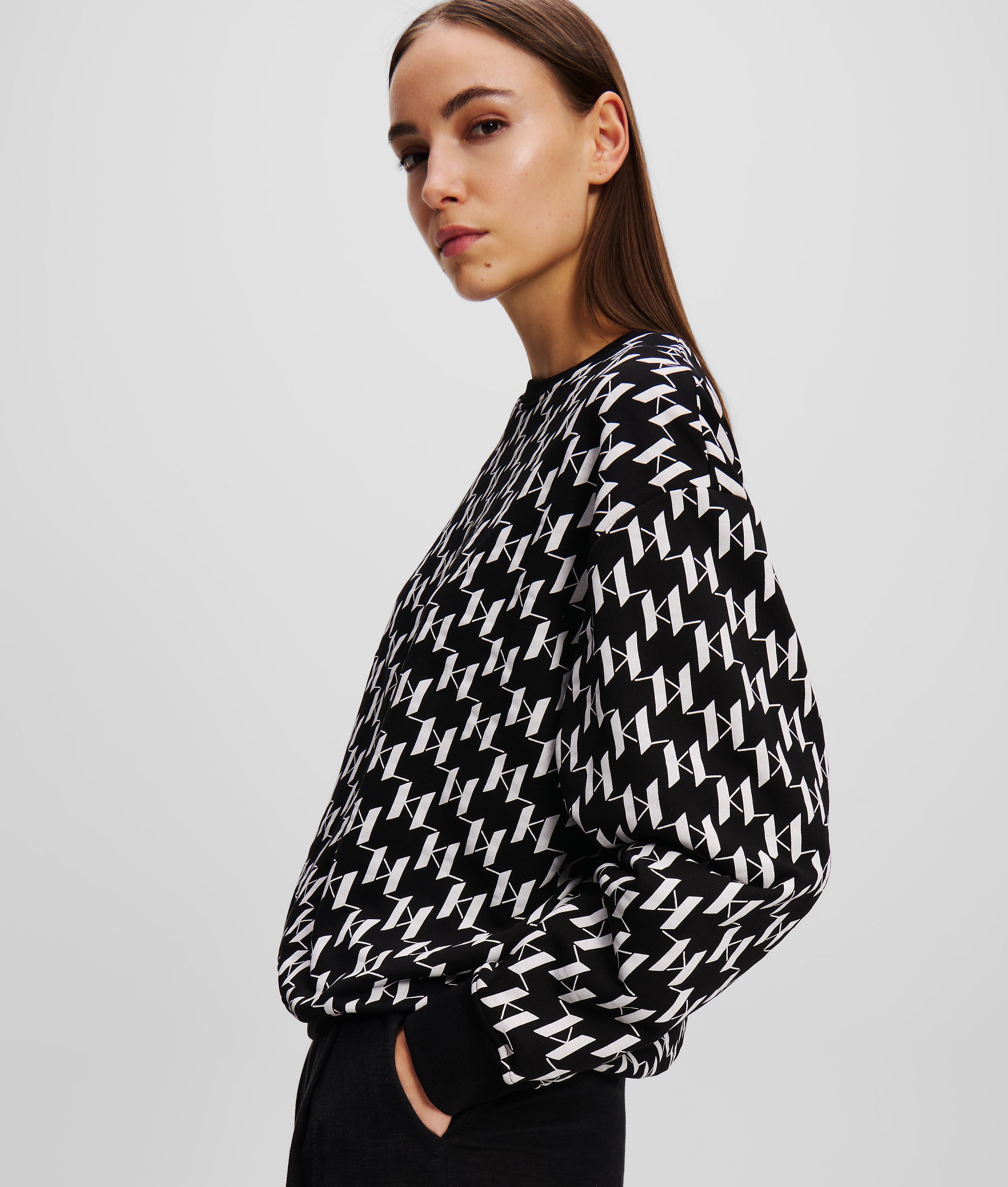Unveil your inner confidence with this monogrammed sweatshirt, blending a roomy relaxed fit and dropped shoulders for ultimate comfort. Designed with a crew neck and long sleeves framed by ribbed cuffs, this off-duty classic is adorned with an all-over KARL Monogram for instant impact.
