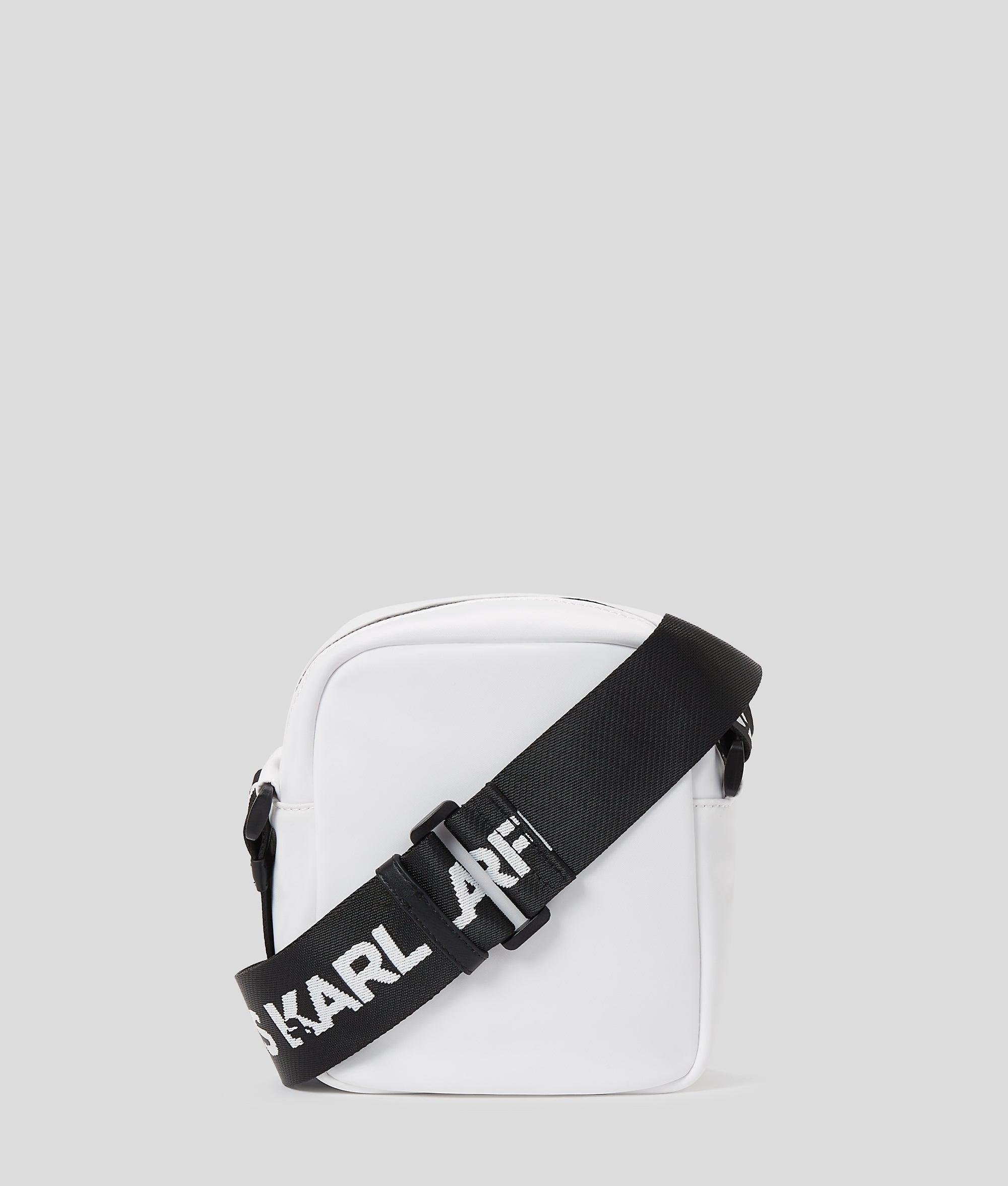 Upgrade your everyday accessories with this crossbody bag, featuring a zip-top opening and a front pocket to keep essentials safely at hand while on-the-go. An adjustable strap allows you to switch-up your style, while the bold KARL LAGERFELD JEANS logo adds the brand's signature style.