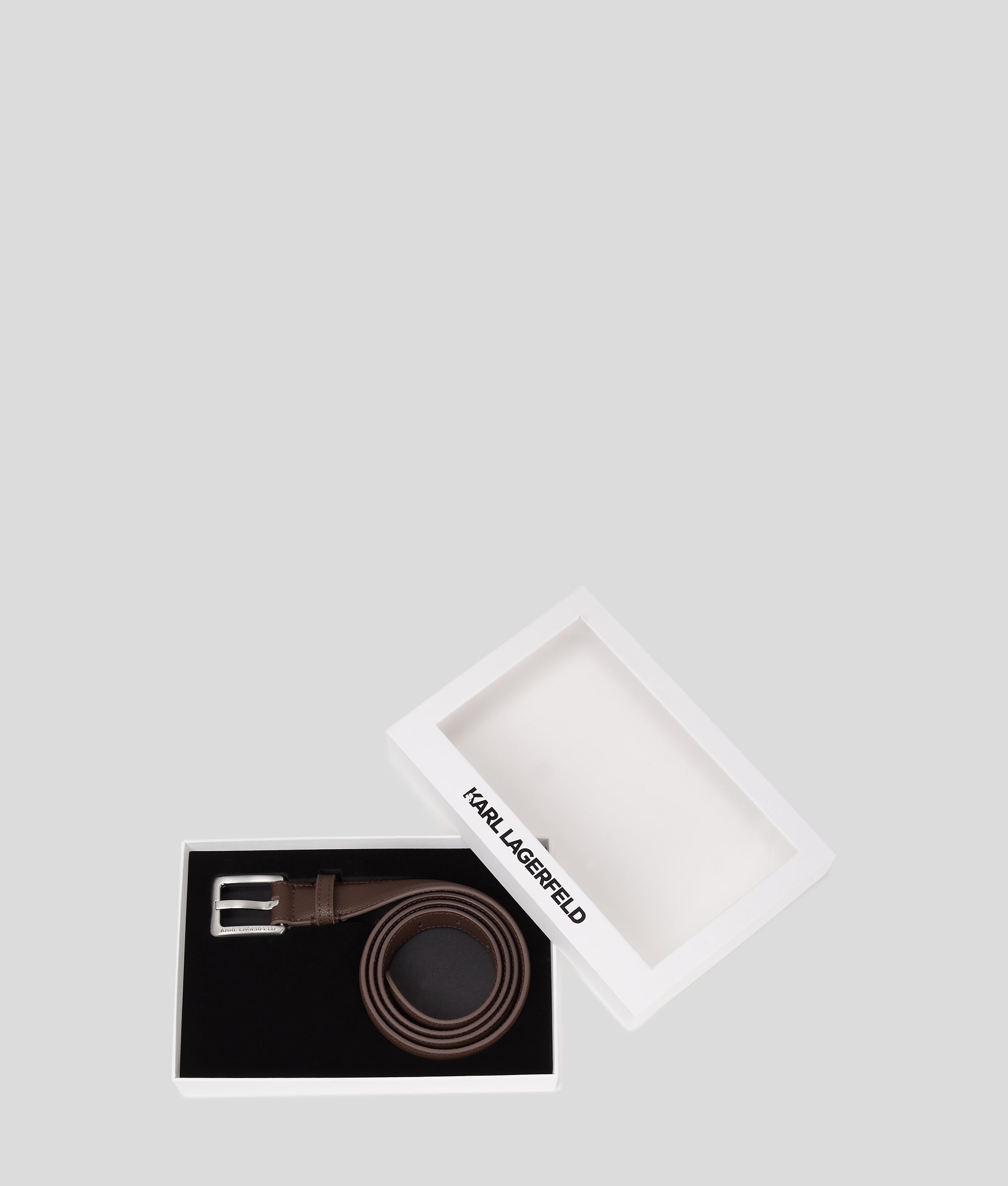 $149 USDA classic leather belt combining timeless style with modern functionality. Featuring an adjustable buckle engraved with the iconic KARL LAGERFELD logo, it arrives beautifully presented in a branded gift box.