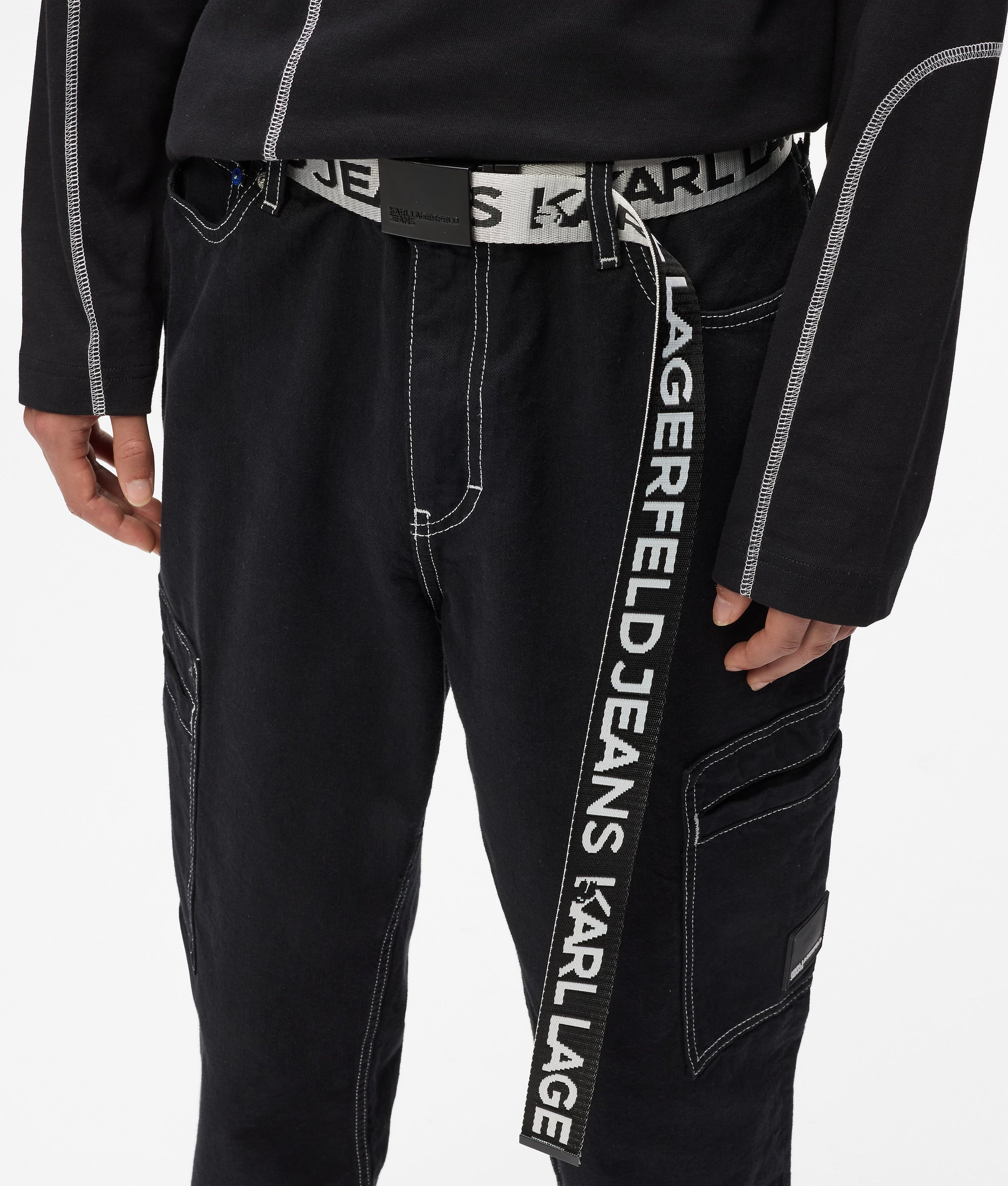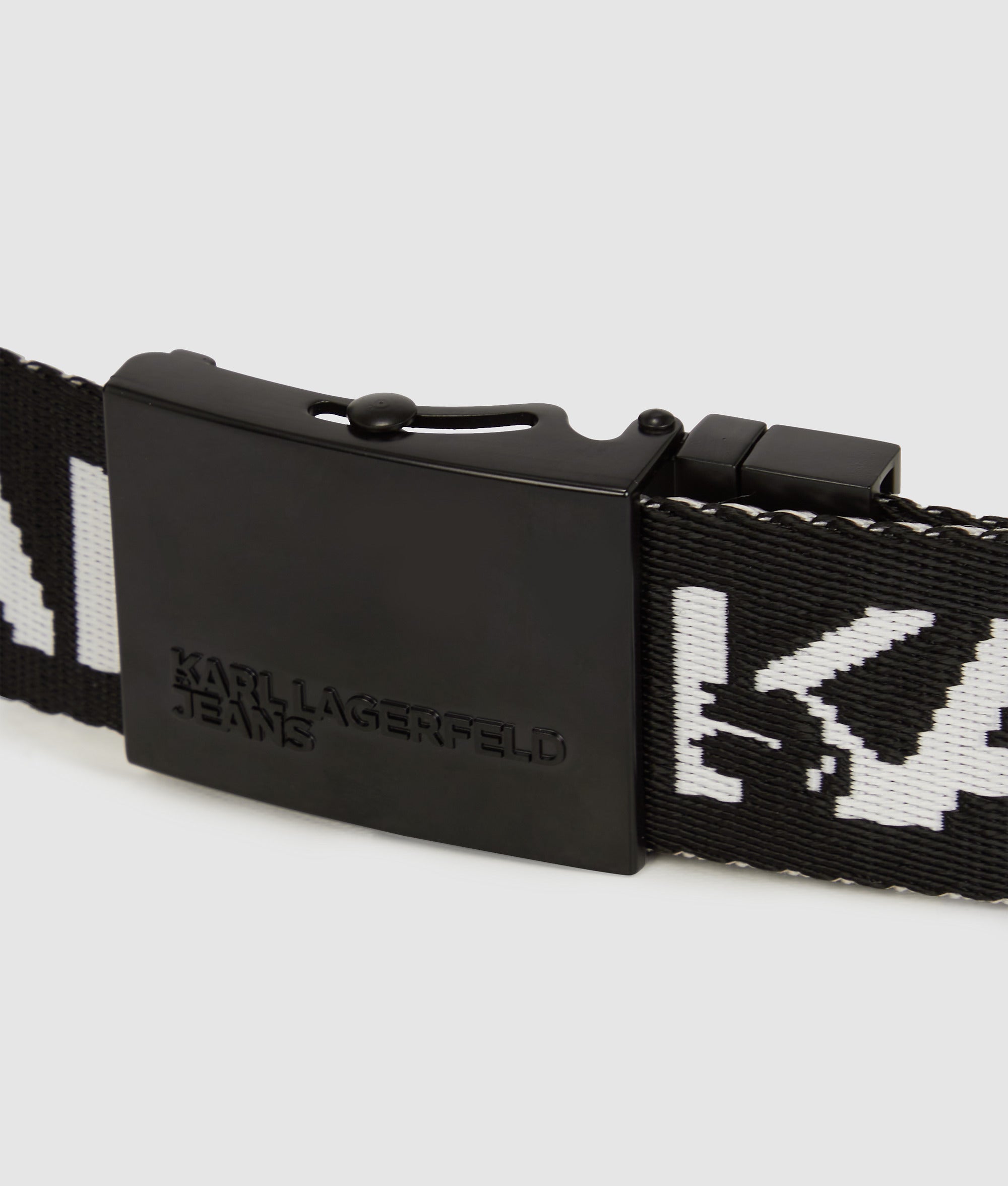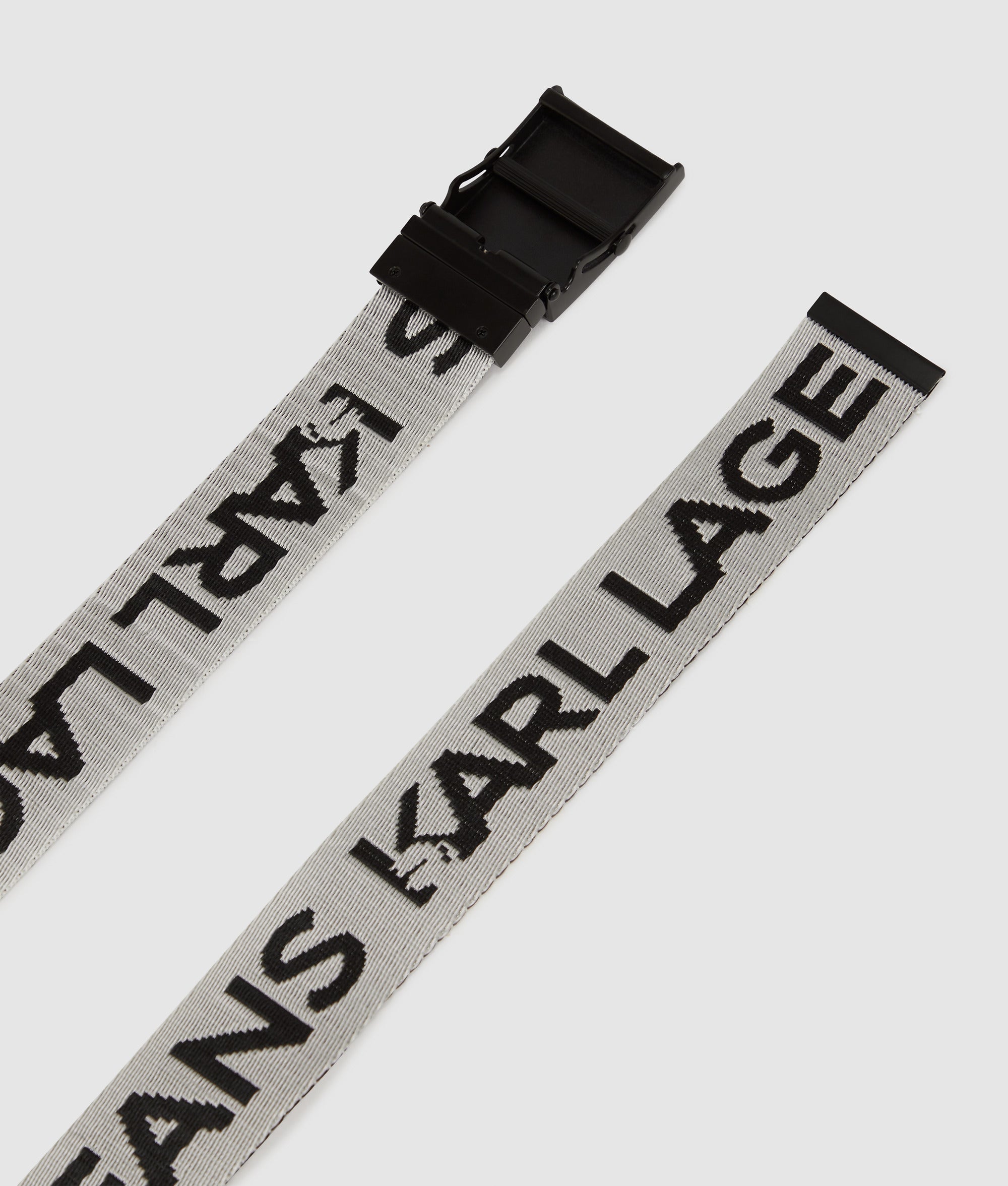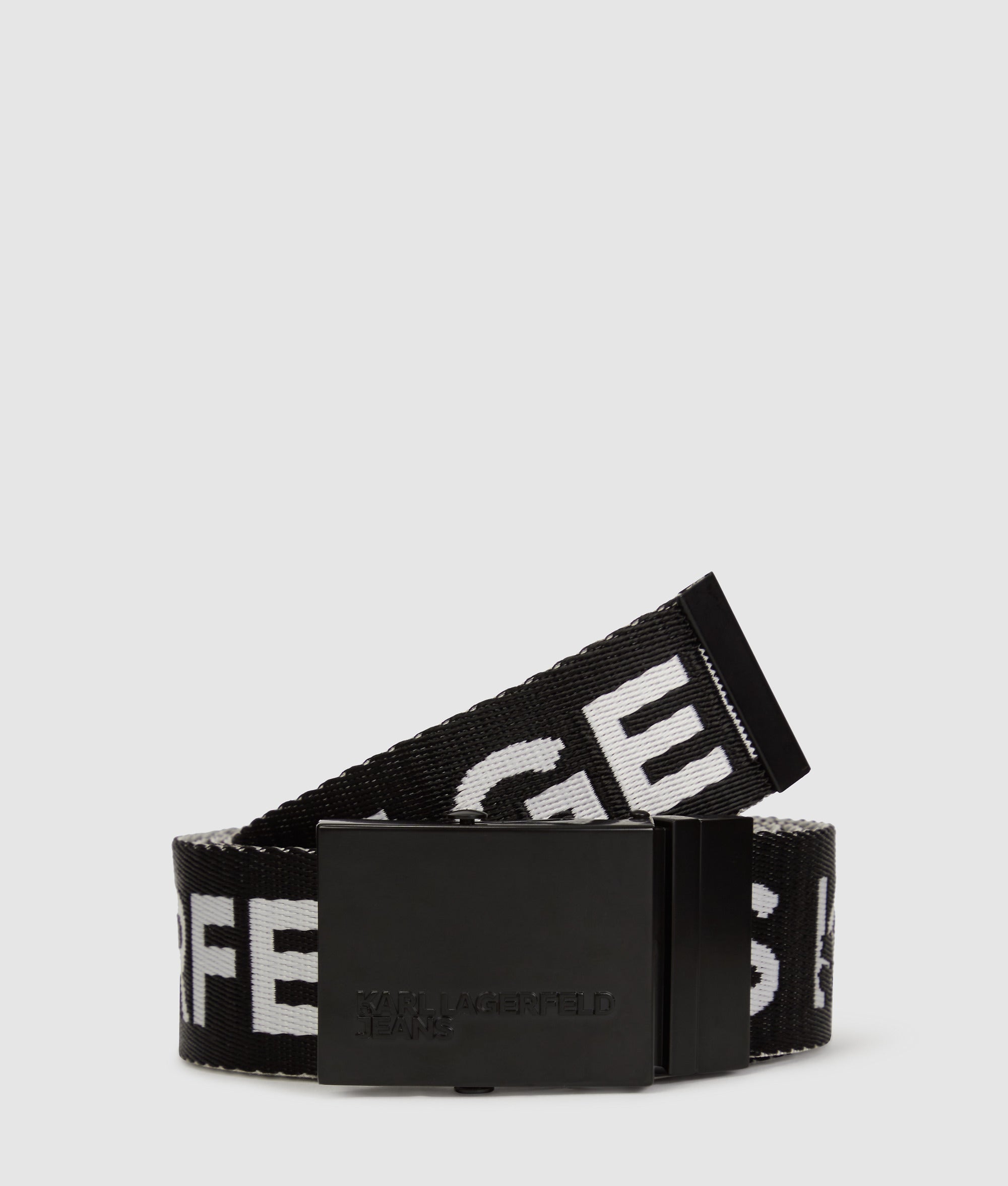 $85 USDDial-up the attitude with this bold reversible webbing belt. Featuring a metal adjustable buckle and statement KARL LAGERFELD JEANS branding along both sides of the strap, it offers a bespoke fit and versatility.