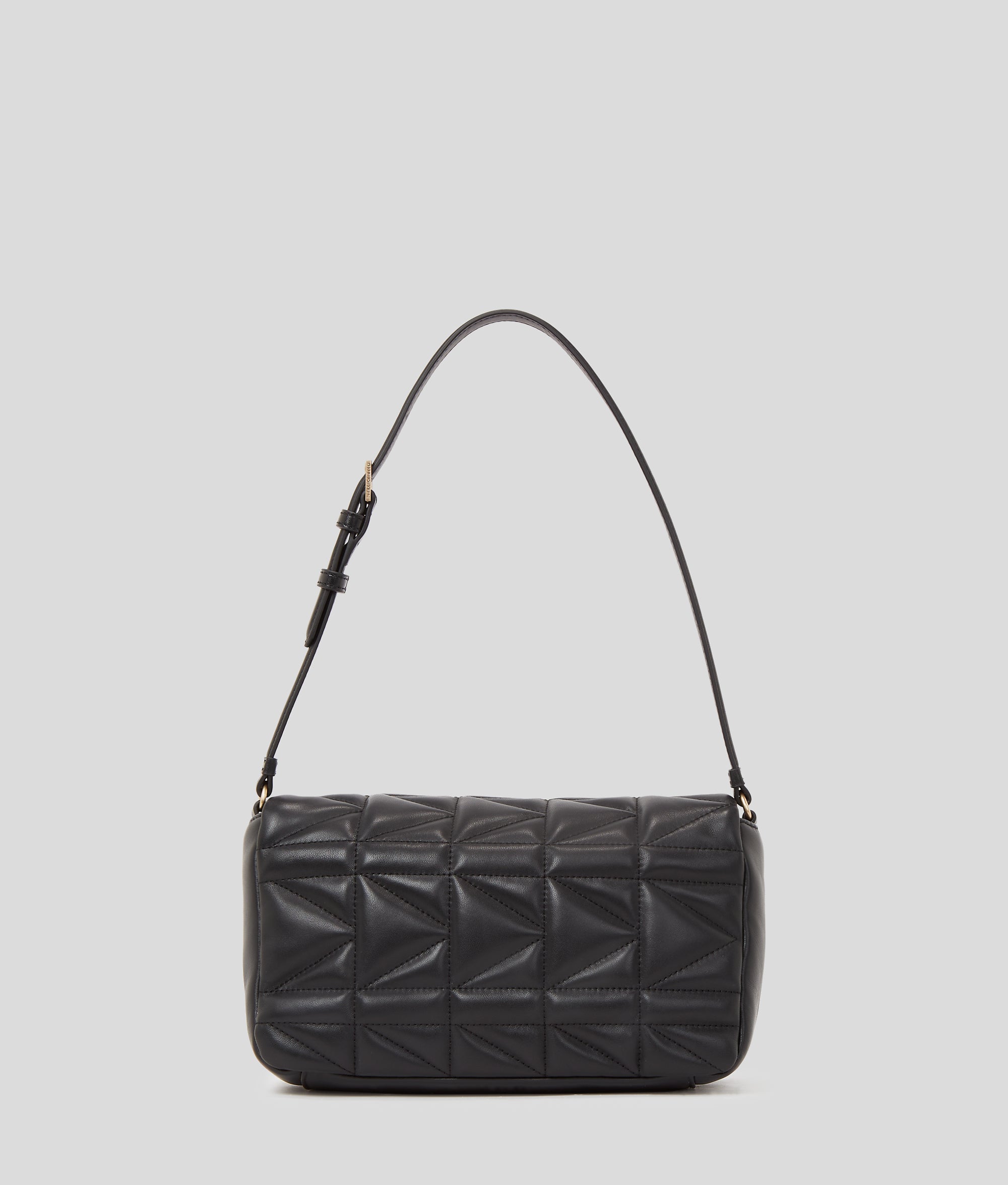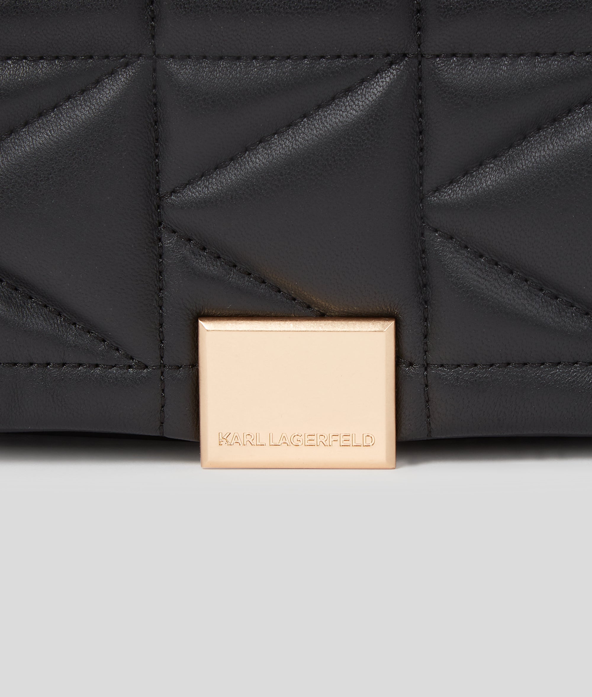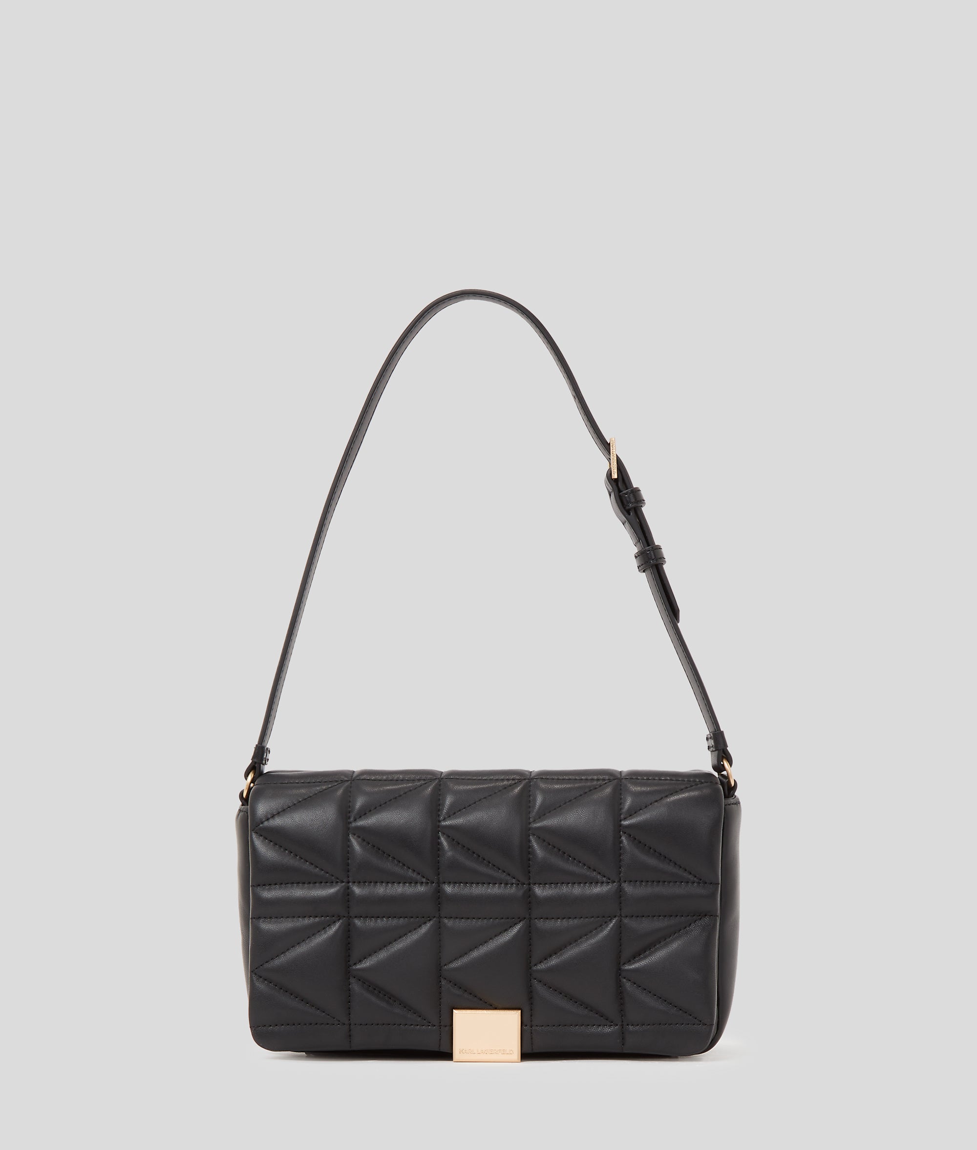Soft, pillowy quilted charm meets sleek sophistication in this K/Kuilt shoulder bag. Featuring a secure push-lock closure and adjustable shoulder strap, the medium-sized silhouette is finished with a chic KARL LAGERFELD metal plaque at the front.  Embellished with quilted details and plush texture, the trademark 'K' stitching adds a unique dimension to this modern classic