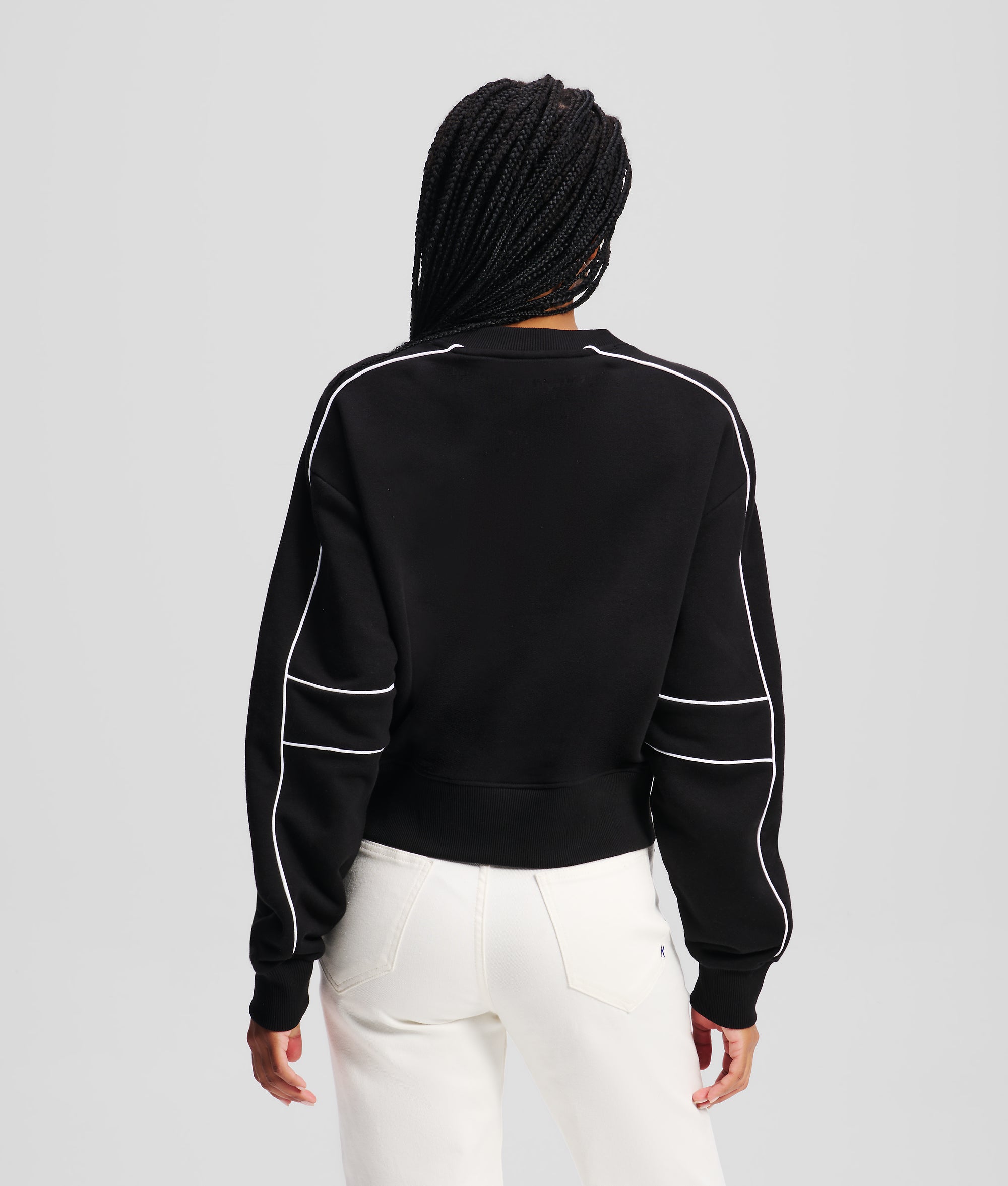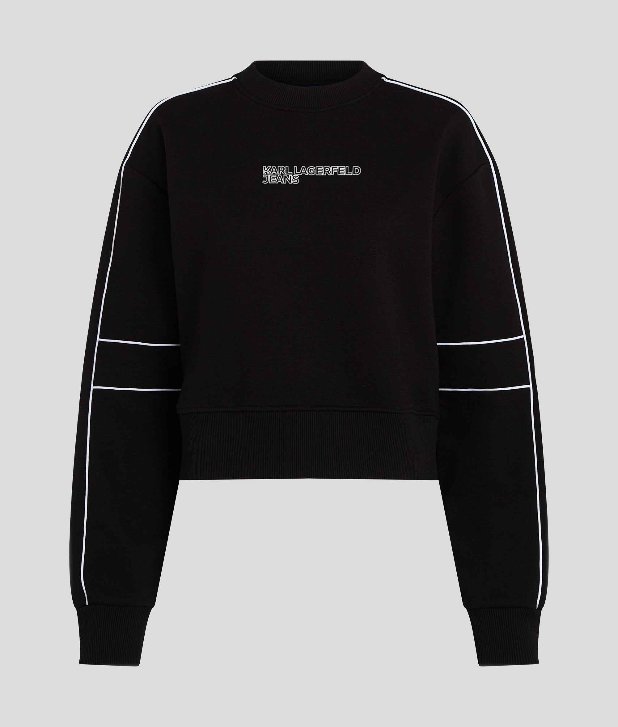 A bold take on the classic sweatshirt. With its cropped cut and statement-making piping, this athleisure favorite is all about standing out. Pair with high-waisted jeans or a maxi denim skirt for an effortlessly cool look.