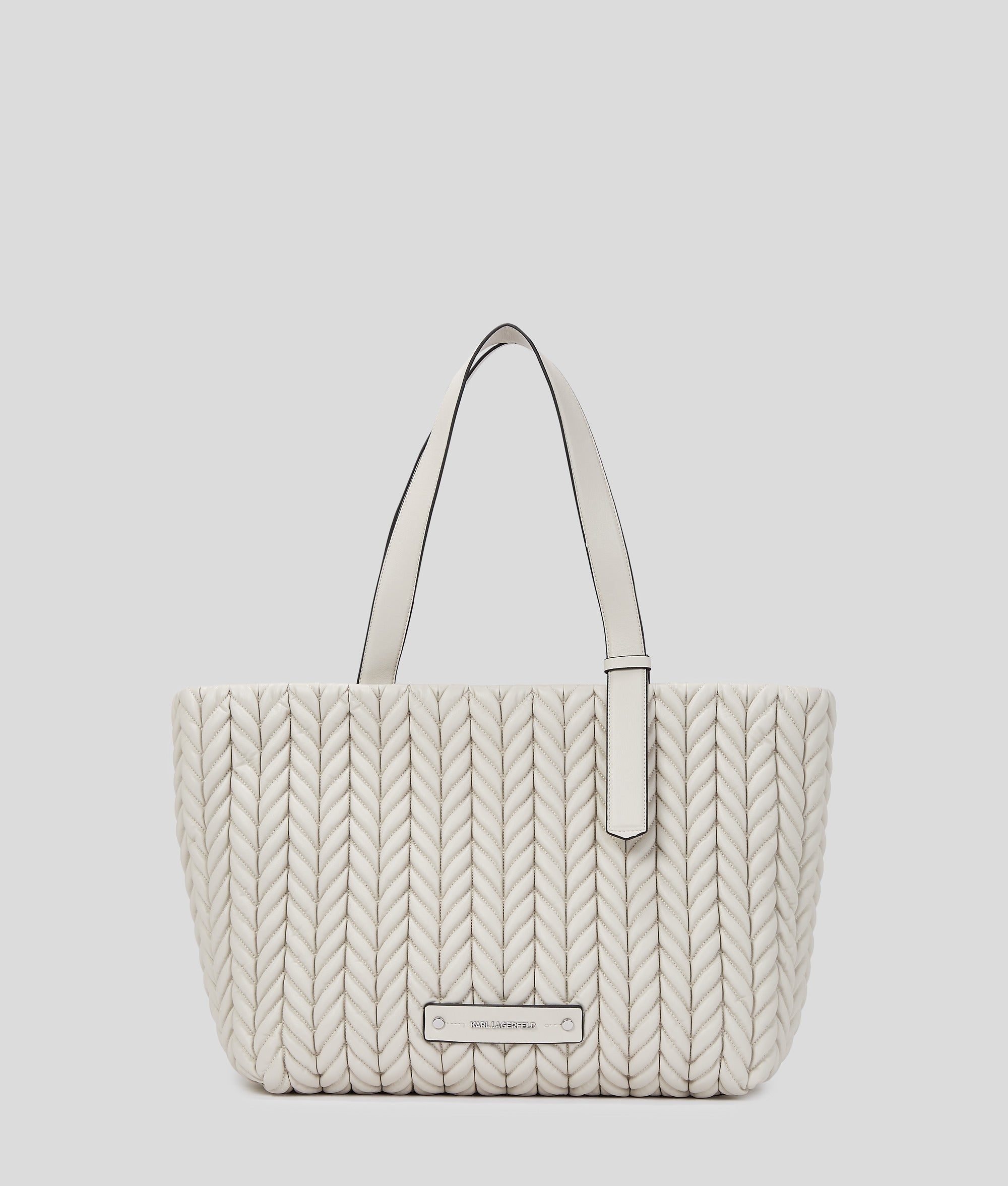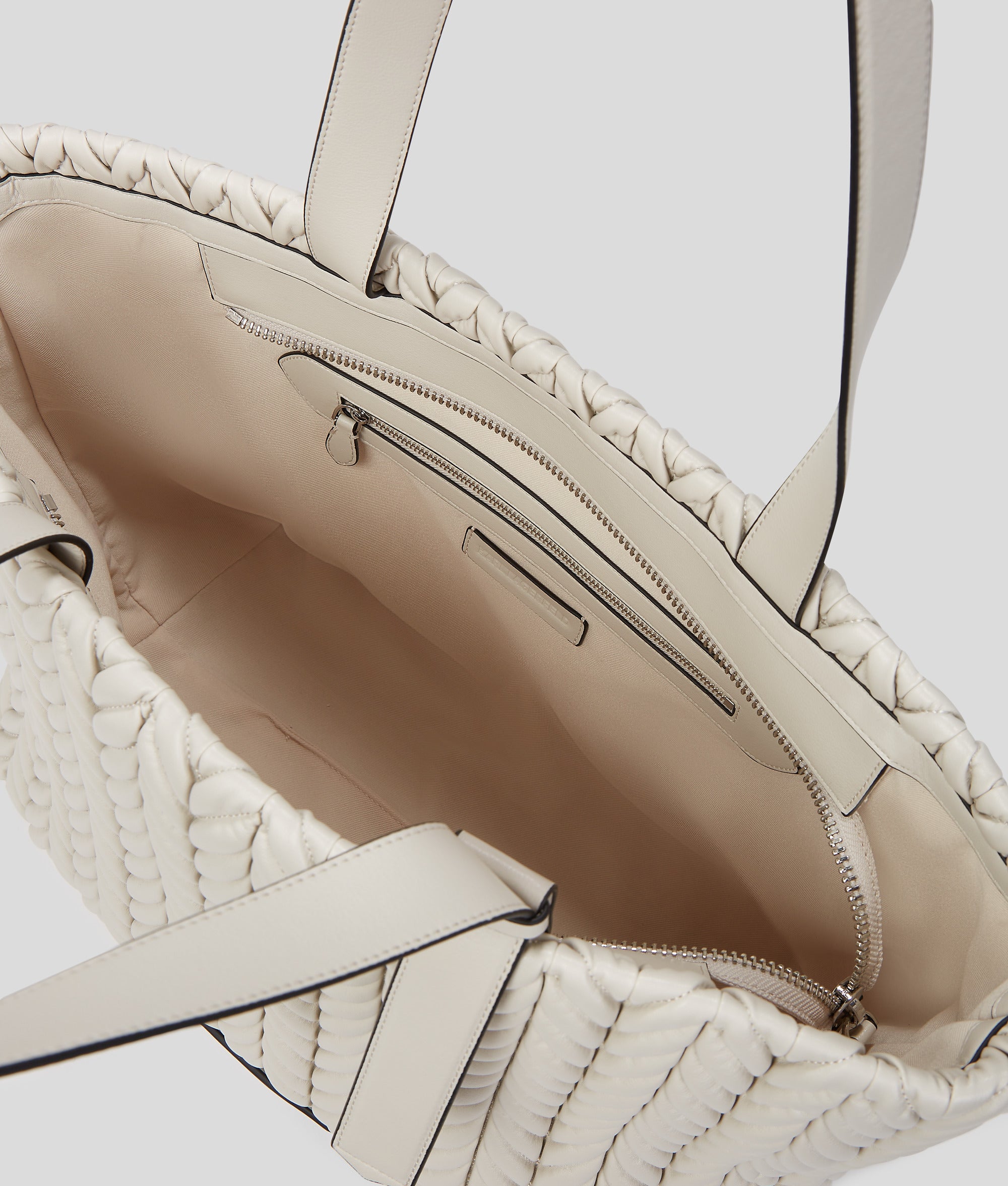 $369 USDA quilted braided pattern, inspired by Karl Lagerfeld's travel pillow, offers a luxurious and contemporary finish to this striking tote bag, complemented by understated KARL LAGERFELD hardware. With a secure zip-top closure and twin handles, essentials are effortlessly organized and easy to access when on the go.