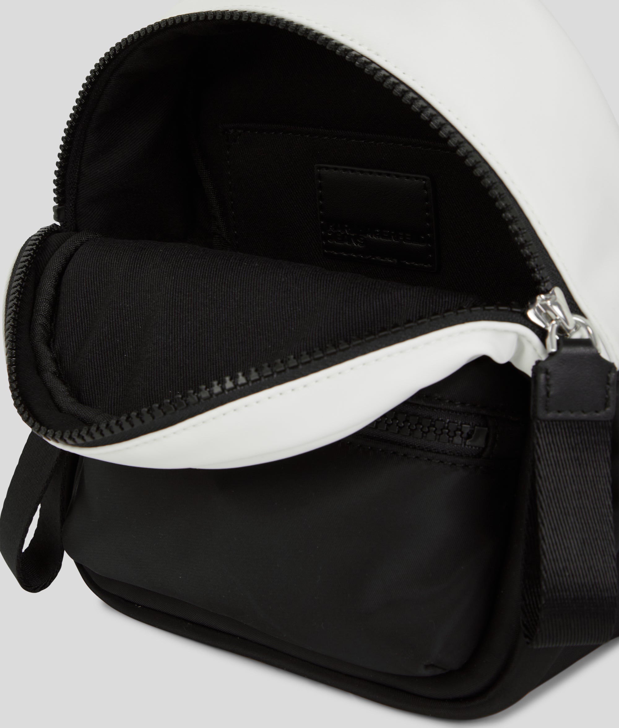 $189 USDThis mini backpack redefines compact chic with its playful silhouette, featuring a zip-around closure and a convenient front pocket. A top grab handle and adjustable crossbody strap offer versatility, and the striking black and white color block design makes a bold statement.