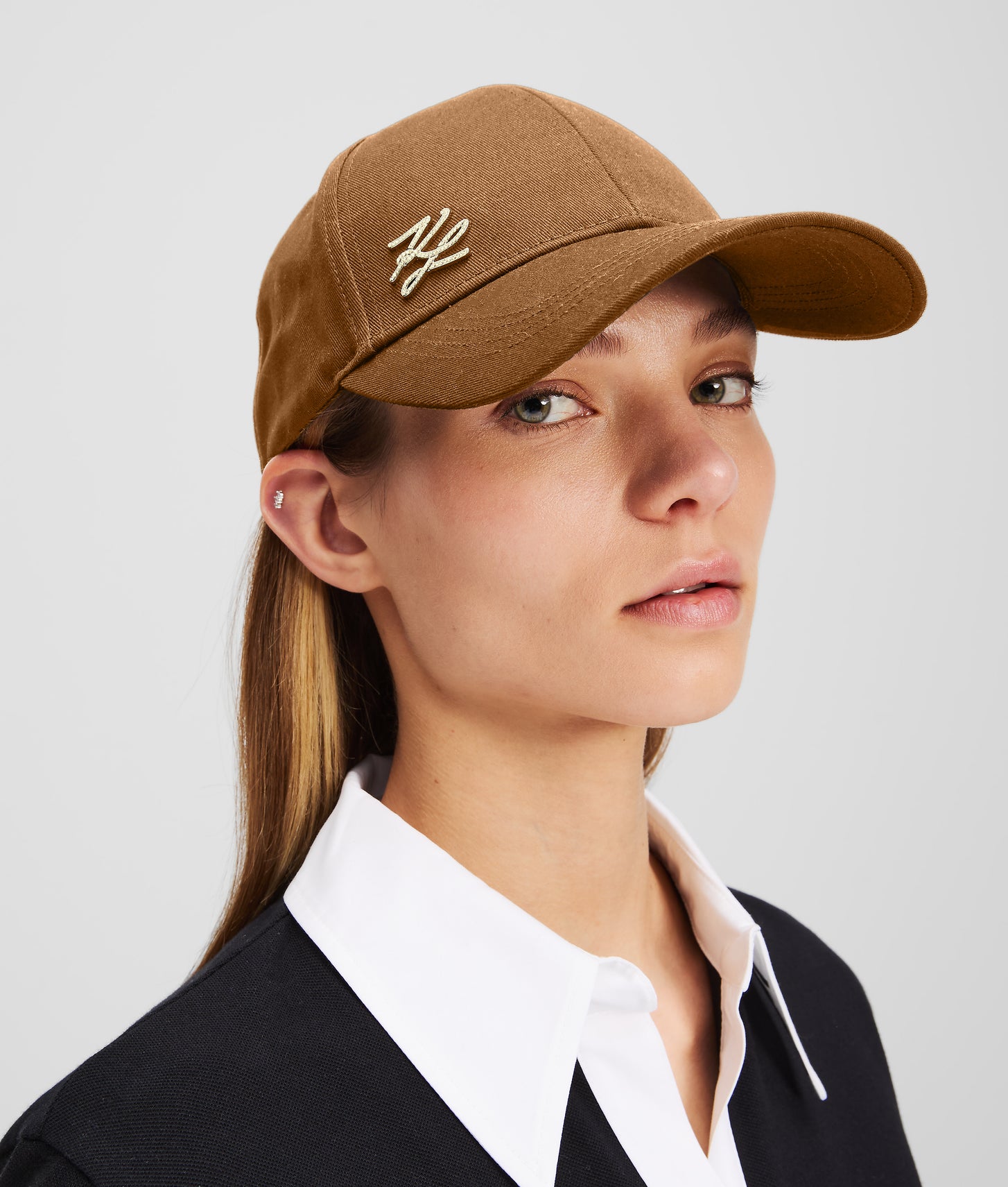 A wardrobe must-have with a modern twist, this classic cap is adorned with a shimmering Karl Autograph rhinestone pin above the visor. Featuring an adjustable strap for a personalized fit, it brings together functionality with a playful touch.