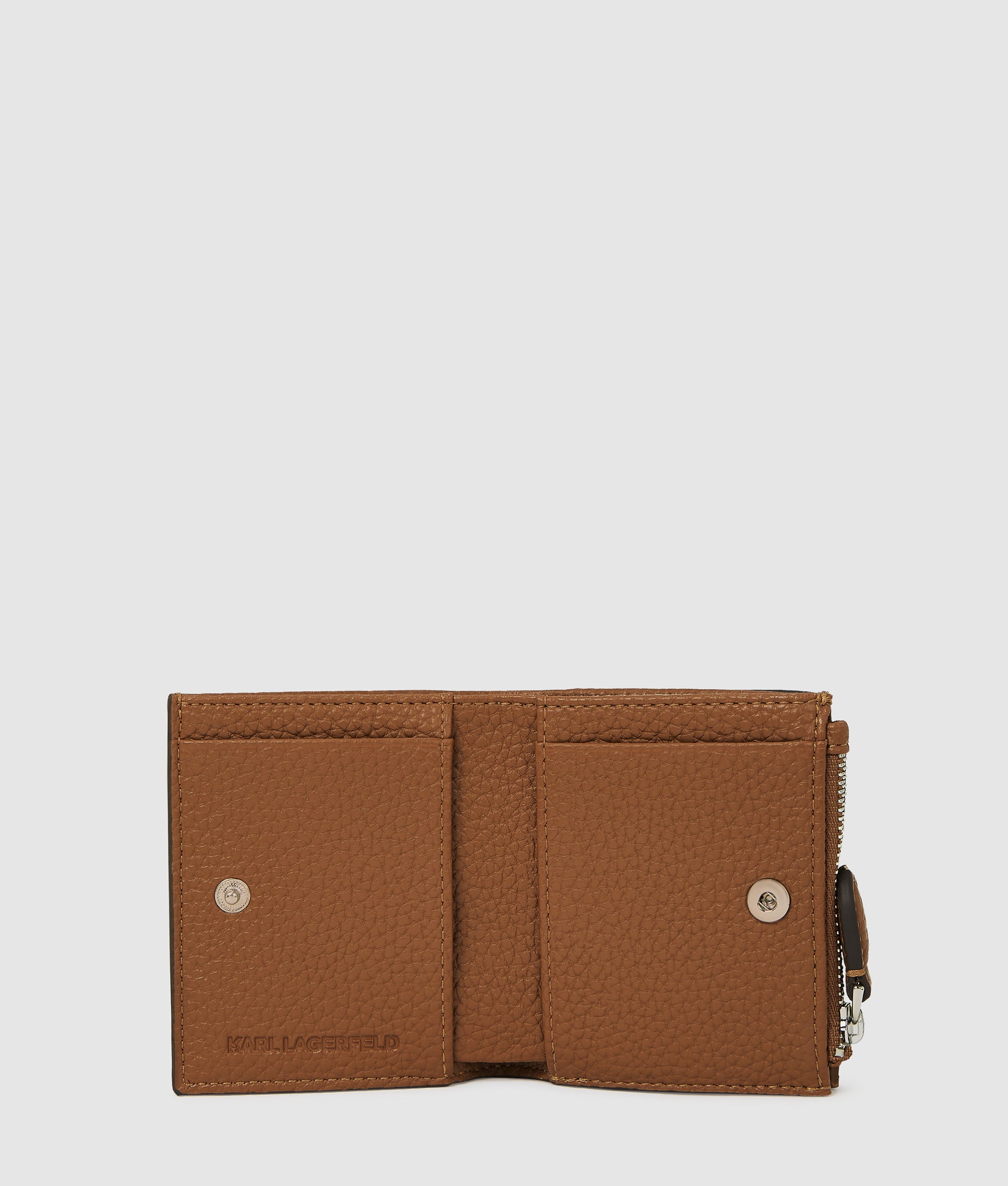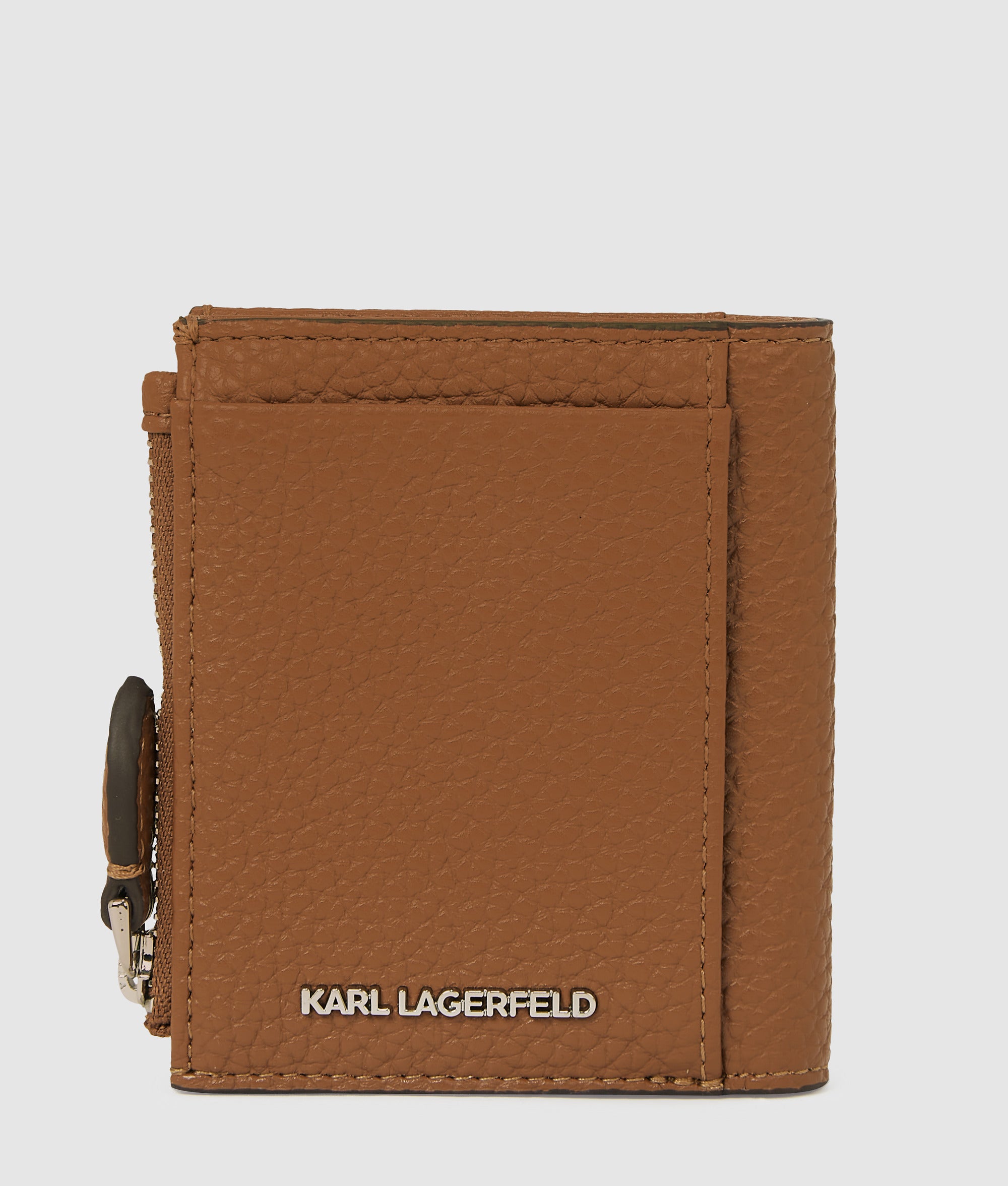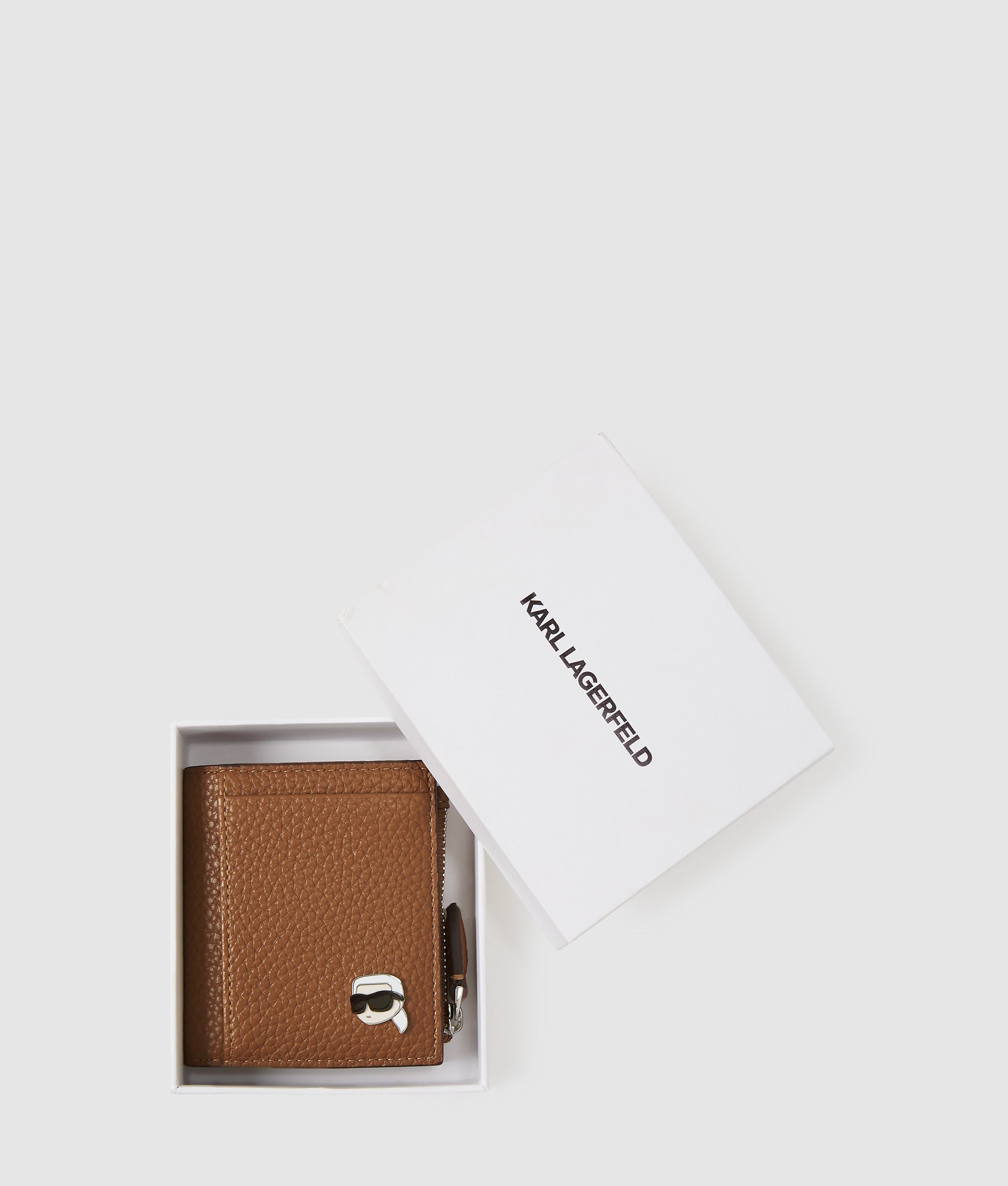 A modern essential. This bi-fold wallet features multiple slots, a zip compartment, and a subtle Ikon Karl embellishment for understated style.