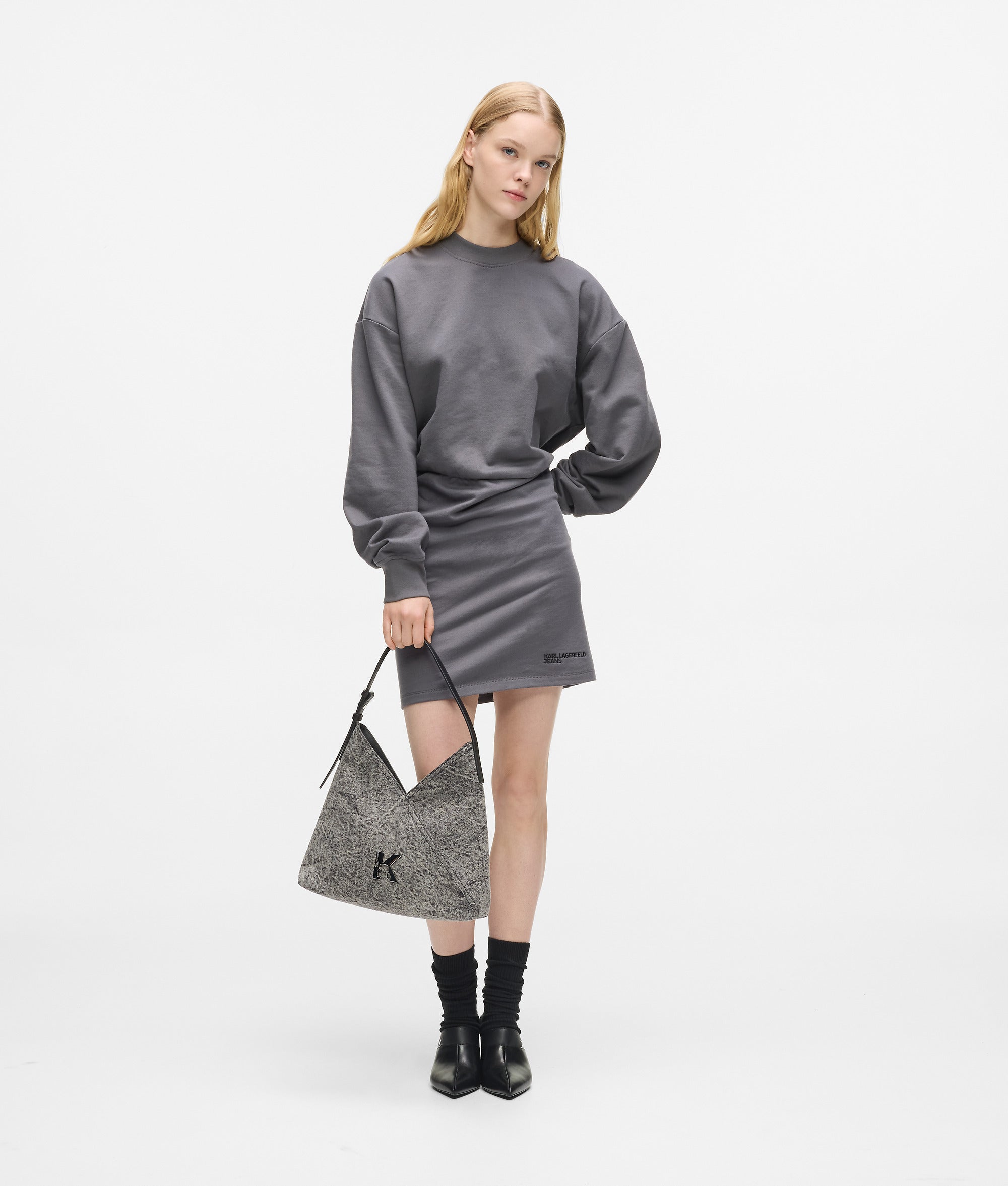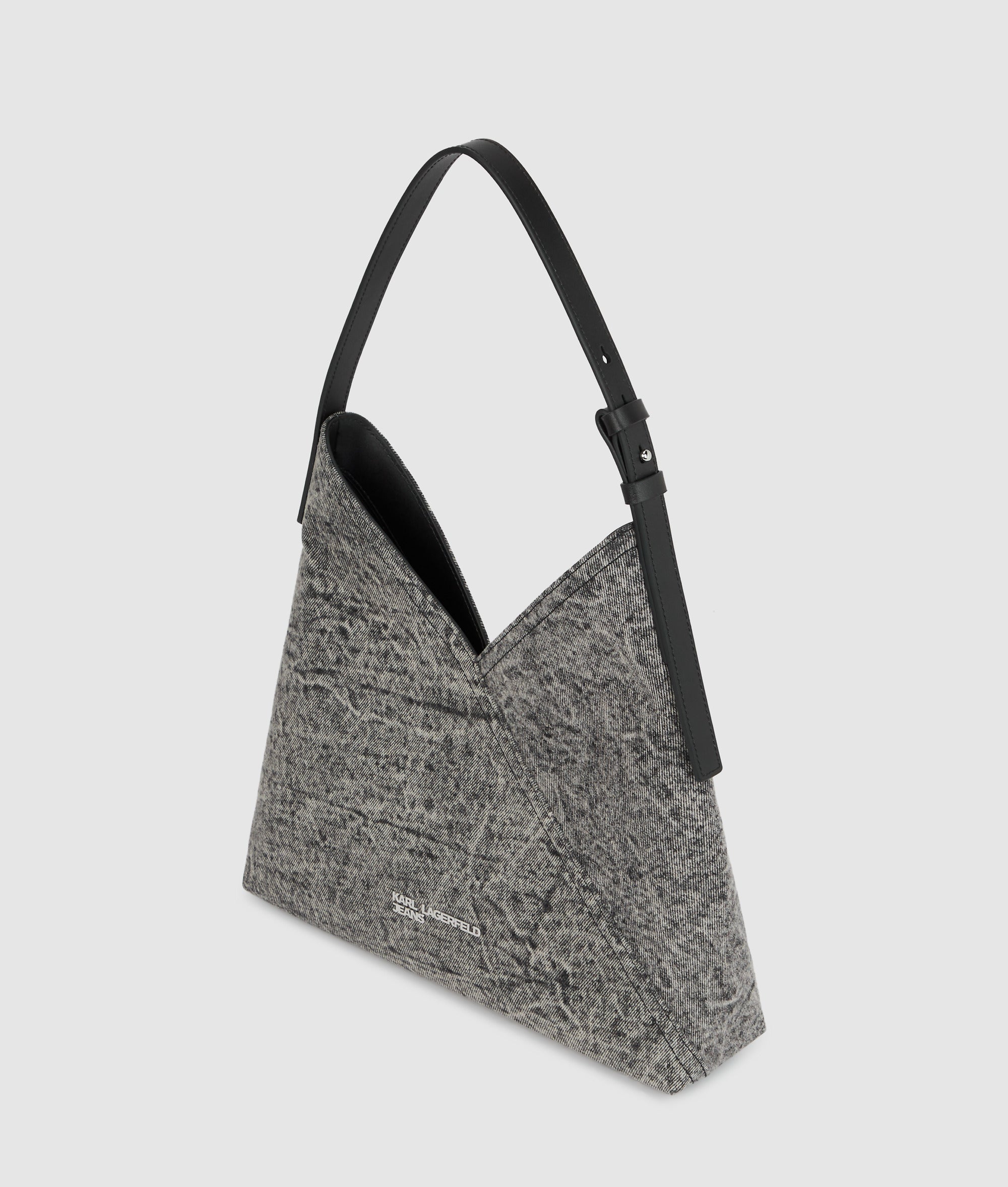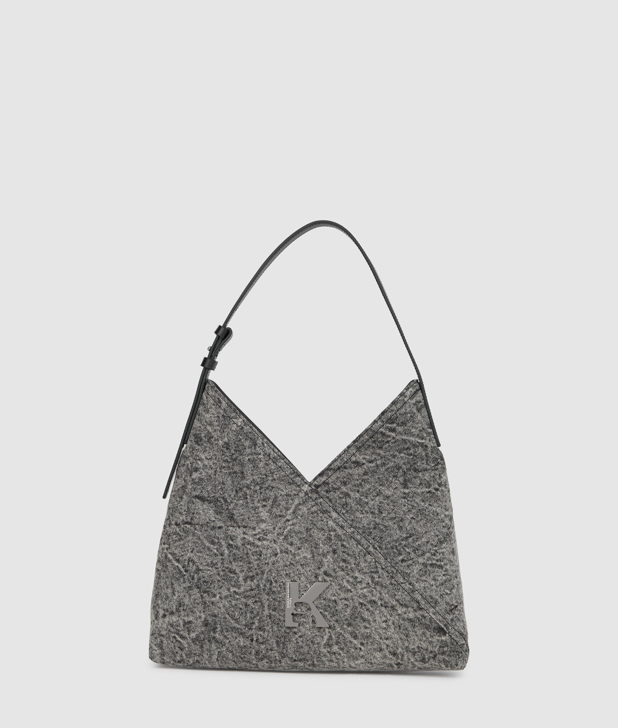 Striking geometric paneling and an edgy washed denim finish give this tote bag a contemporary twist. The magnetic closure secures your essentials, while the adjustable strap ensures all-day comfort.