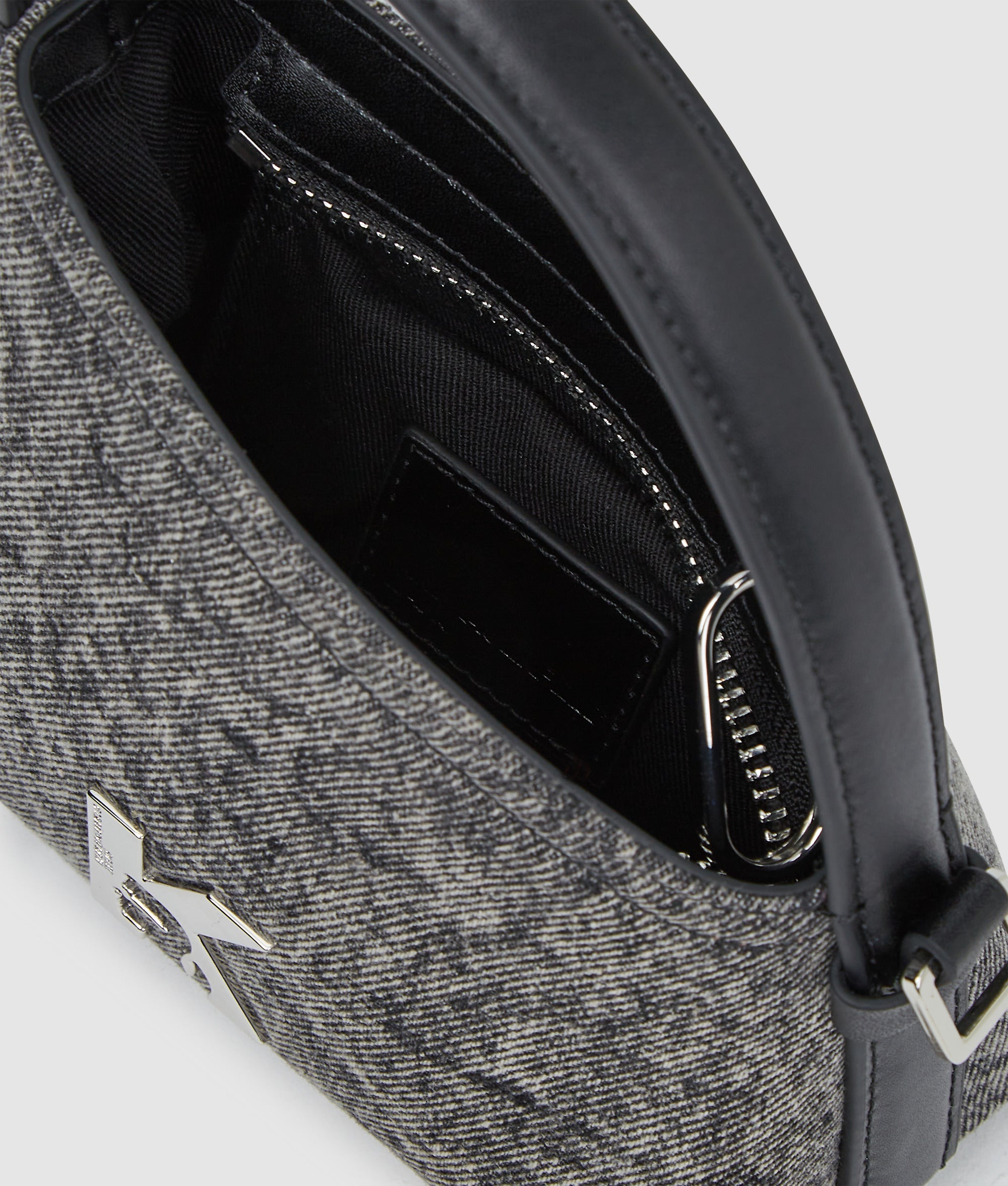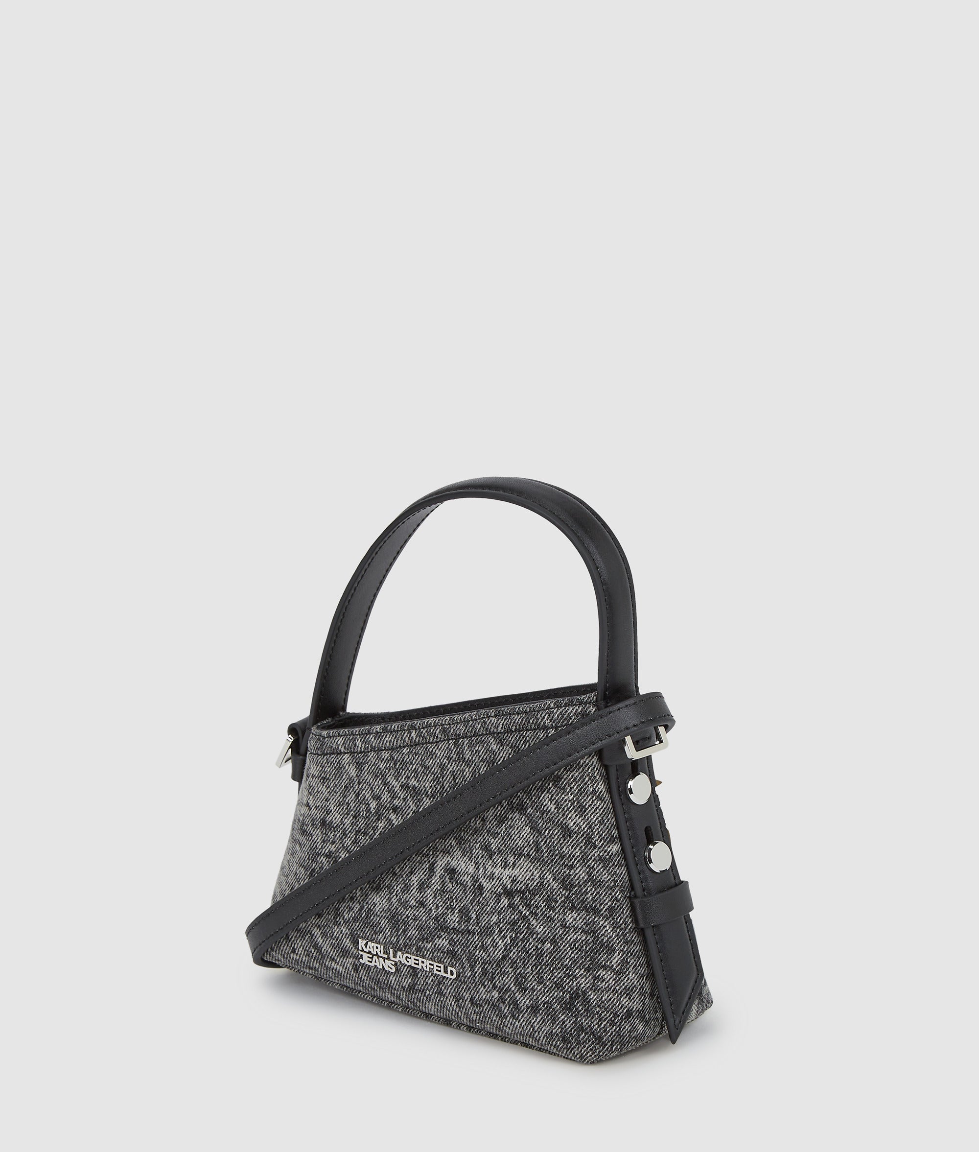 Dare to be different with this striking mini crossbody bag, with innovative asymmetric silhouette and edgy washed denim finish. Style your way with an adjustable strap and top handle.