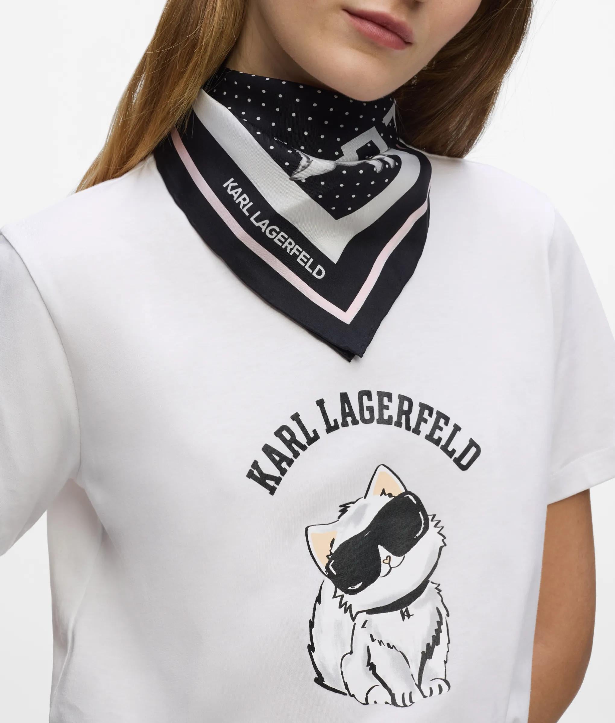 This Ikon Choupette T-shirt captures playful sophistication with bold artwork and a sleek crew neck. Crafted from organic cotton, it offers breathable comfort and effortless style.