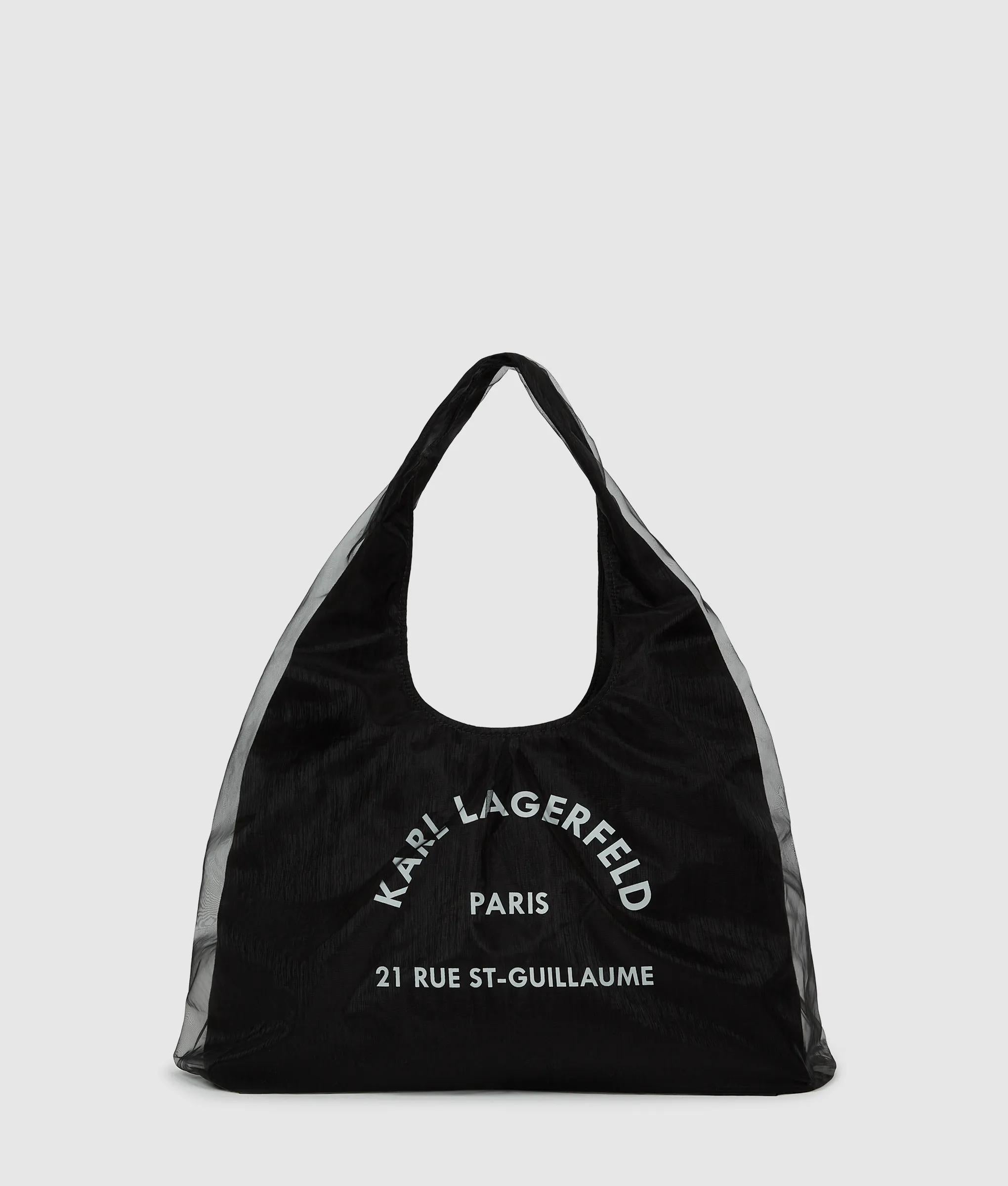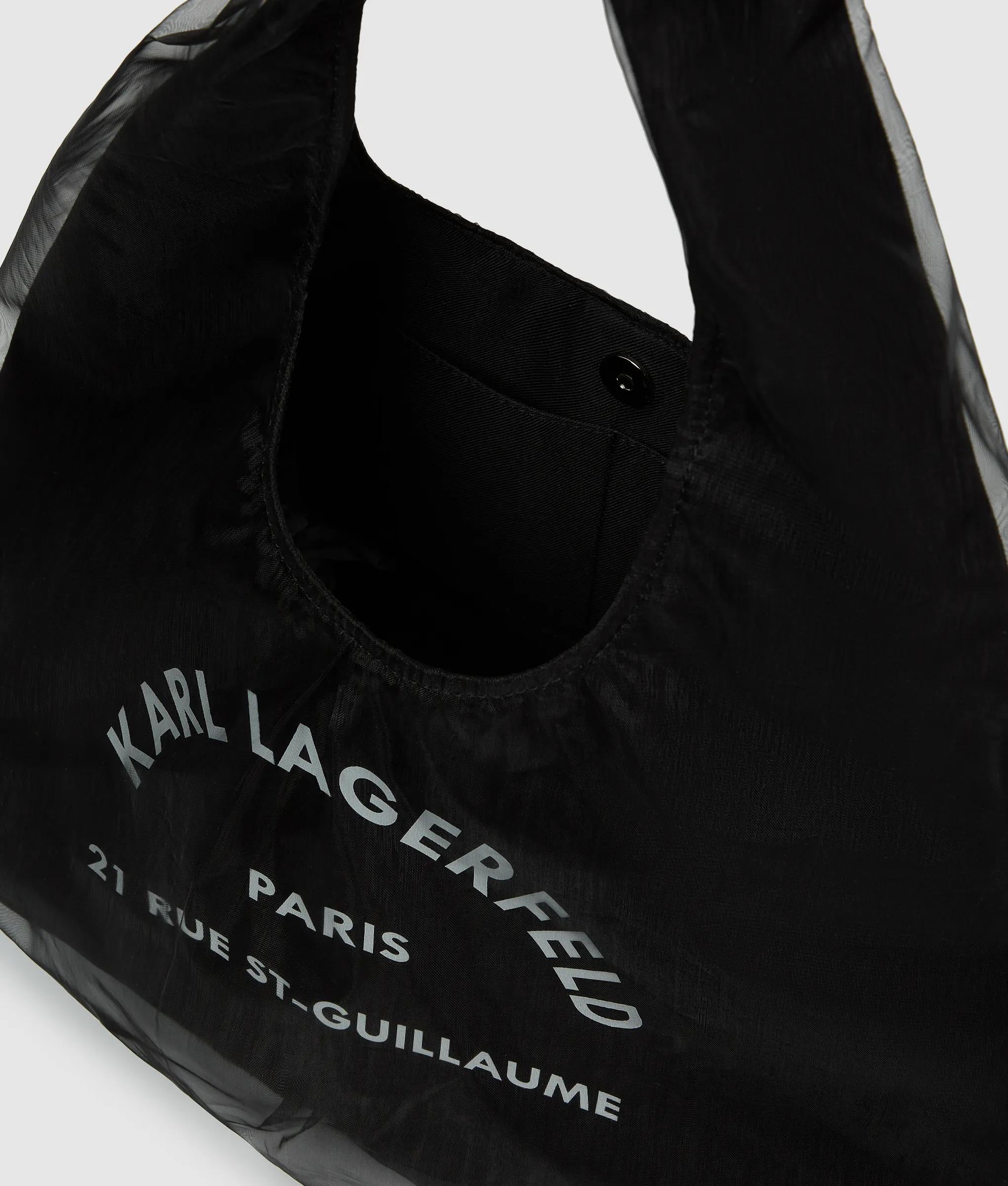 A slouchy hobo bag reimagined with a mesh overlay that plays with texture and shadow. Its single strap and magnetic closure keep the attitude relaxed, while the Rue St-Guillaume logo punctuates the design.