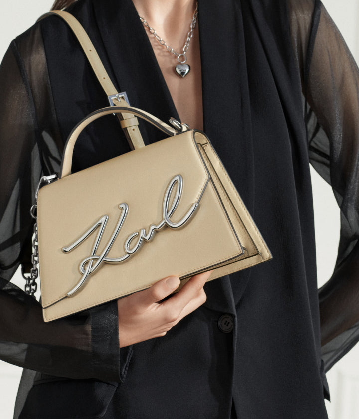 A hallmark silhouette in KARL LAGERFELD’s accessories collection, the K/SIGNATURE is topped with the designer’s distinct handwritten signature.