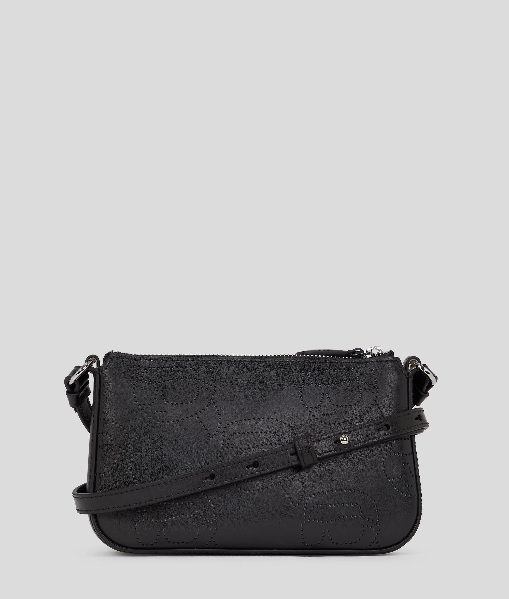 An effortless blend of practicality and flair, this crossbody pouch showcases a playful, all-over perforated IKON Karl design. A secure zip-top closure keep essentials safely at hand, while a subtle KARL LAGERFELD logo completes this standout accessory.