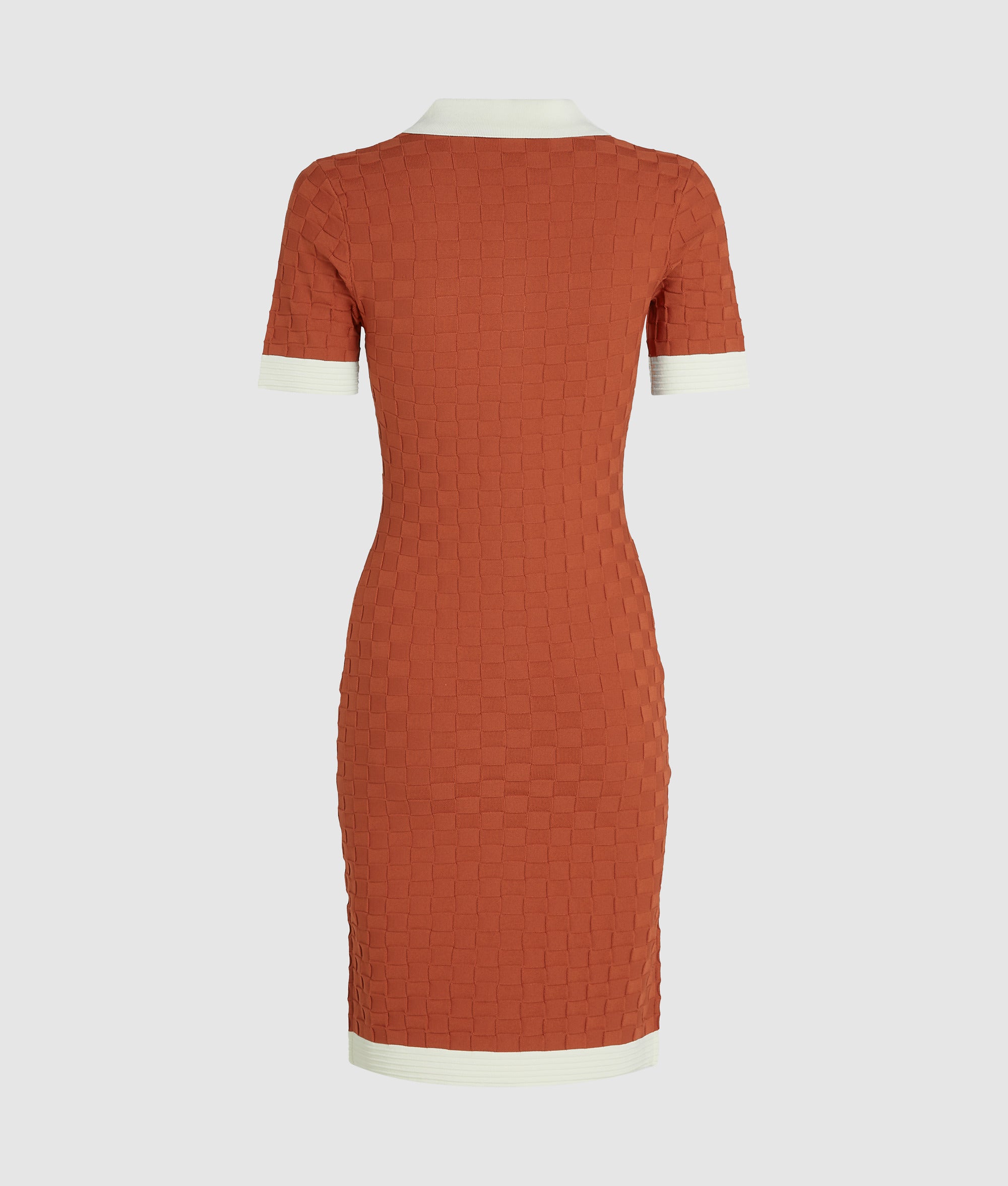 A chic blend of comfort and style, this polo dress features a flattering, figure-hugging silhouette. The preppy polo collar and contrasting piping add a playful touch, making this piece perfect for effortless elegance.