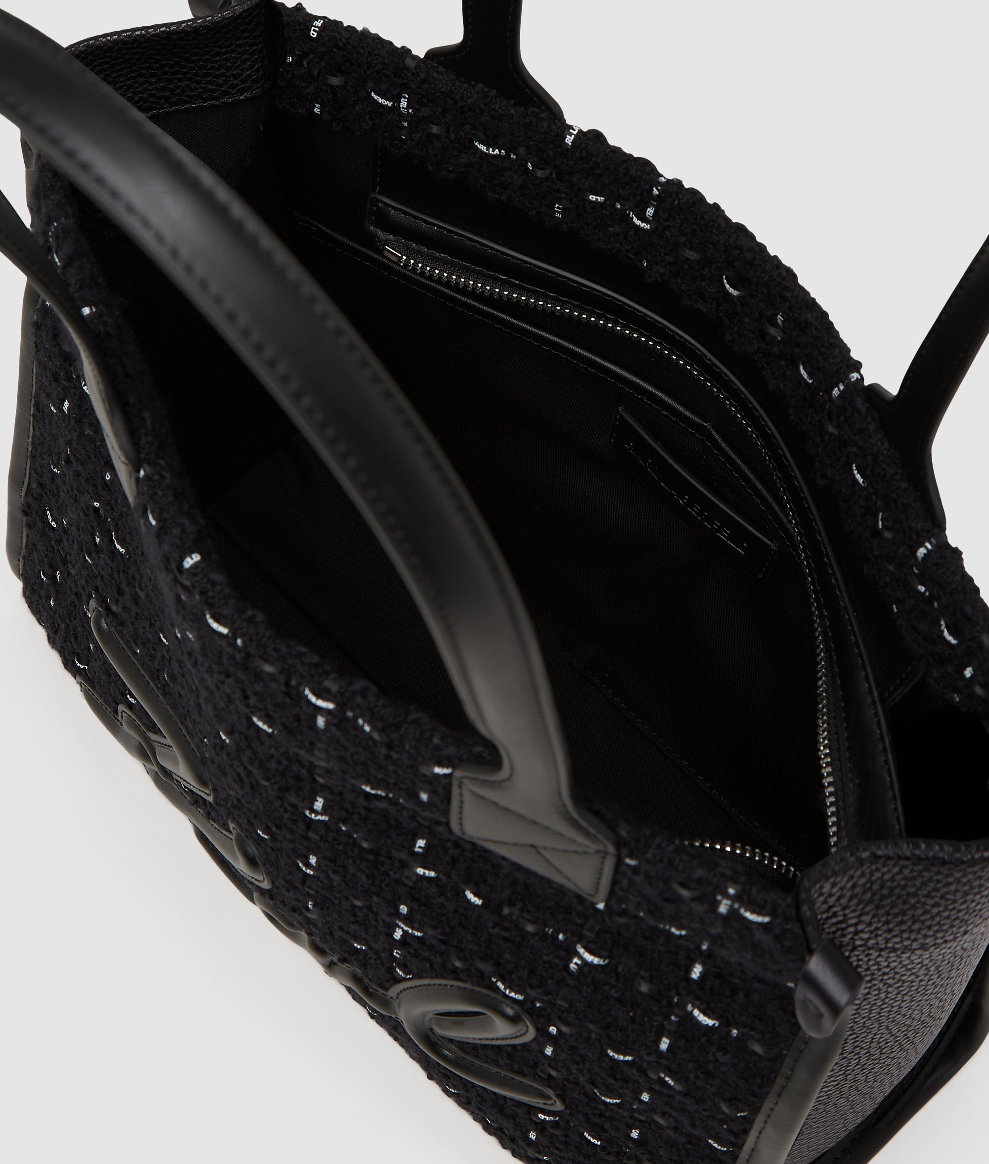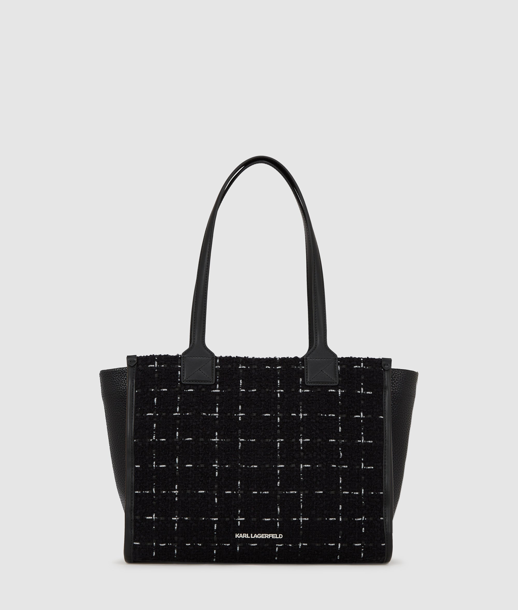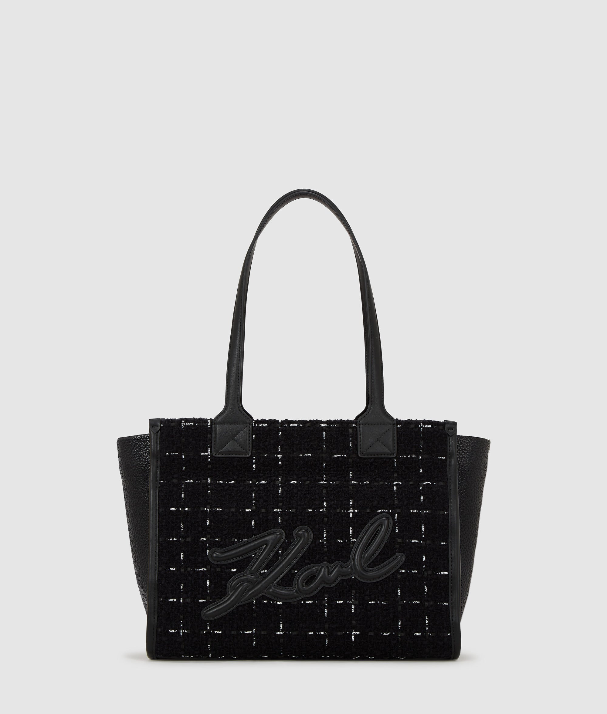 This medium tote bag with its plush boucle finish blends tactile luxury with practical design. The tonal Karl Signature adds subtle sophistication, while its laptop-friendly interior makes it the perfect accessory for busy work days.