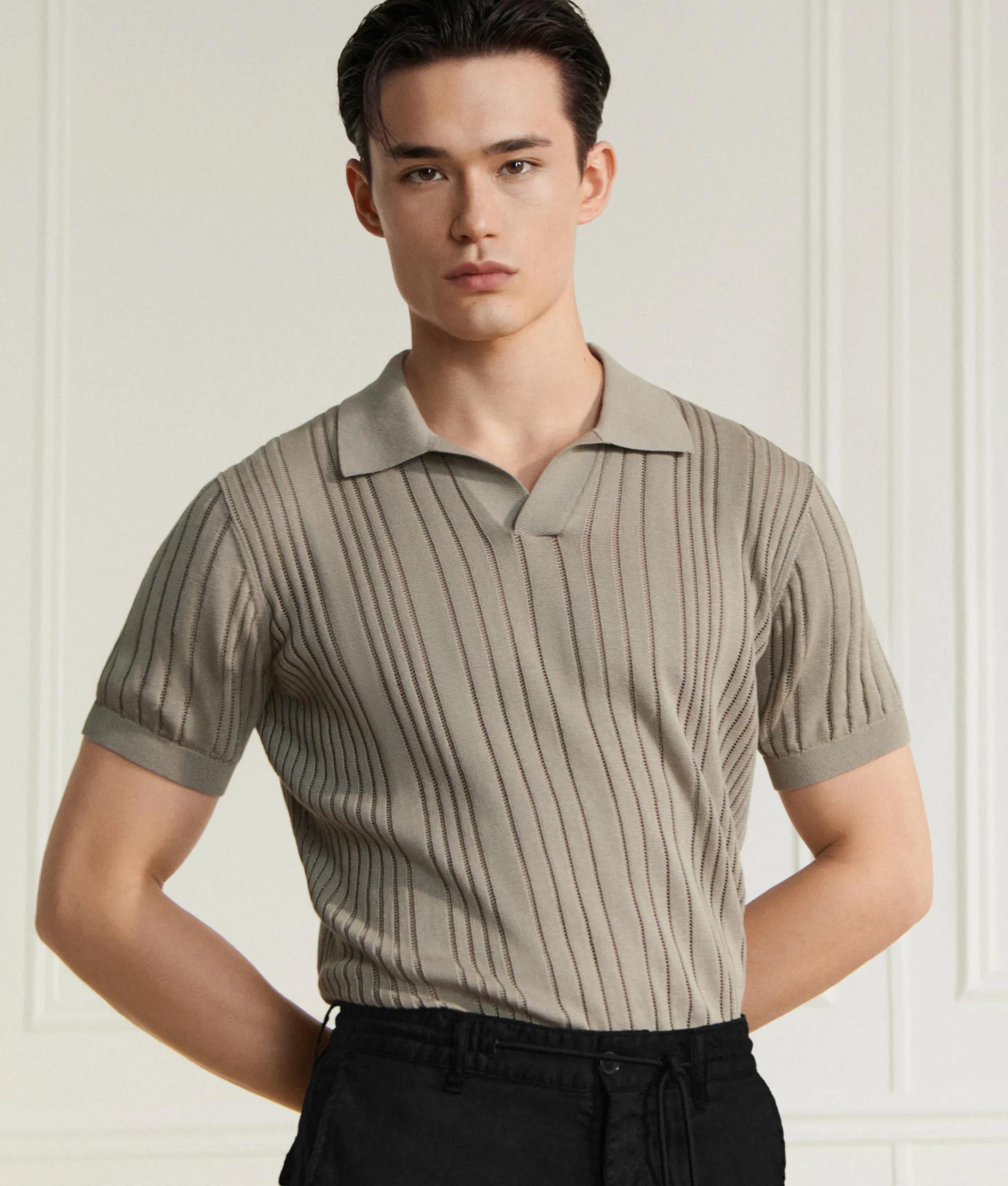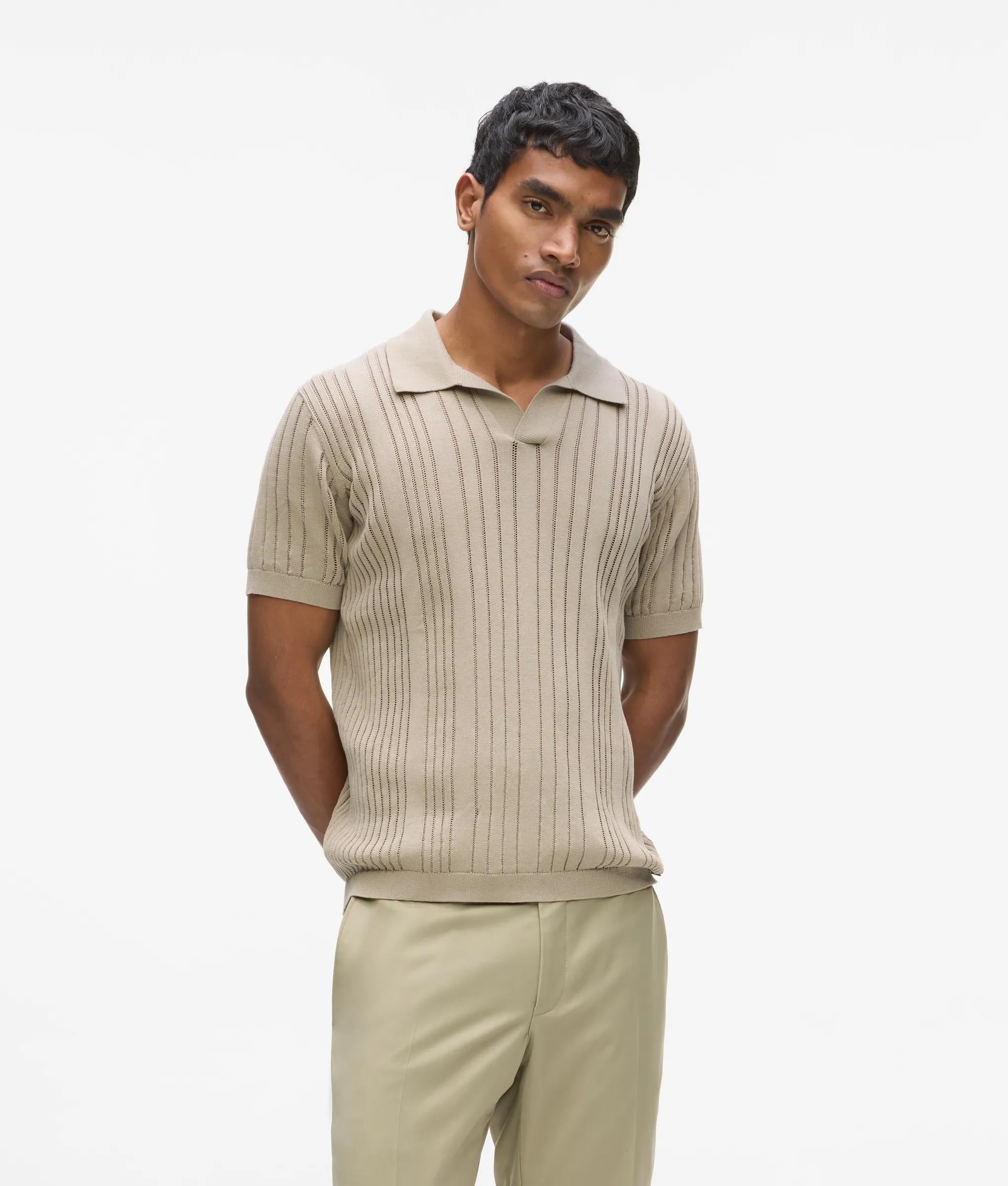 Rib-knit polo shirt