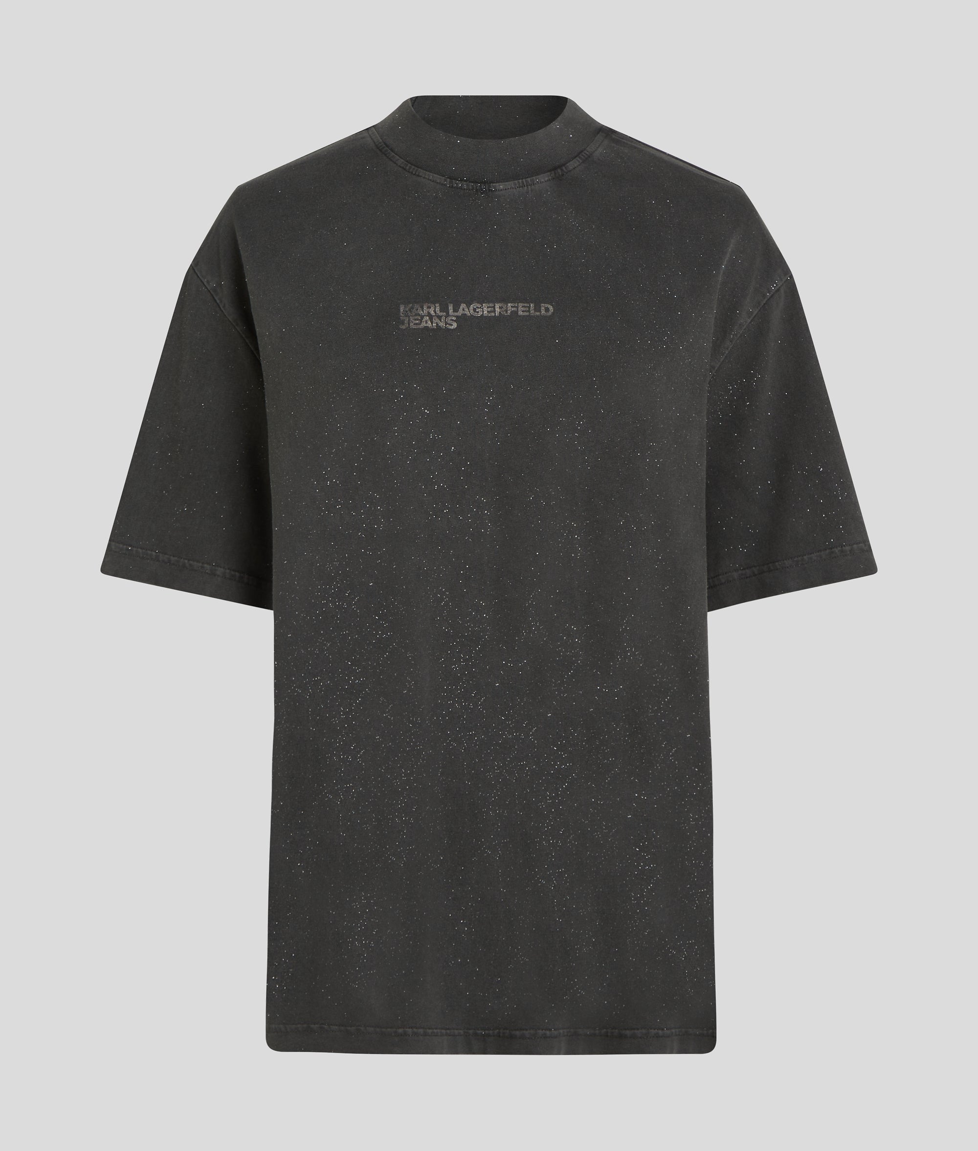 Añade un toque brillante a tus looks diarios con esta atrevida camiseta con efecto brillante y un resplandeciente logotipo de KARL LAGERFELD JEANS. El cuello redondo de canalé y la manga corta completan esta prenda única que combina comodidad y estilo.
