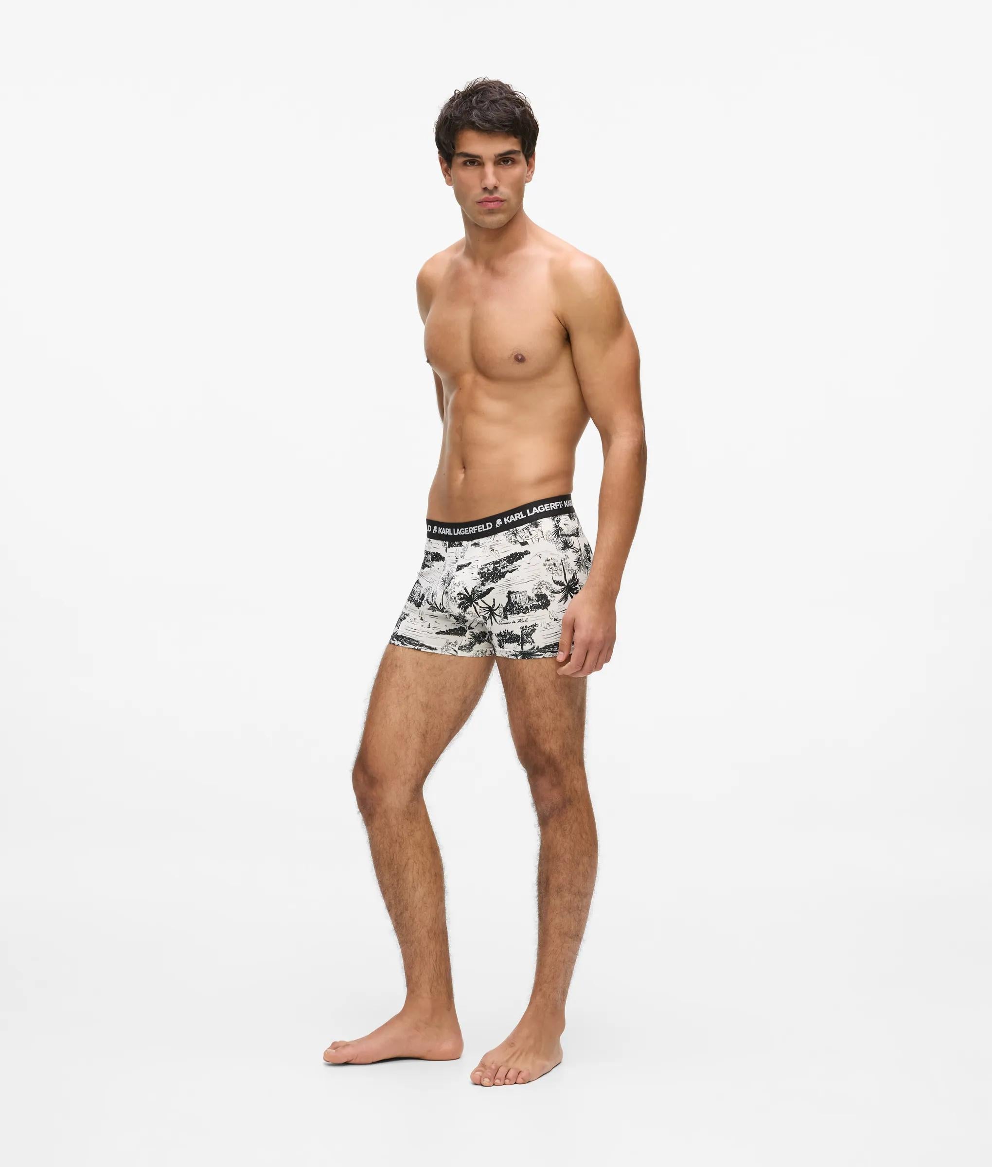 Un conjunto de bóxers de algodón orgánico que combinan un estampado de inspiración tropical con colores lisos. La cintura elástica garantiza comodidad, mientras que el suave tejido jersey ofrece una transpirabilidad óptima.