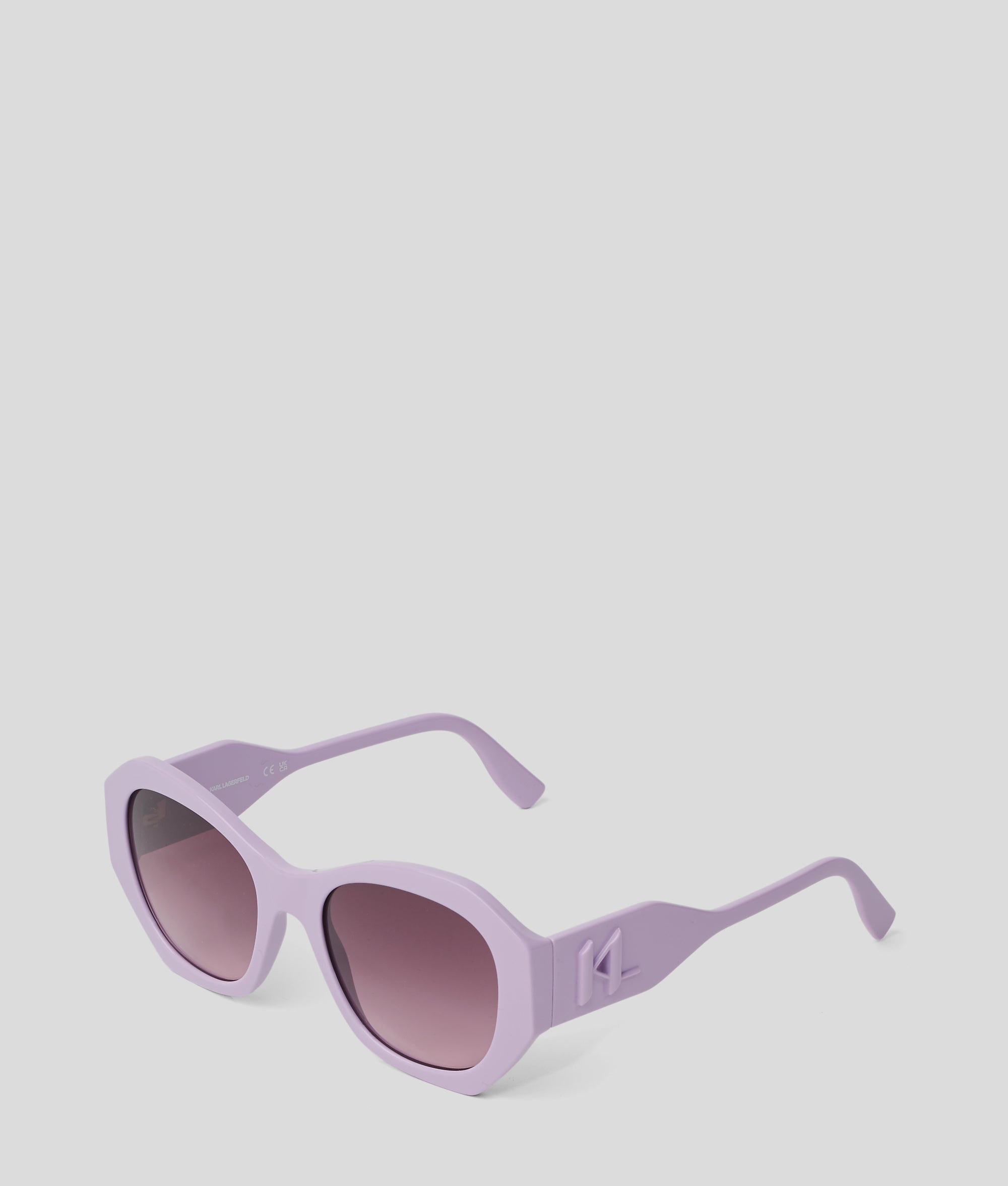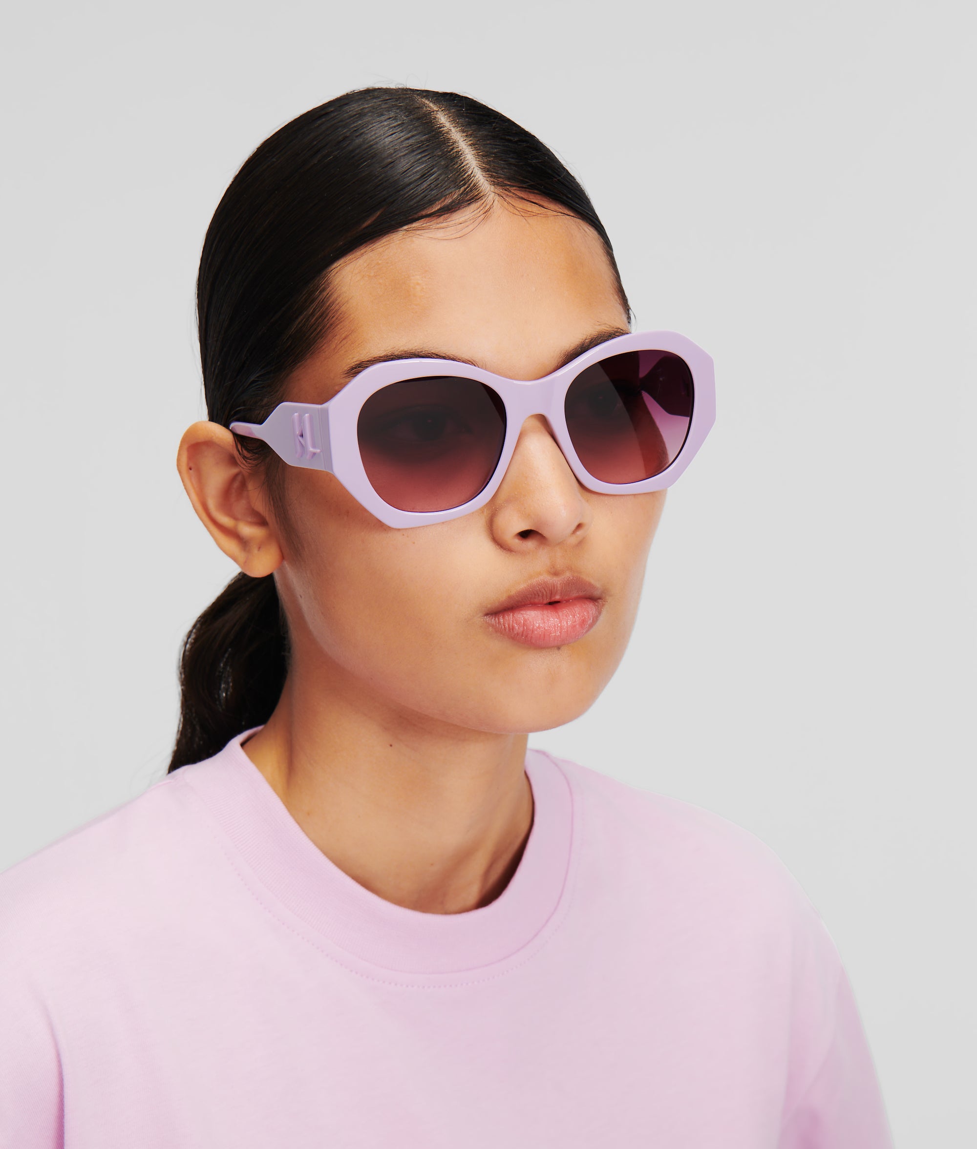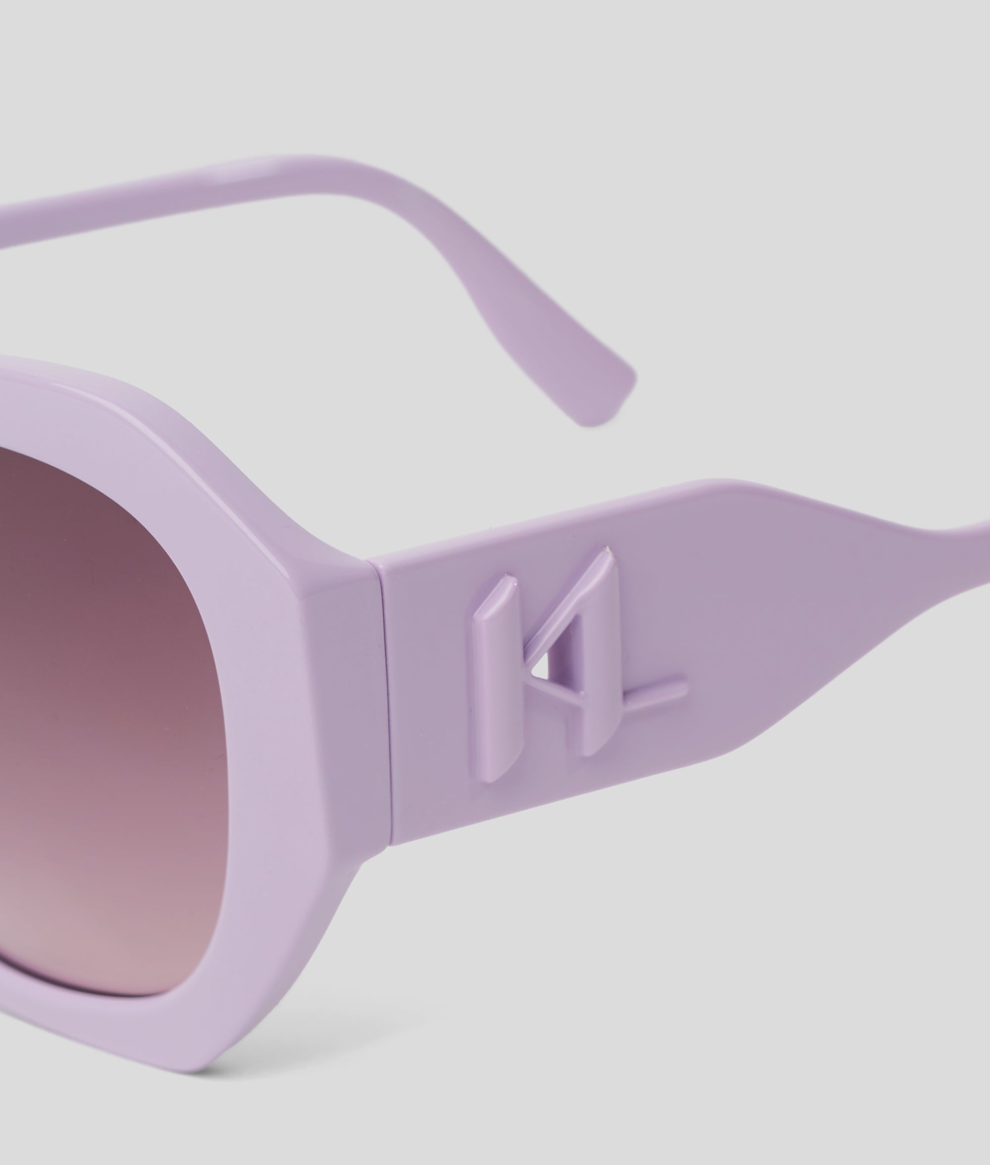Estas gafas de sol de KARL LAGERFELD presentan una silueta rectangular moderna con cristales oscuros uniformes y el elegante logotipo de KL Monogram en relieve.