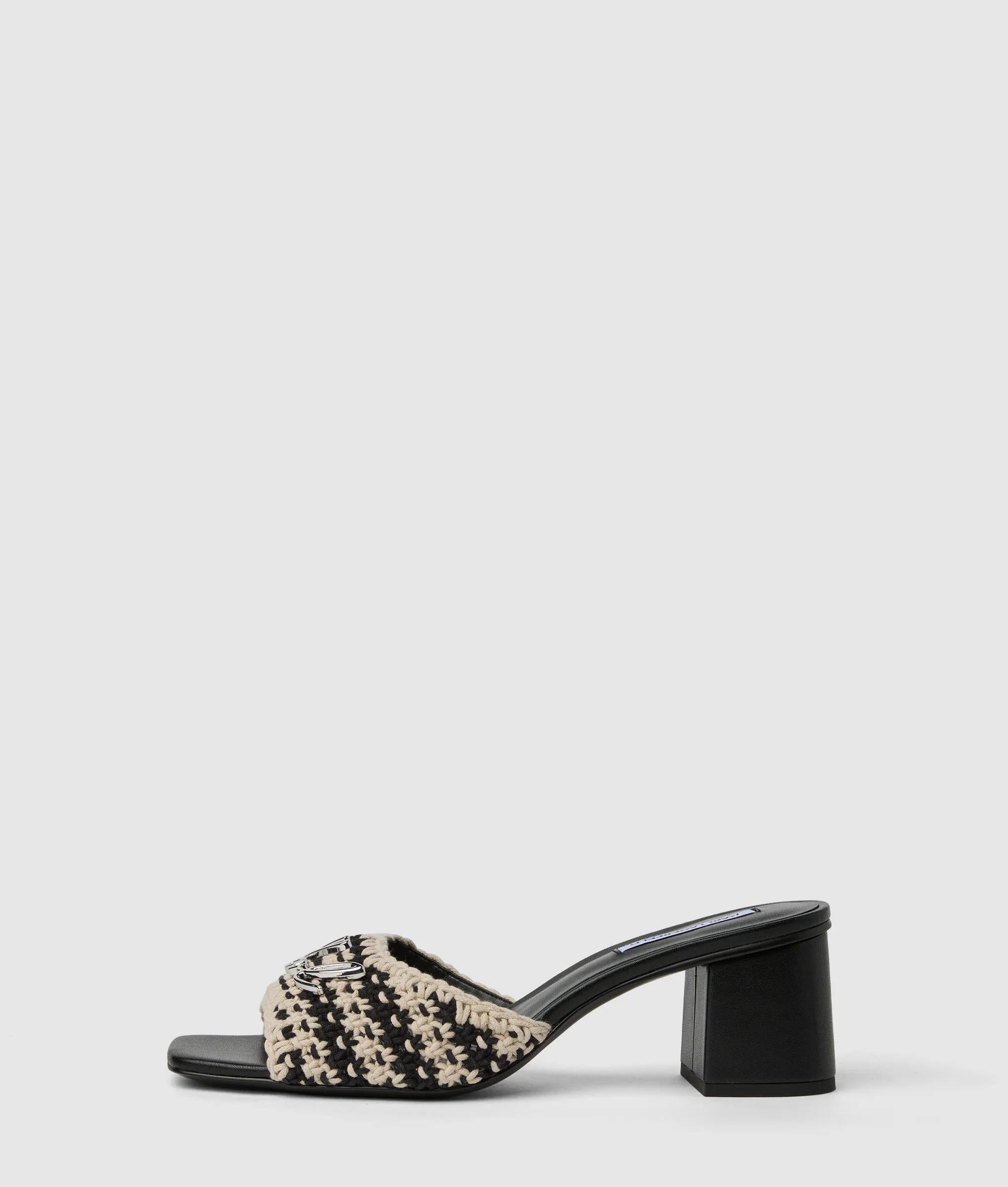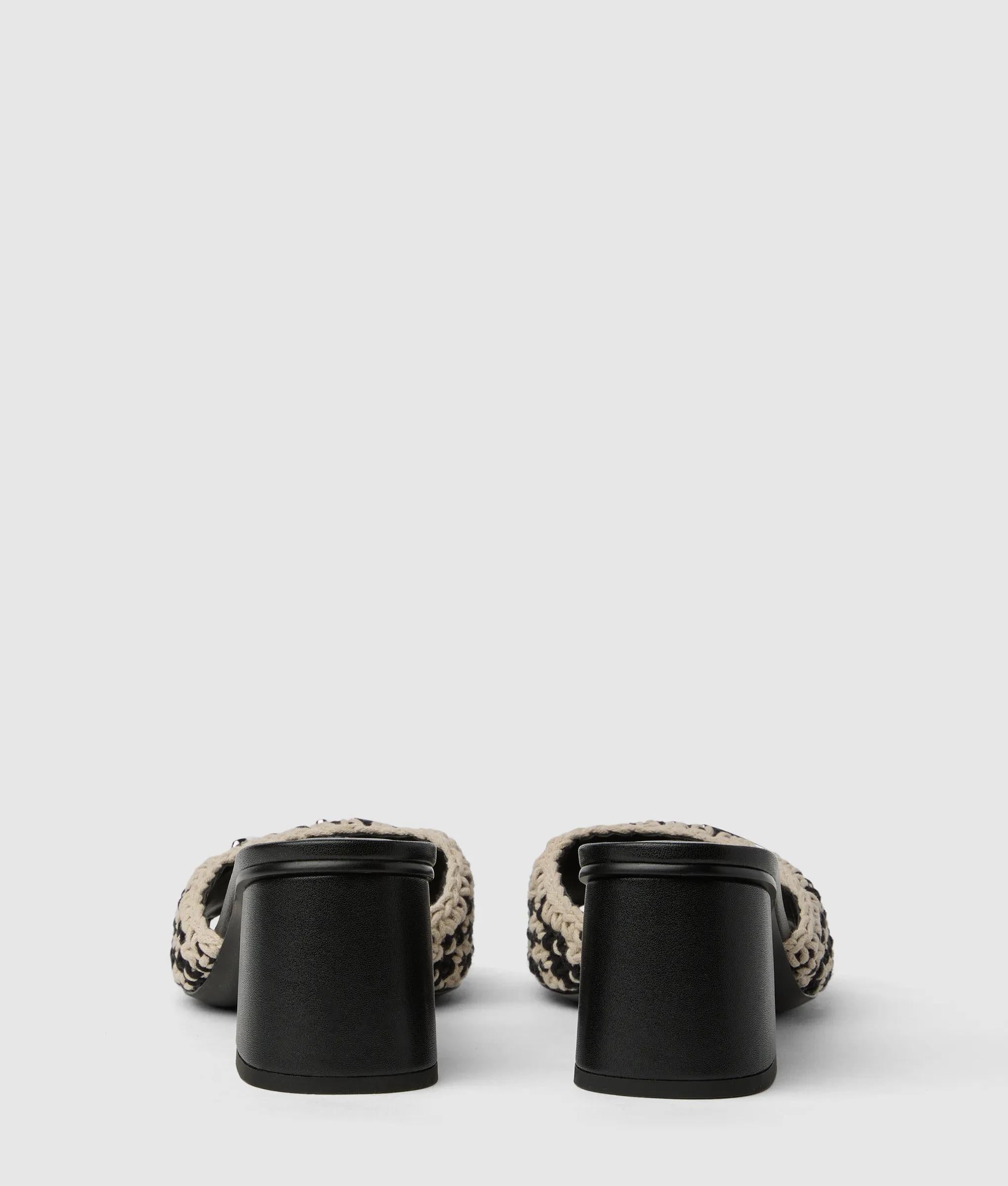 Estas sandalias combinan una correa de ganchillo con un elegante tacón cuadrado acabado en piel para ofrecer un estilo refinado pero veraniego. Perfectas para elevar los looks de uso diario o añadir un toque especial a los de noche.
