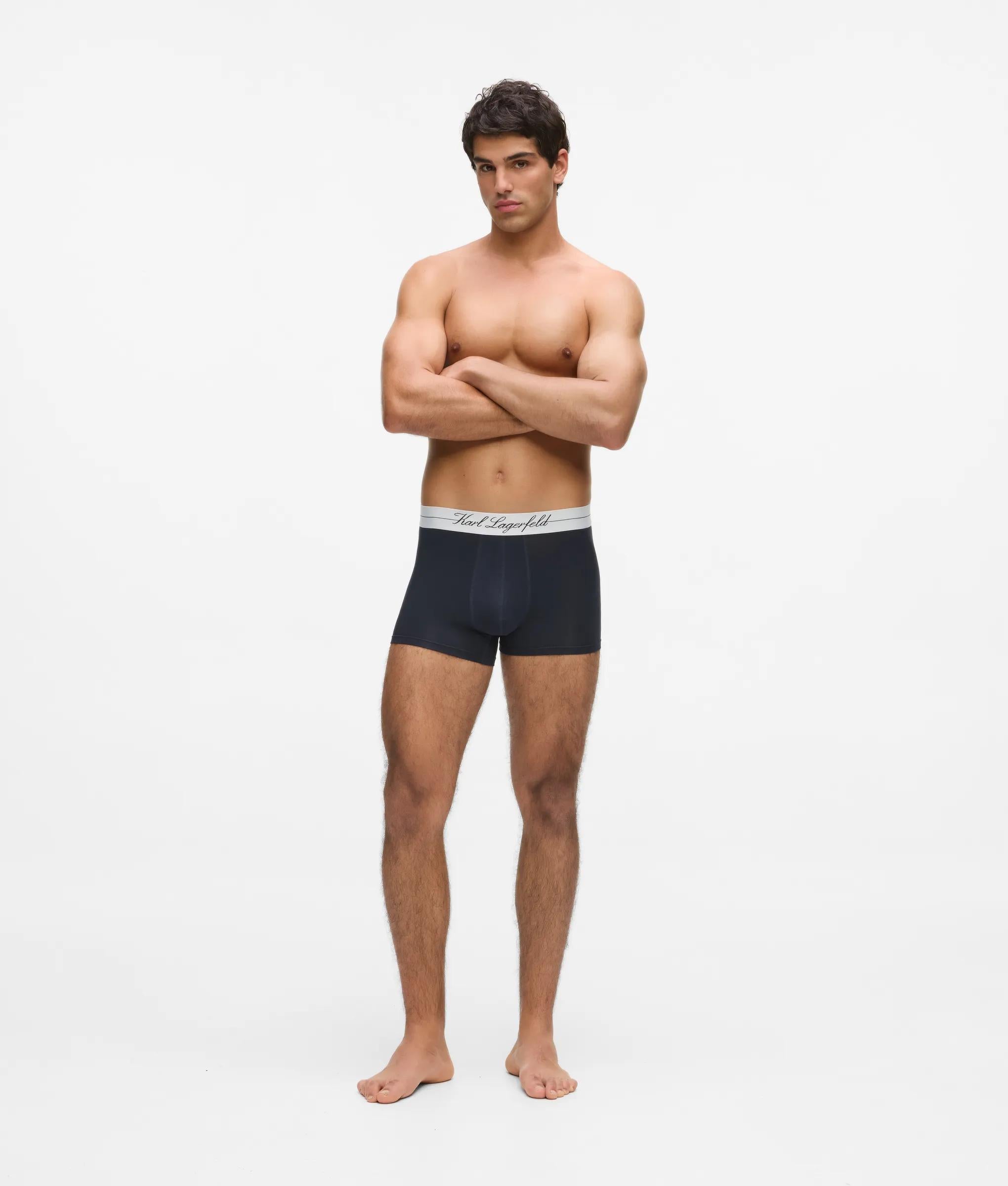 Este juego de tres bóxers clásicos combina comodidad y sofisticación, con una cintura elástica para un ajuste perfecto. El elegante logotipo de Hotel KARL añade un toque refinado de la marca a este básico de uso diario.