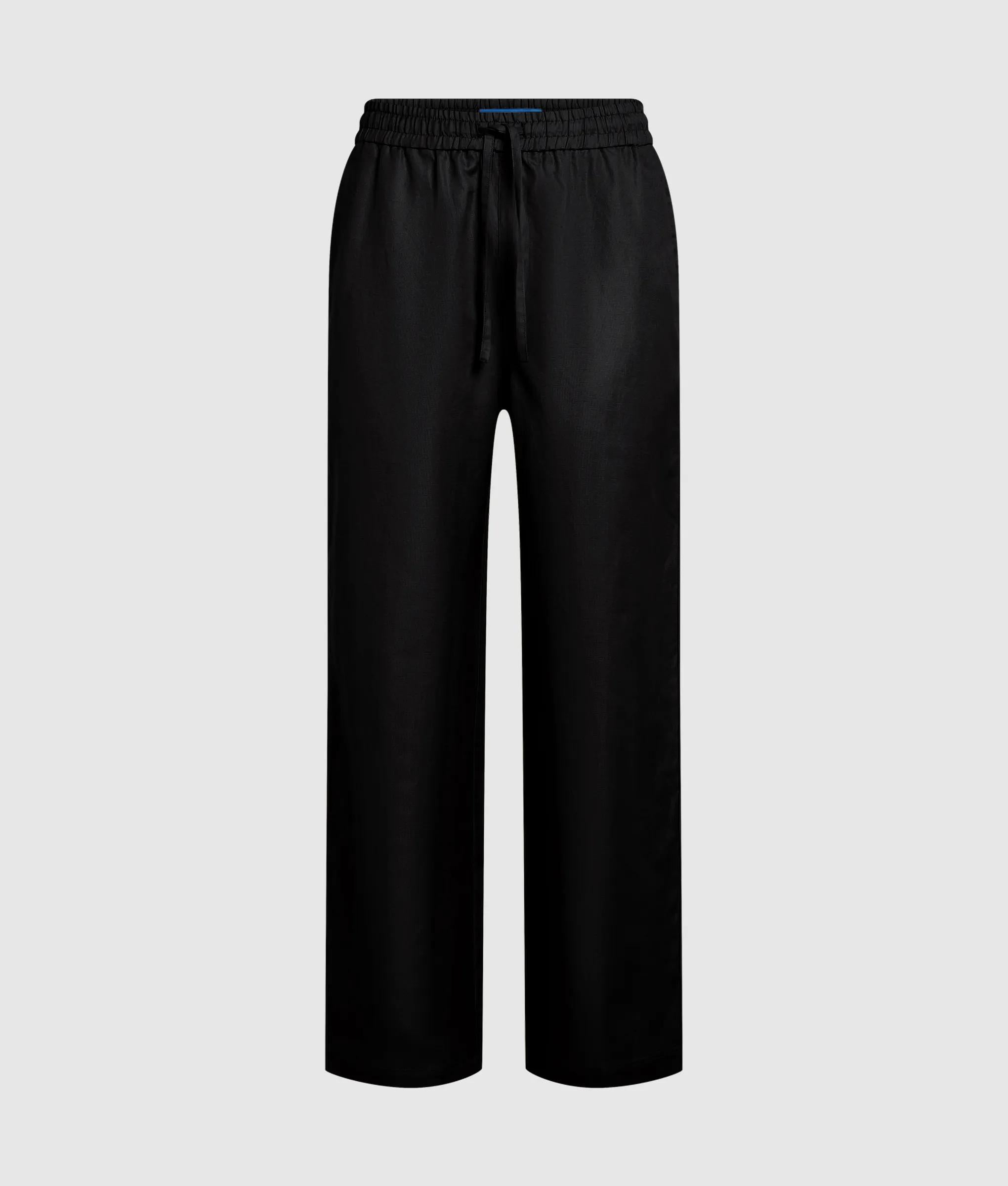 Frescos pantalones de mezcla de lino con un ajuste holgado y cintura regulable para una mayor comodidad. El sutil bordado de la marca aporta un toque de carácter a las prendas básicas refinadas.