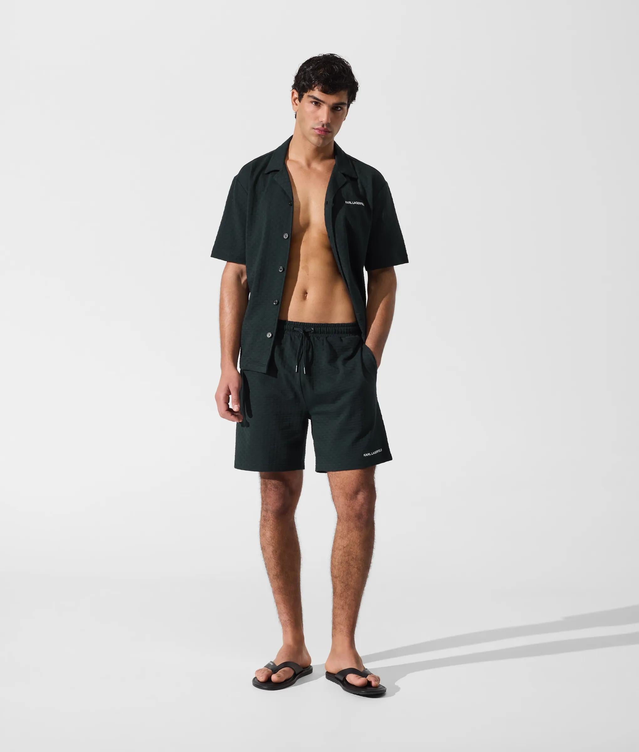 La luz del sol se filtra a través de esta camisa playera a cuadros, con manga corta y cierre delantero con botones, que invita a una comodidad relajada y refinada. Un discreto logotipo decorativo remata su encanto moderno.