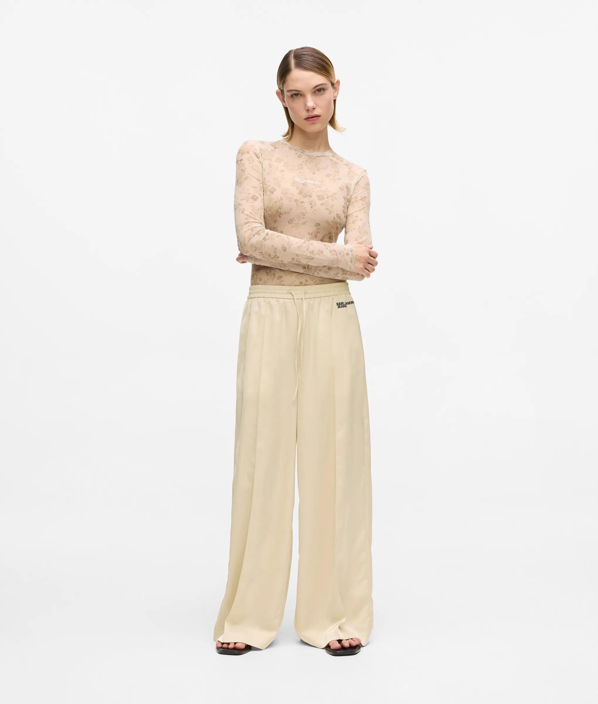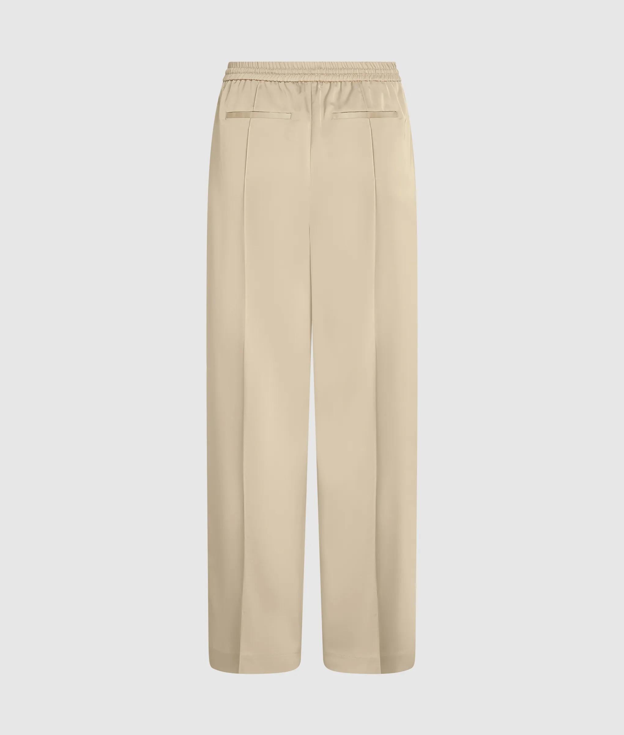 Brille con un movimiento fluido gracias a estos pantalones de satén con un diseño de pierna ancha y pliegues cosidos por delante y por detrás. La cintura elástica consigue un ajuste cómodo y una estética informal.