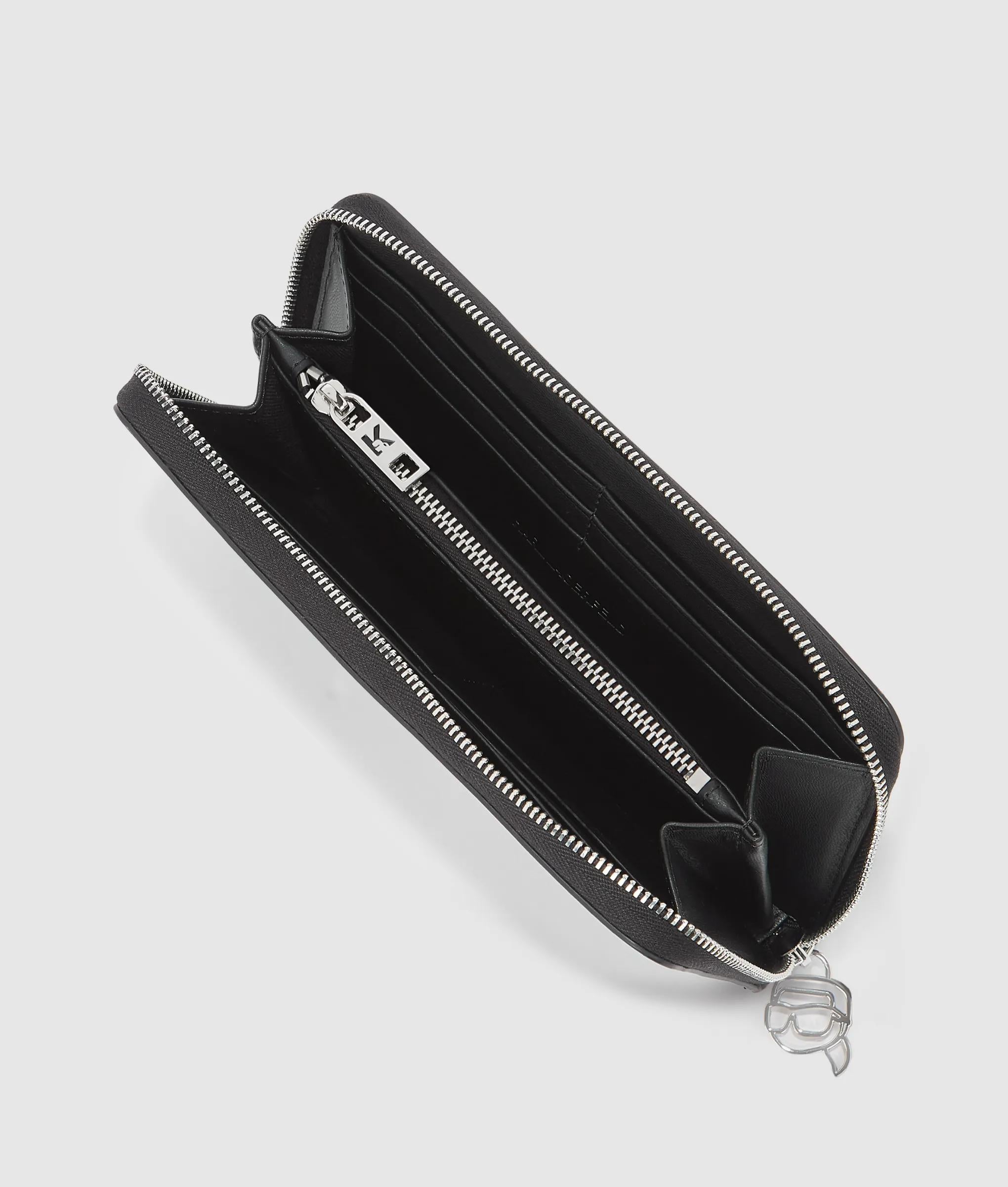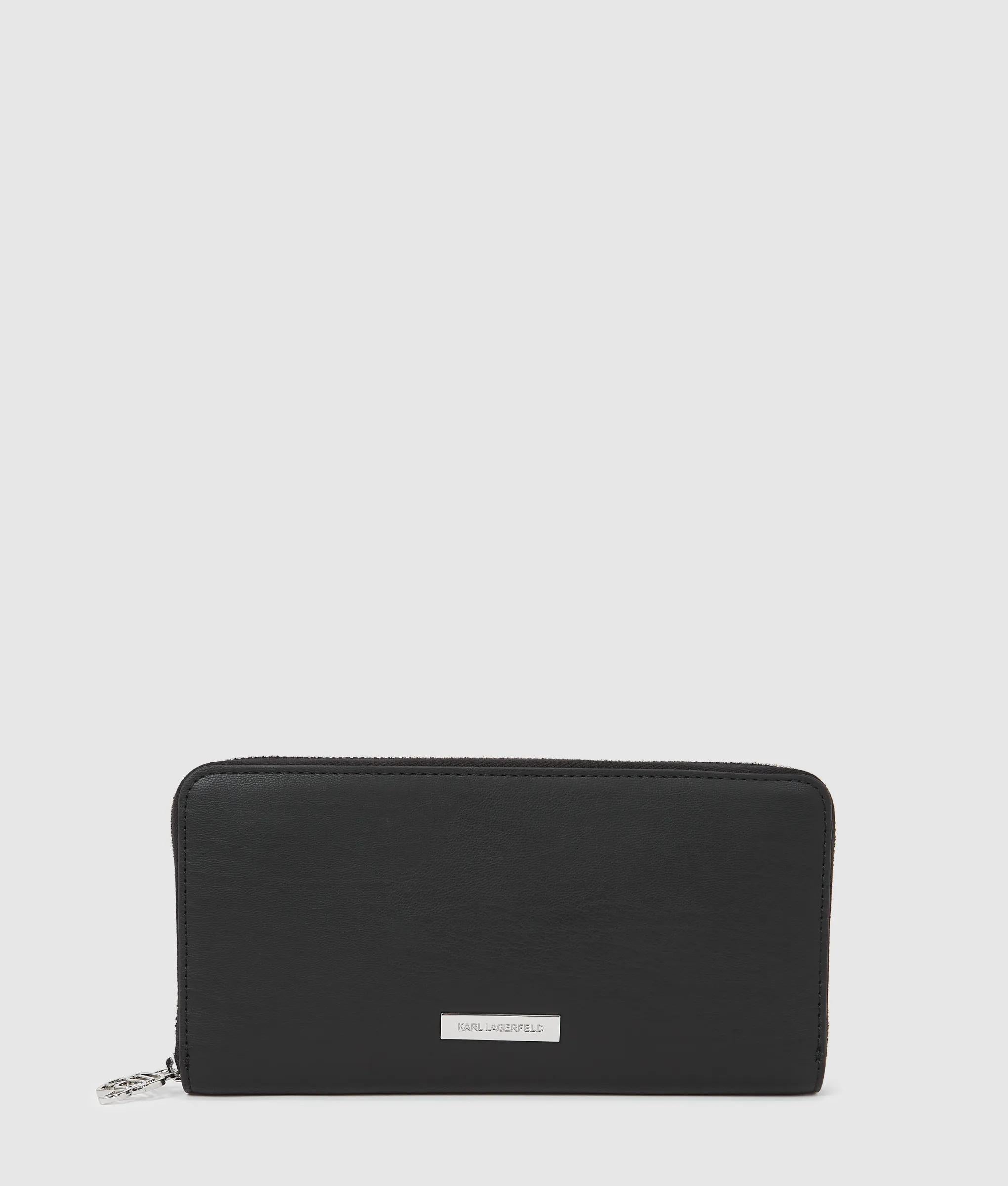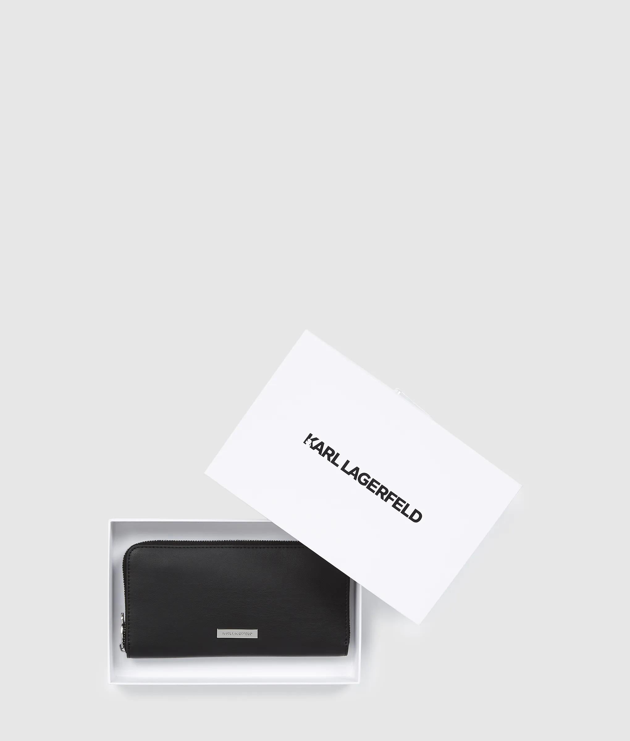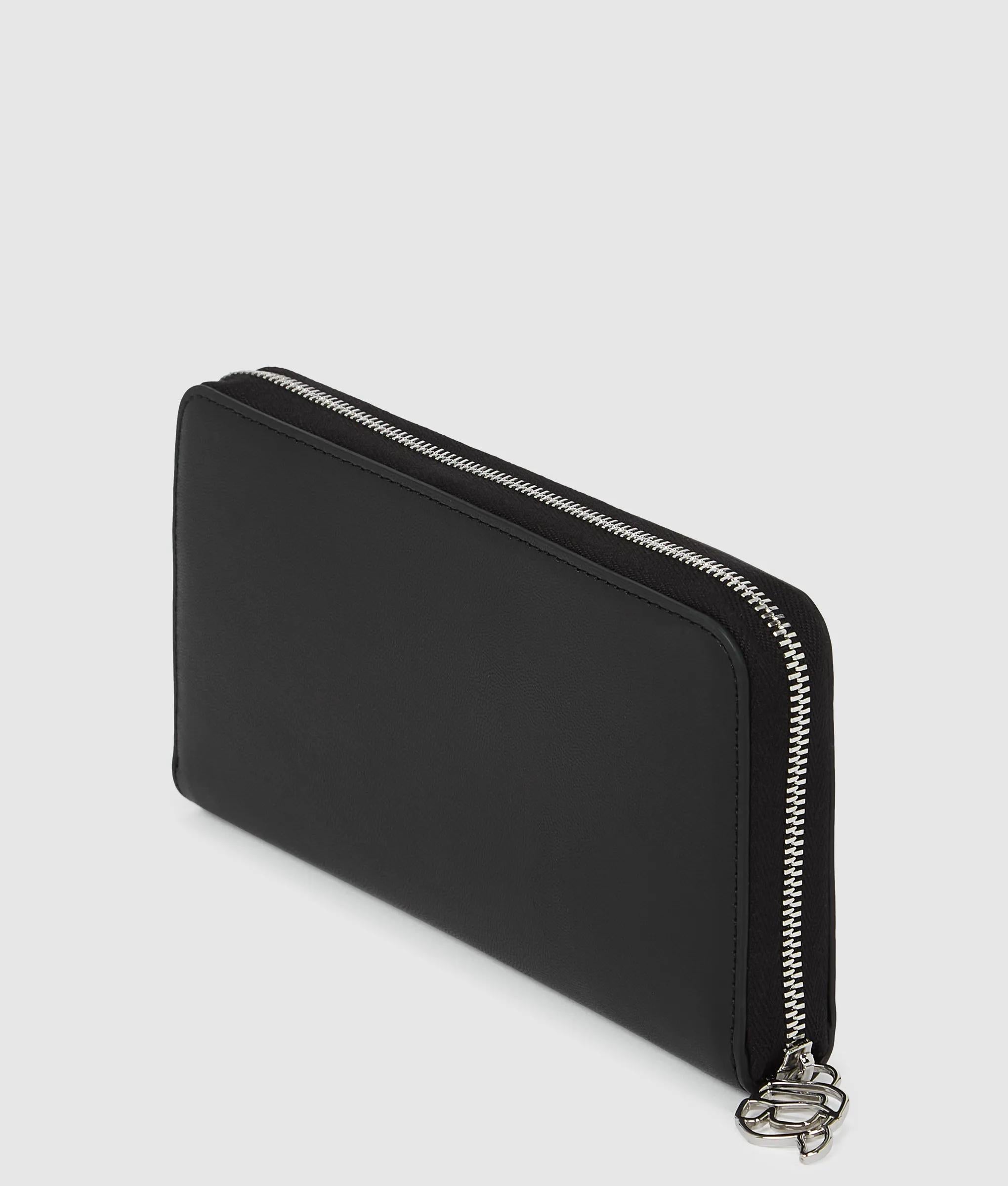 Lisa y estructurada, esta cartera continental combina elegancia y funcionalidad. En el interior, sus compartimentos organizados y un tirador metálico de la firma realzan la elegancia cotidiana.