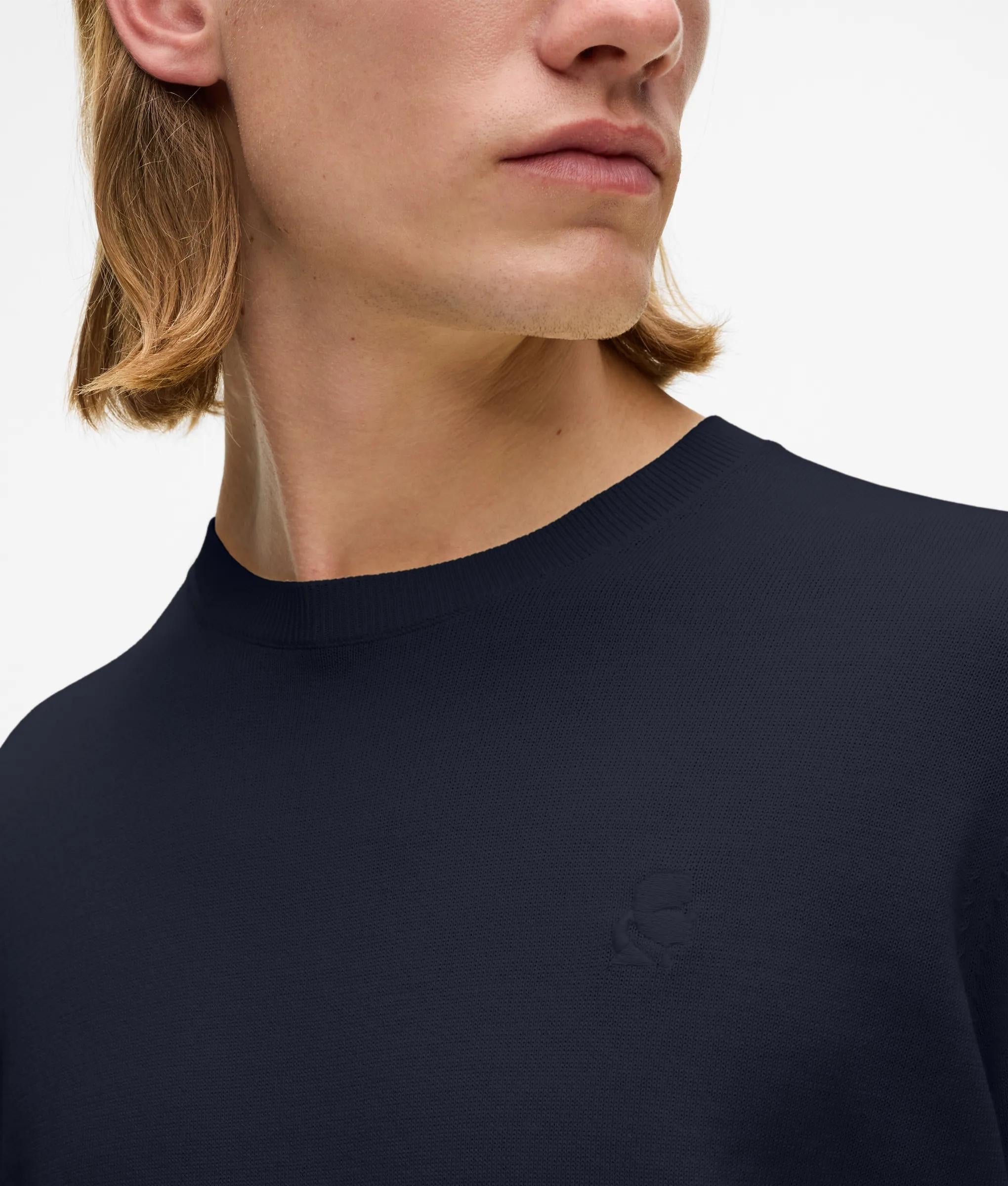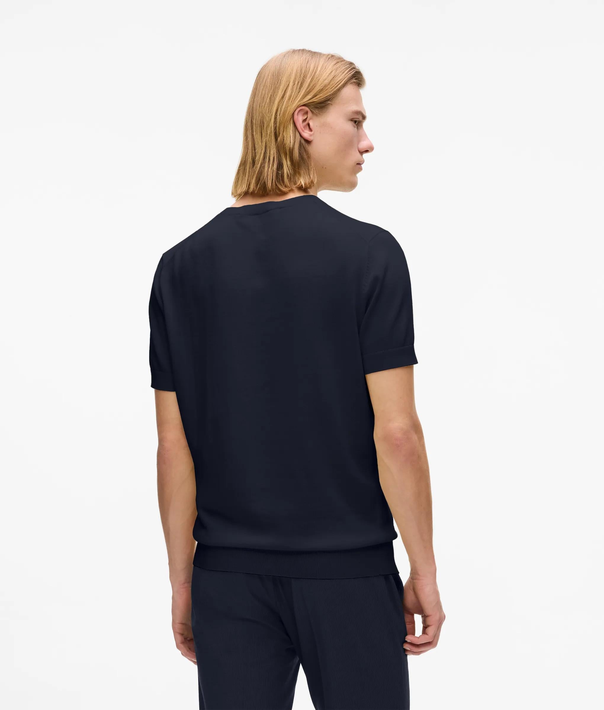 Una veraniega prenda de punto con un toque refinado. Este jersey de manga corta cuenta con un clásico cuello redondo y un discreto motivo Kameo bordado, y resulta perfecto para llevar varias capas o lucirlo solo.