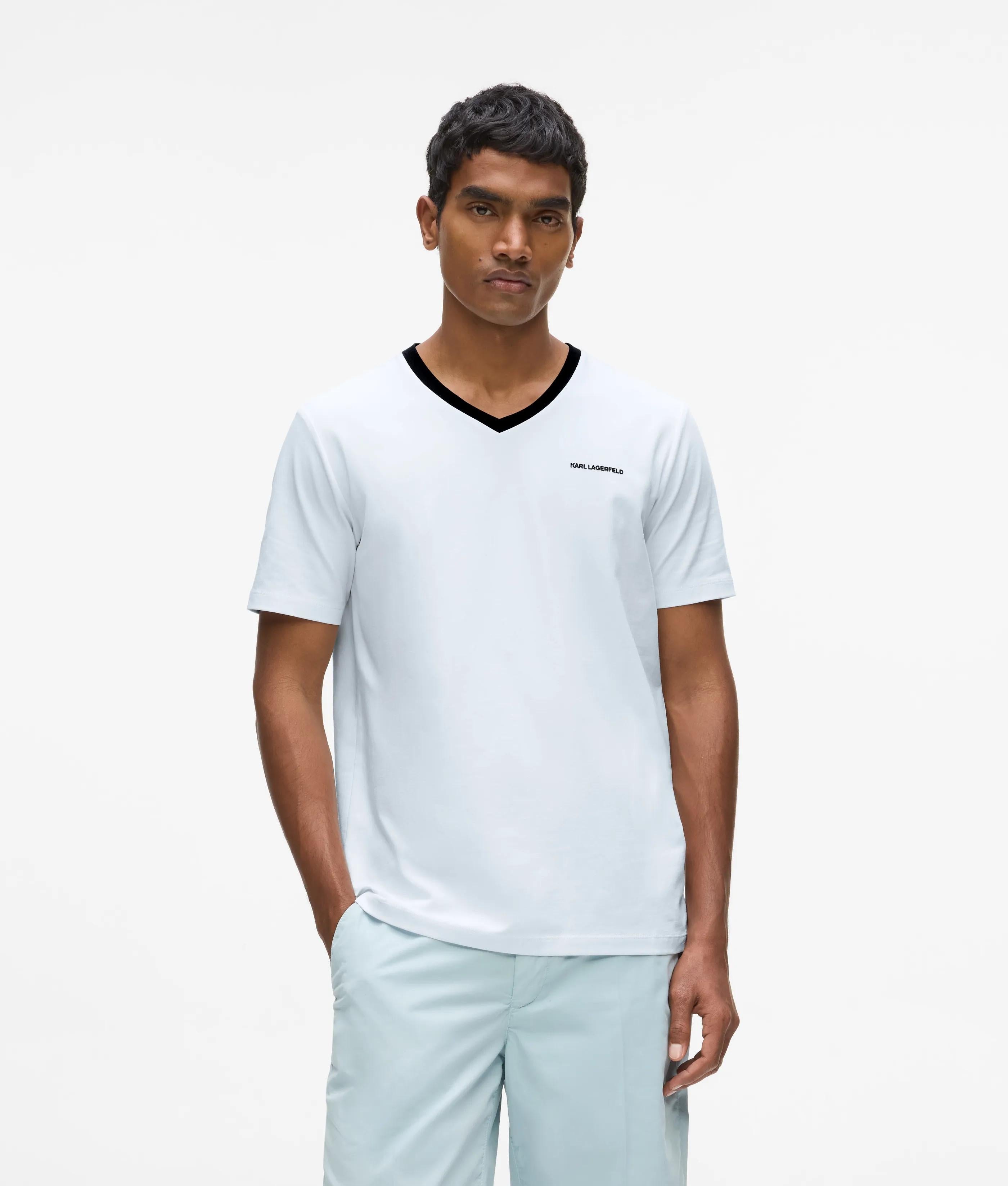 T-shirt à col en V contrasté
