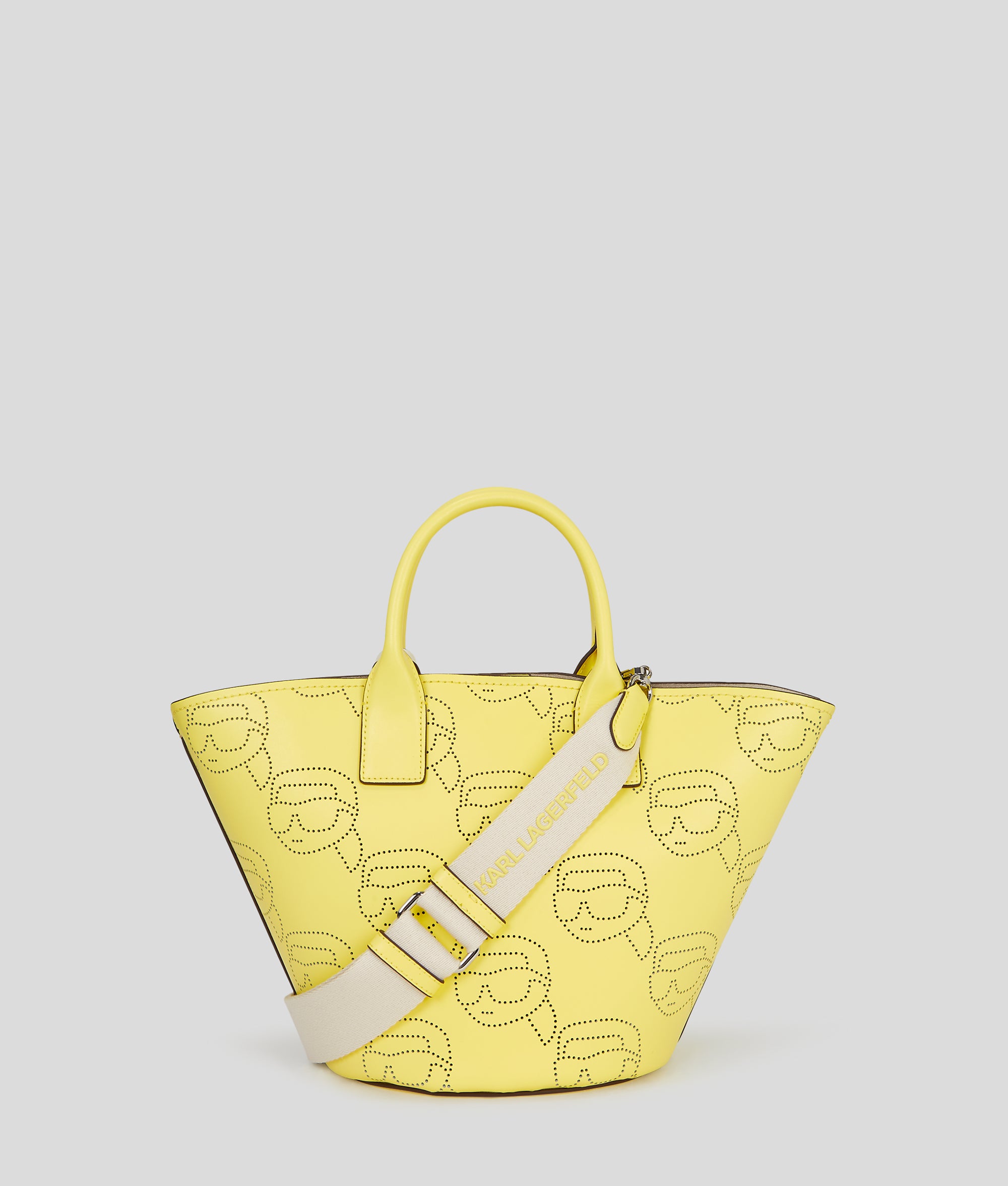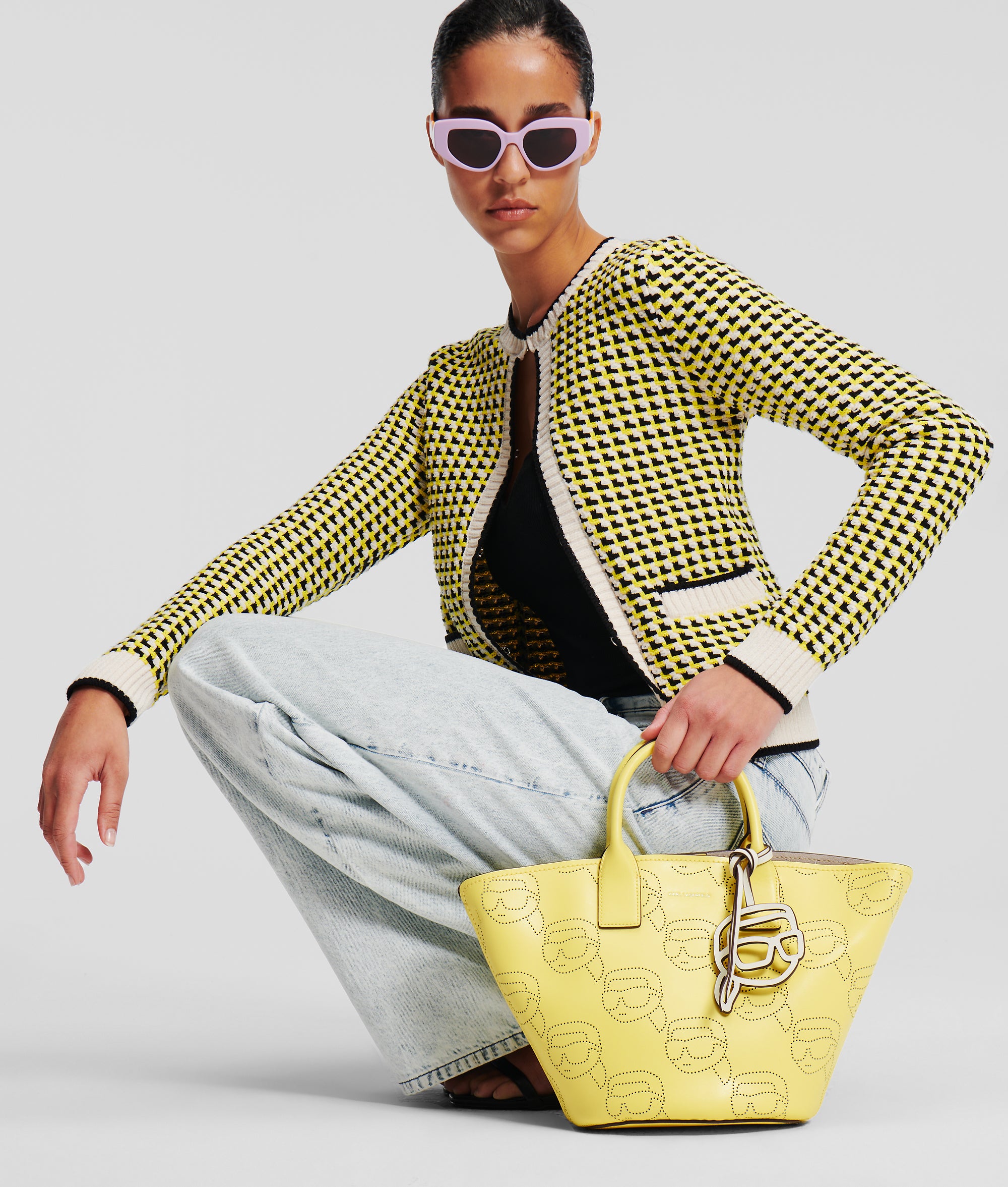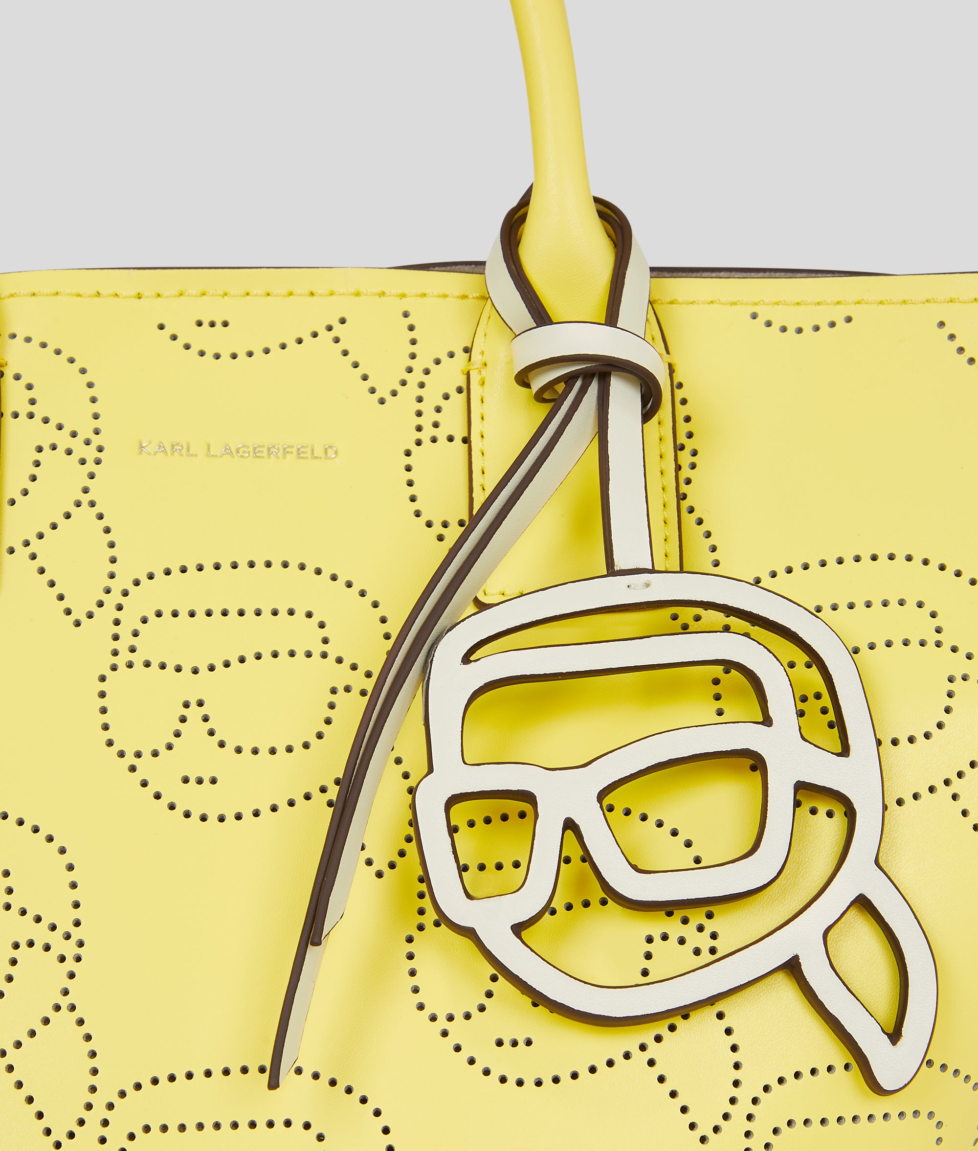 Confectionné en cuir somptueux, ce cabas IKON orné d'un motif pendant IKON Karl poli allie élégance et polyvalence. Les anses structurées associées à une bandoulière amovible offrent plusieurs options de portage, tandis que la poche intérieure vous permet de garder vos essentiels en sécurité. Un motif IKON Karl perforé façon all-over vient compléter cet accessoire avec une breloque fantaisie.