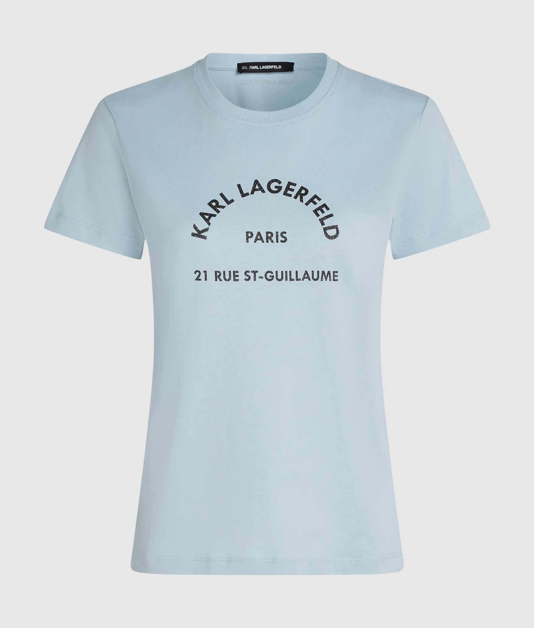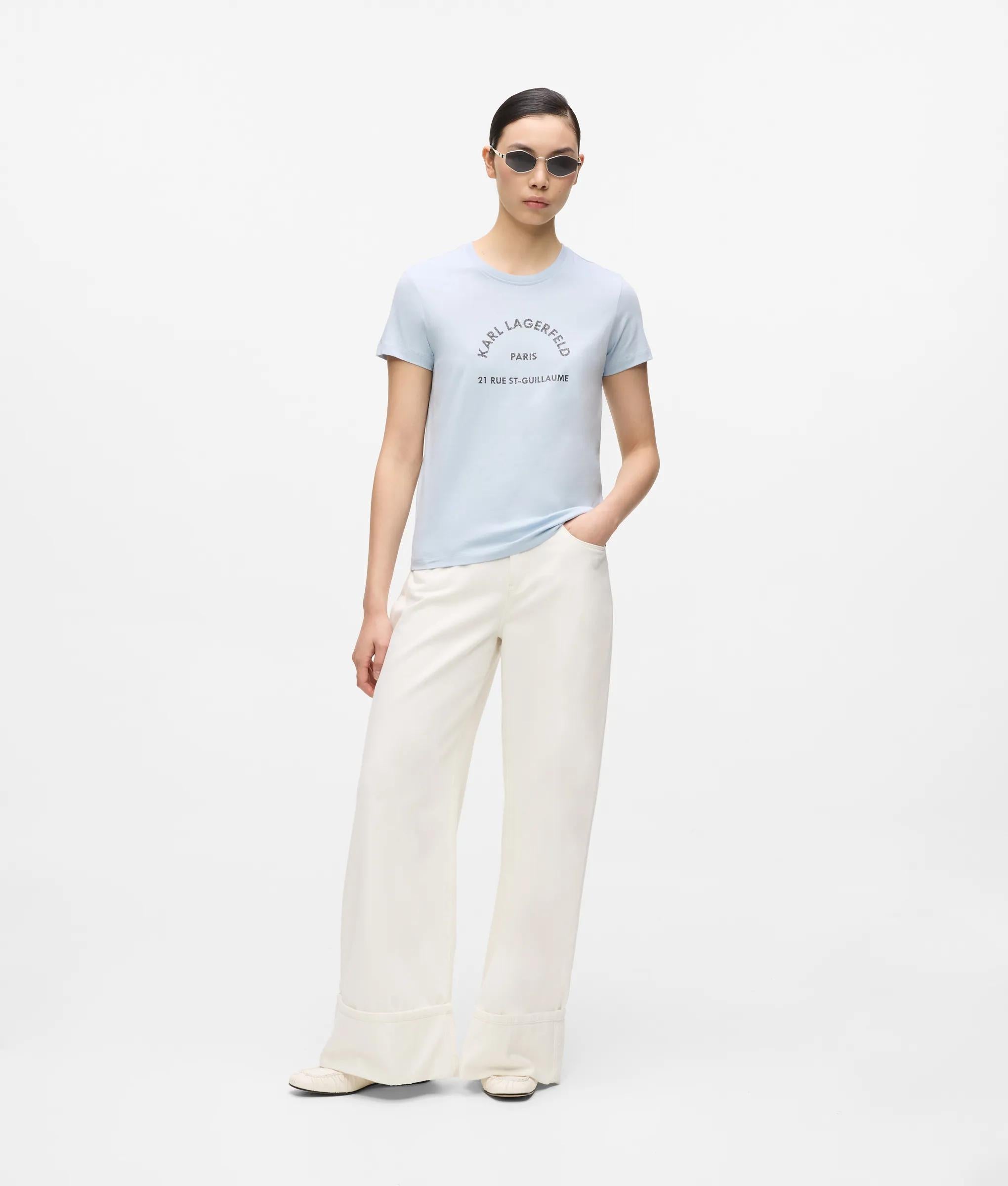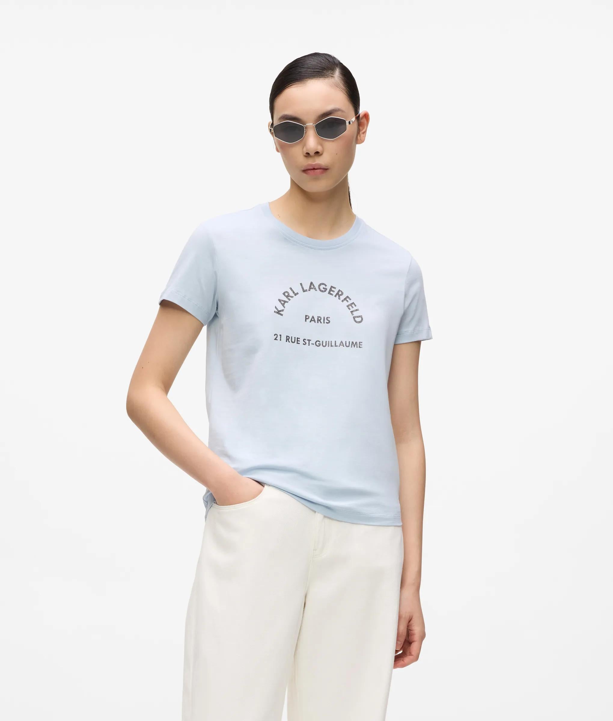 Le motif pailleté Rue St-Guillaume scintille sur la poitrine de ce t-shirt à col rond. La douceur du coton biologique garantit un confort respirant, pour une option à la fois naturelle et raffinée au quotidien.
