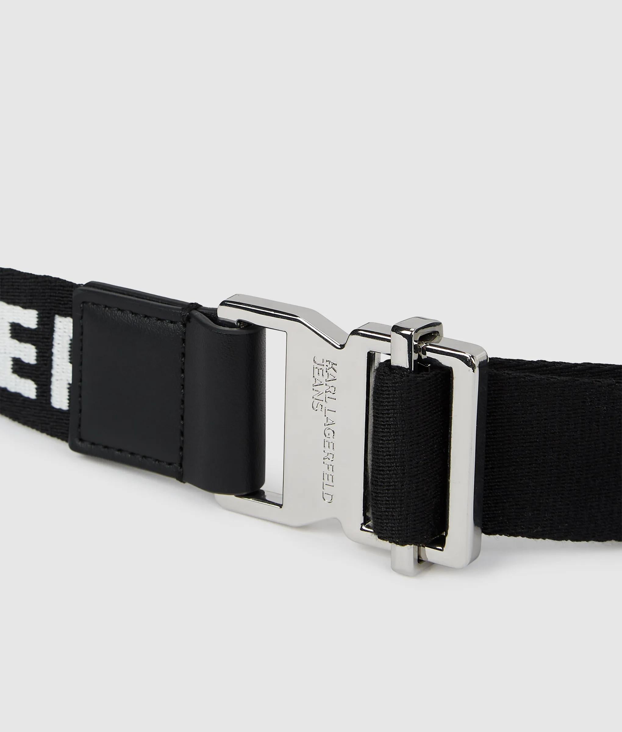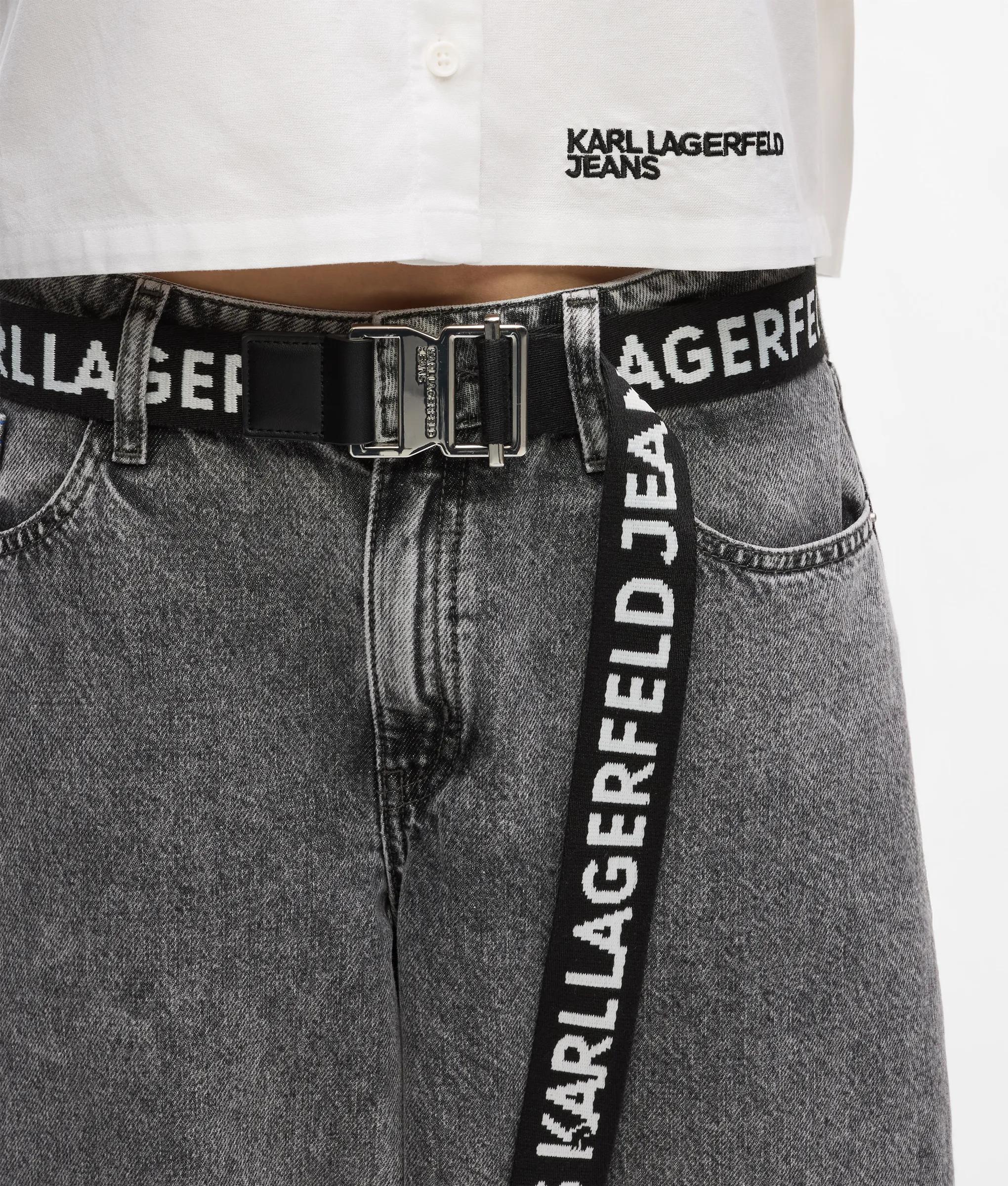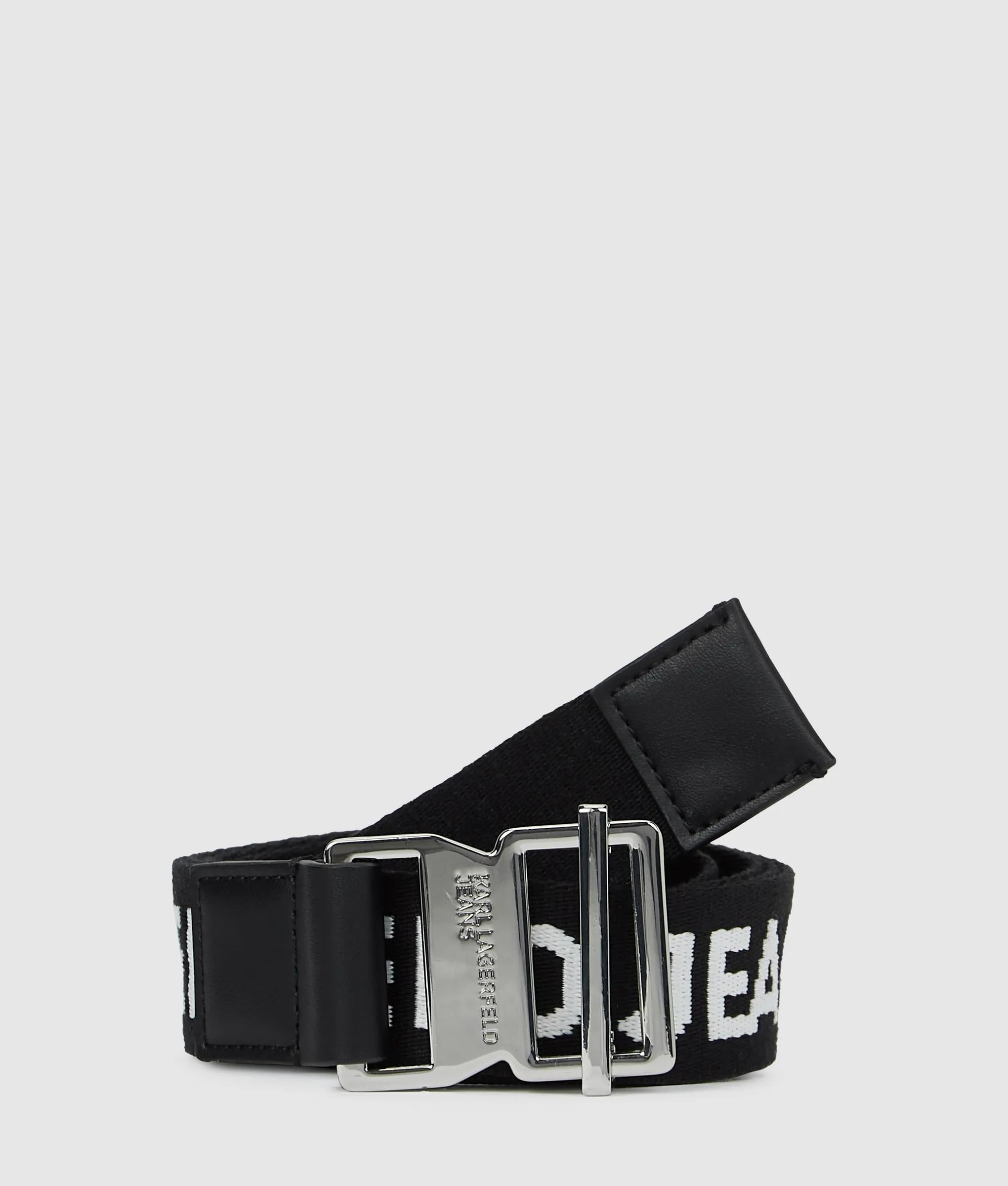 Une ceinture en toile en coton texturé ornée d'un audacieux logo KARL LAGERFELD JEANS et d'une boucle coulissante métallique pour un ajustement épuré et personnalisé qui vient sublimer les tenues décontractées.