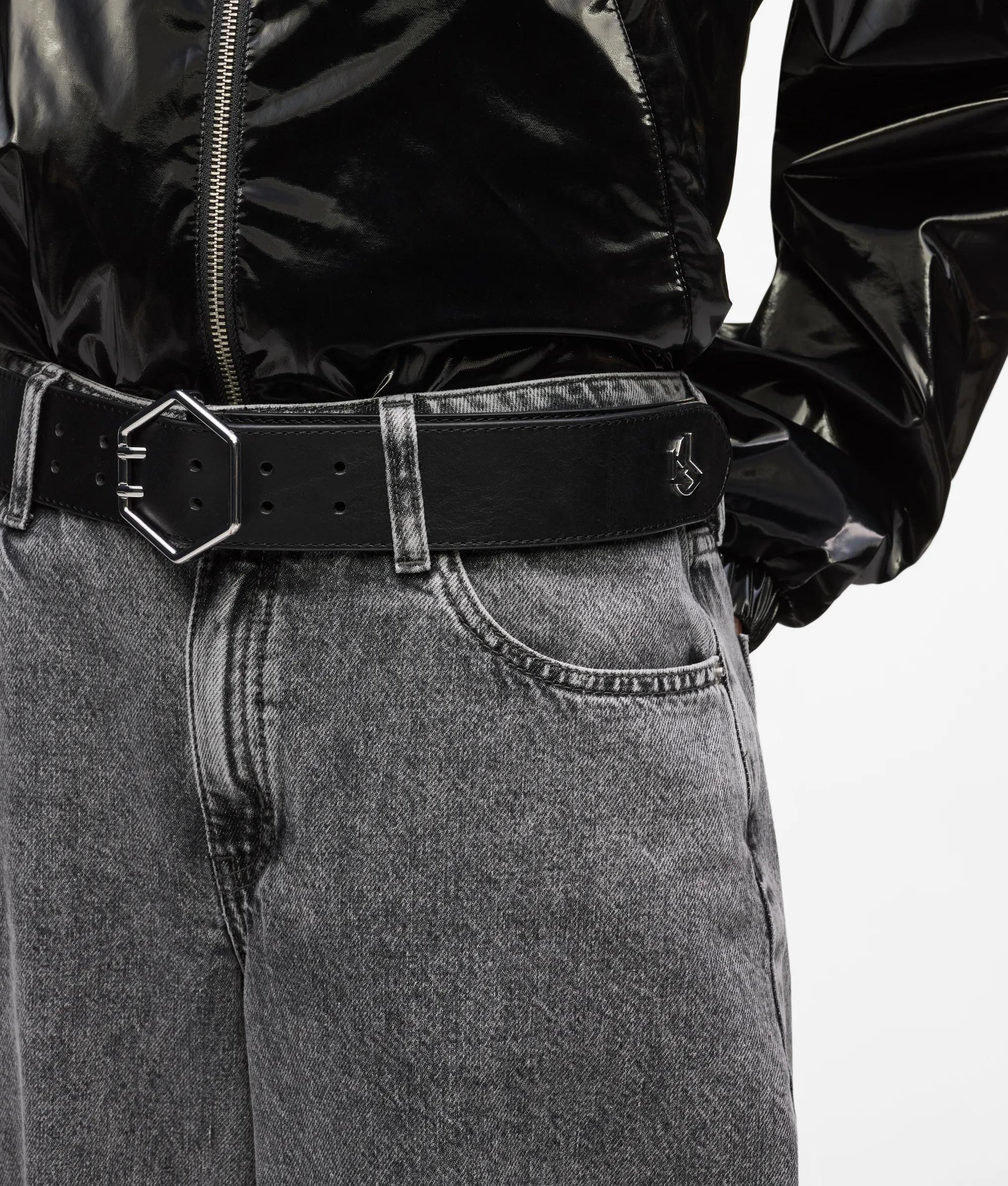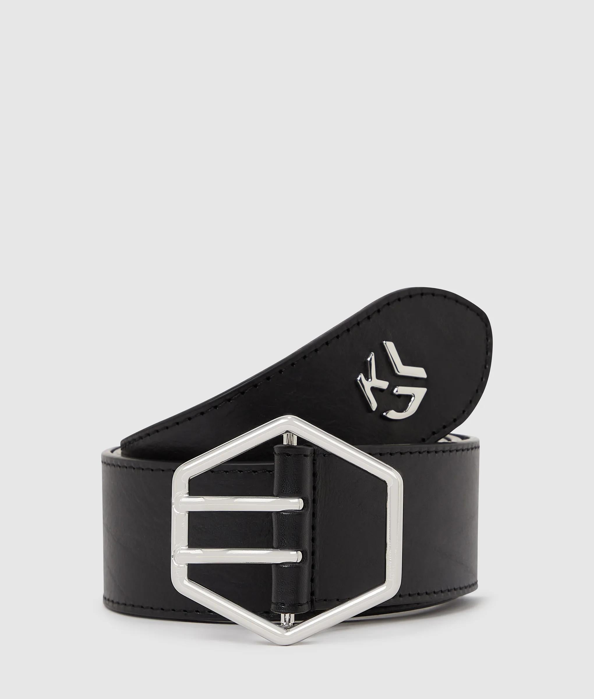 Cette ceinture à boucle hexagonale dégage une géométrie audacieuse et une attitude affirmée. Confectionnée dans un cuir riche, elle est dotée d'une fermeture à double ardillon et d'un subtil Monogram KLJ pour une finition inimitable.