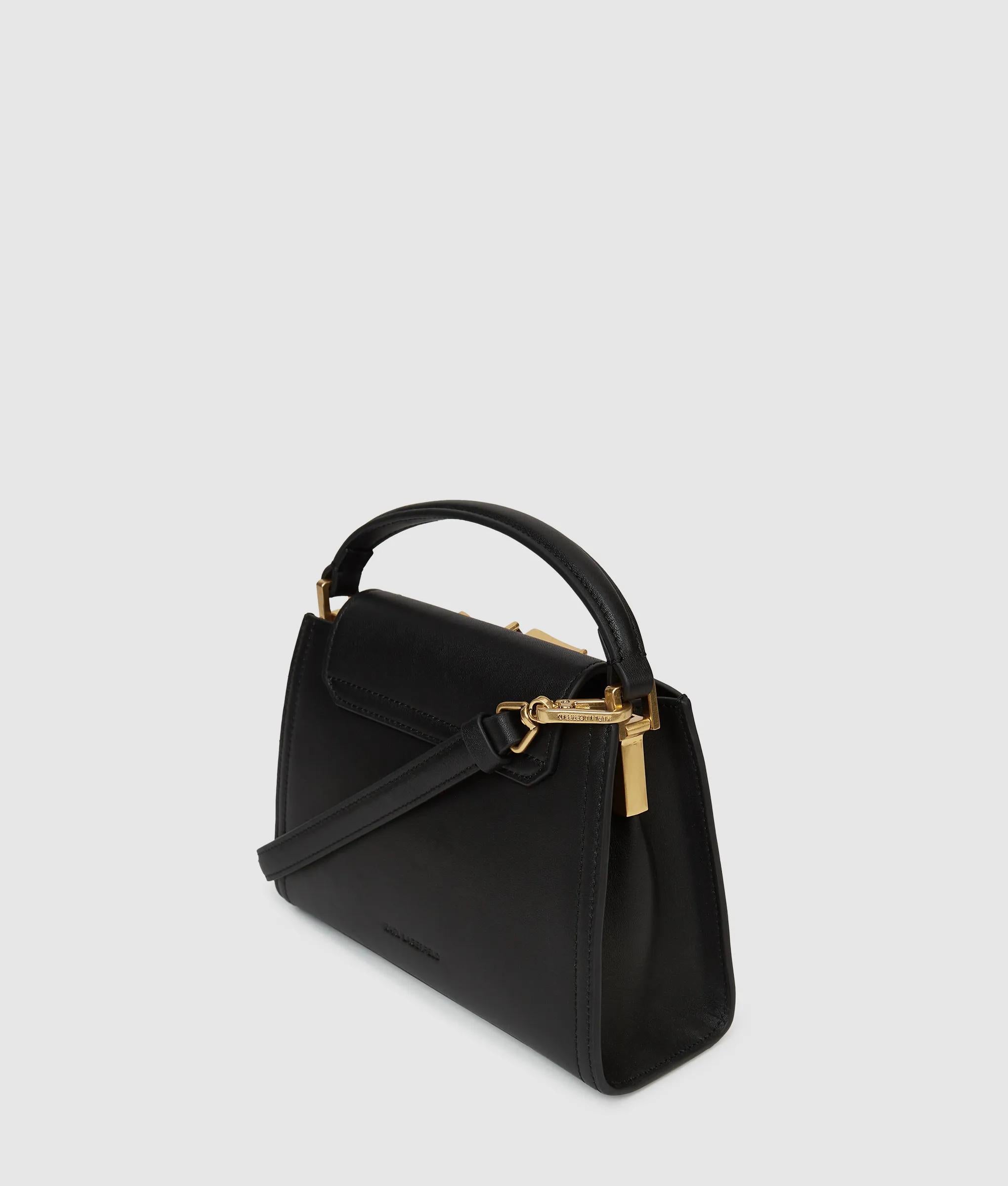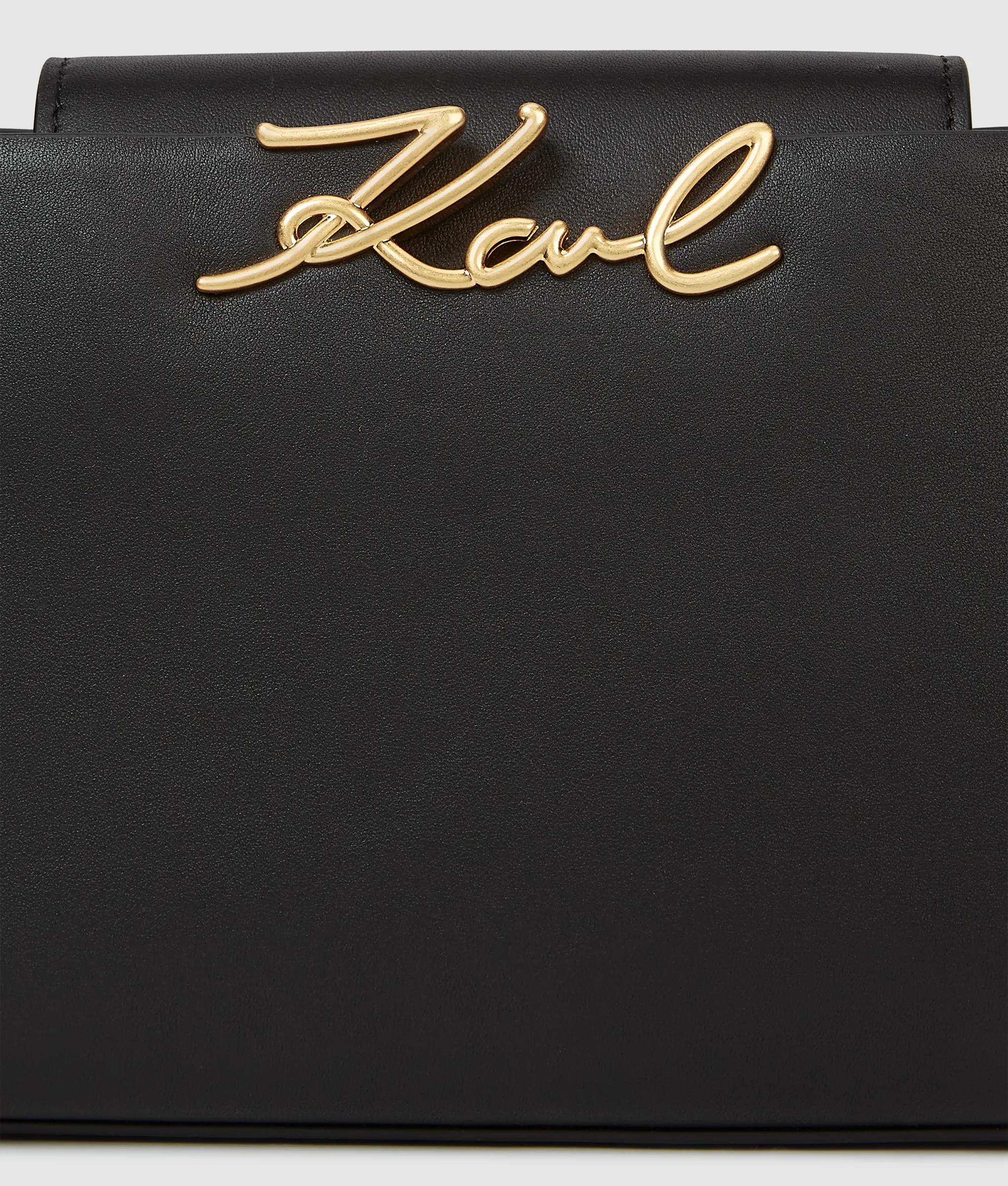Petit mais pratique, ce mini-sac à anse supérieure rehausse les tenues du quotidien grâce à son style intemporel et sa finition en cuir. La bandoulière amovible est gage de polyvalence, tandis que le logo Karl Autograph lui ajoute de l’élégance.