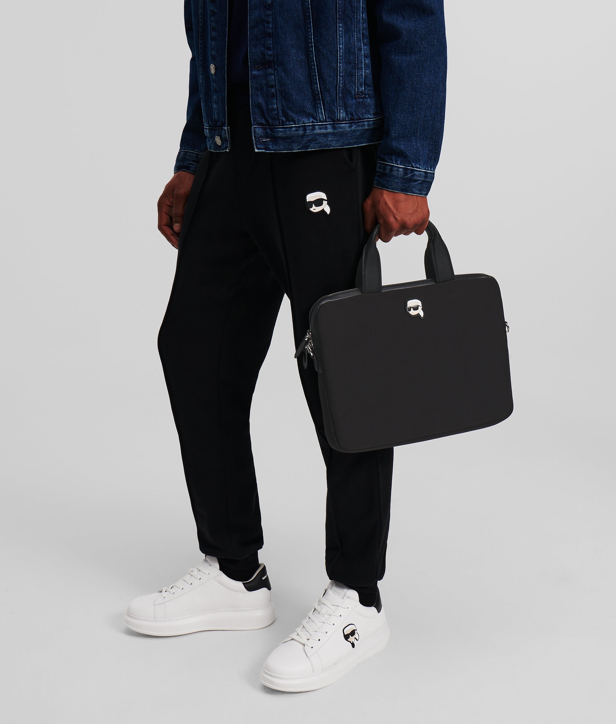 Un indispensable sophistiqué pour ranger votre ordinateur portable en toute sécurité lors de vos trajets quotidiens ou de vos voyages. Fabriqué en néoprène matelassé, cet élégant étui de protection est doté de deux poignées et d'une bandoulière amovible. Le motif IKON Karl revisité, inspiré par la collection populaire de NFT IKON, complète cet accessoire high-tech essentiel.