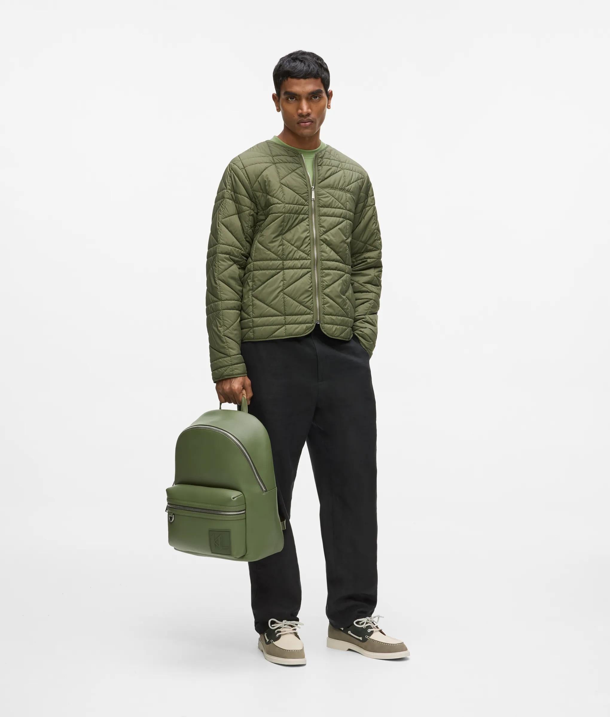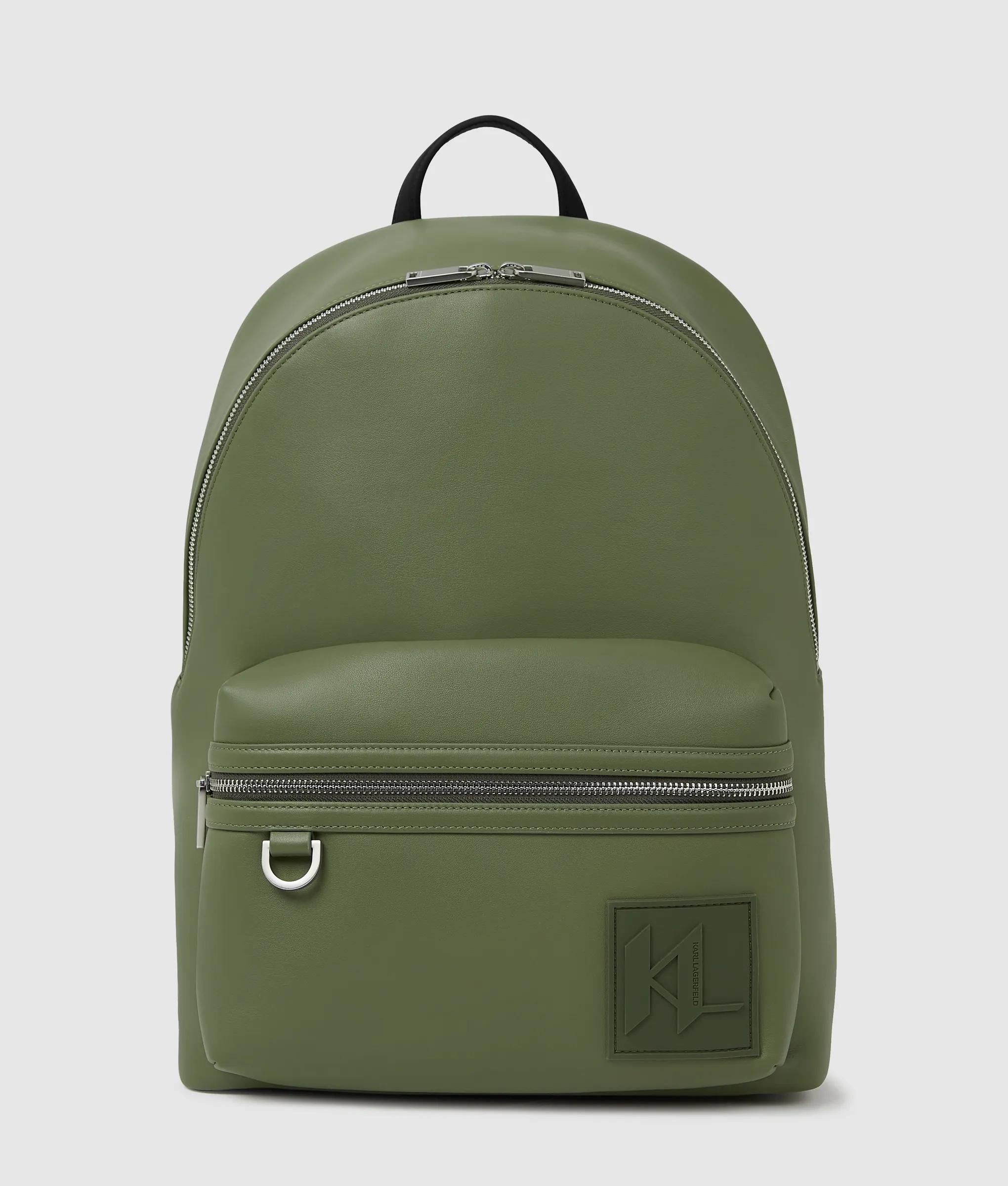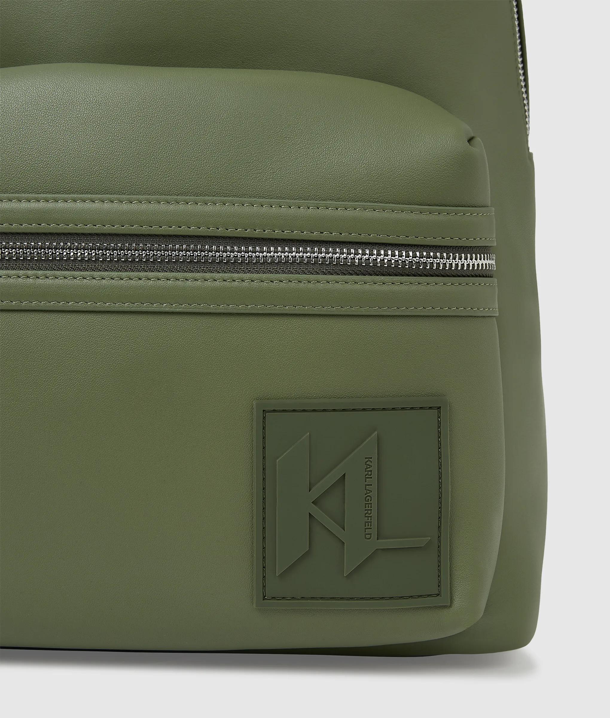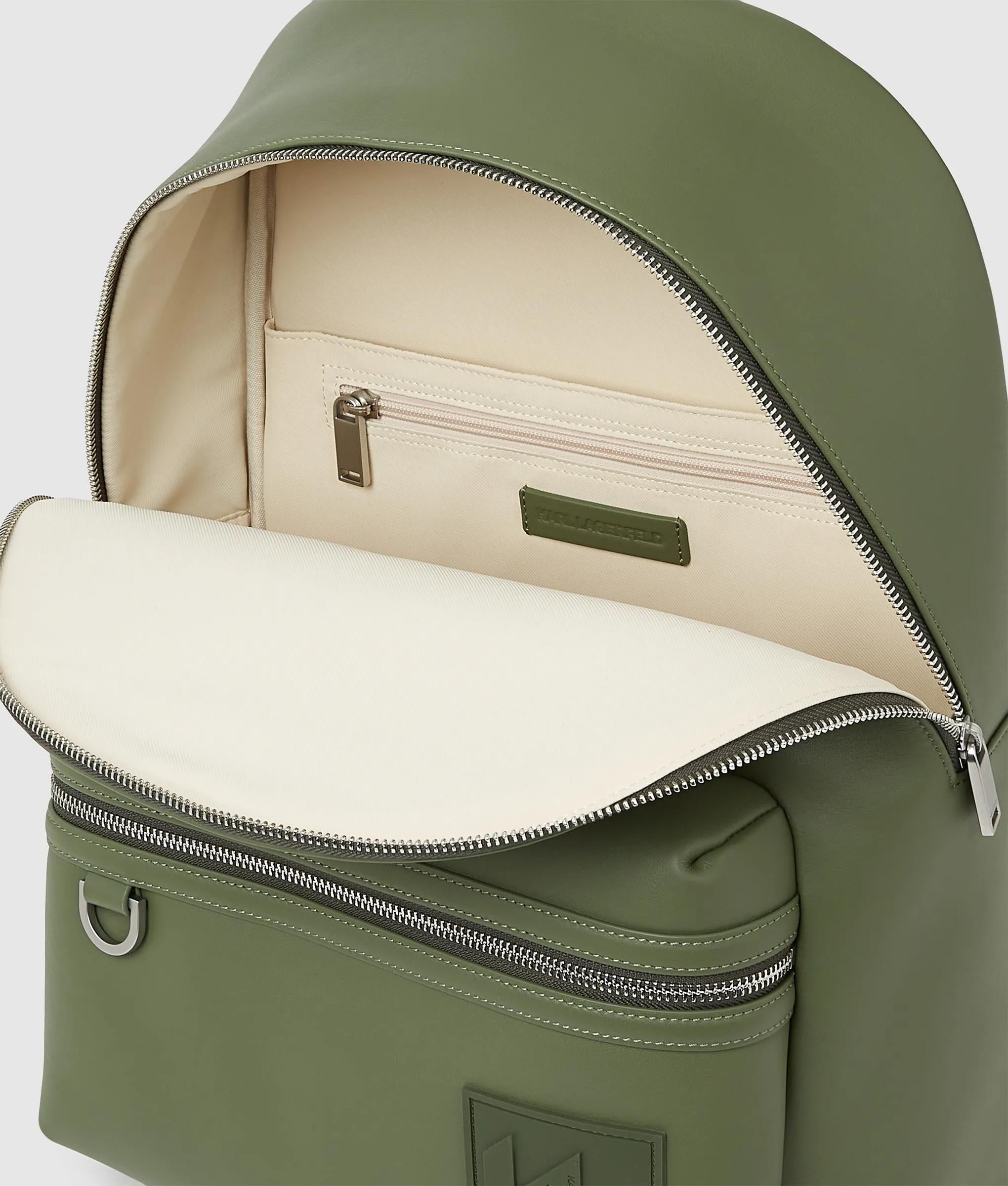 Un sac à dos simili-cuir luxueusement doux, avec une fermeture éclair argentée brillante et un écusson KL Monogram audacieux. Les deux bretelles et l’anse supérieure offrent un accès facile pour des sorties en ville ou des escapades le week-end.