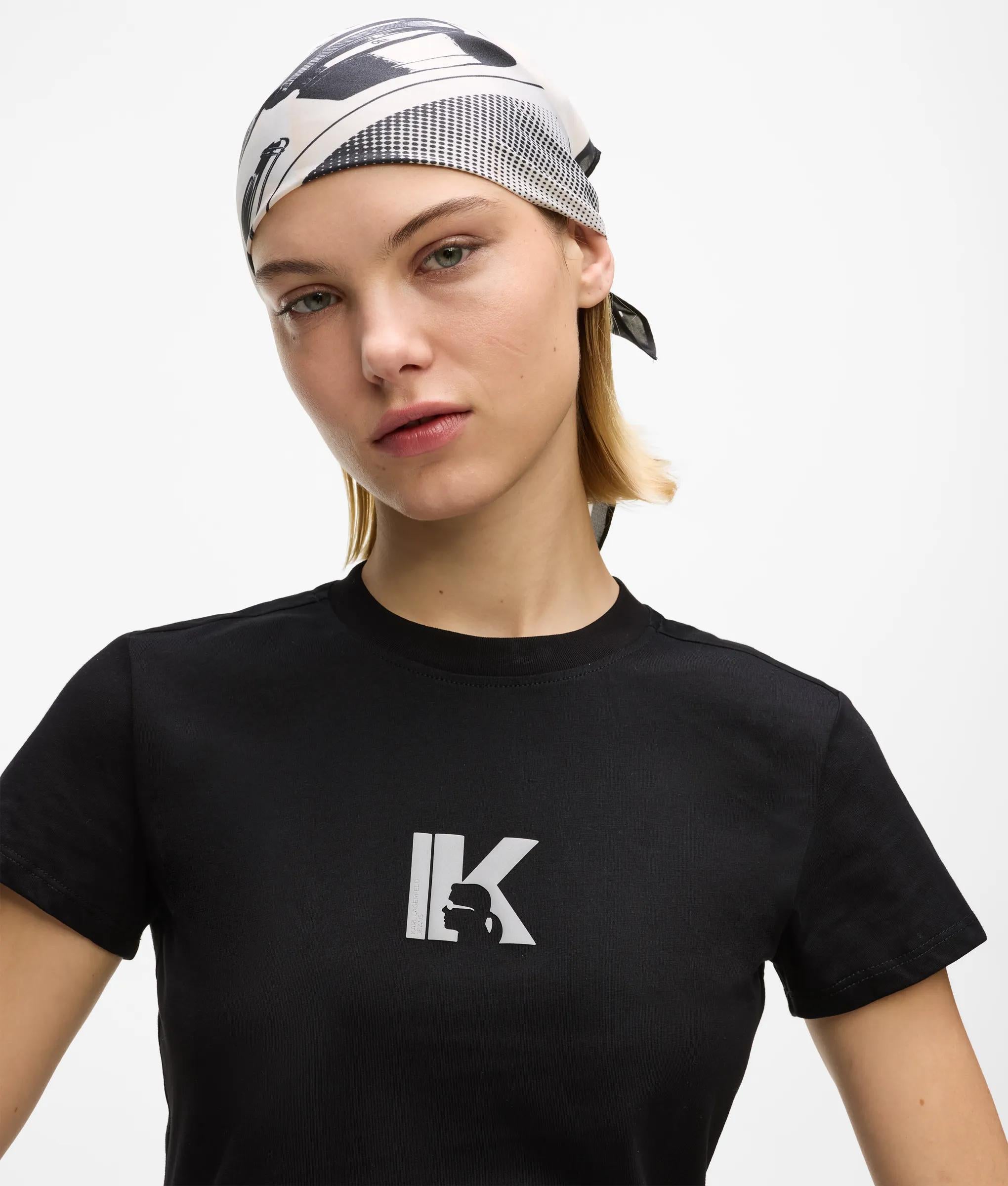 Un T-shirt élégant à coupe ajustée avec un col côtelé doux et un logo K audacieux qui ajoute une touche de netteté et de confiance à vos pièces essentielles du quotidien.
