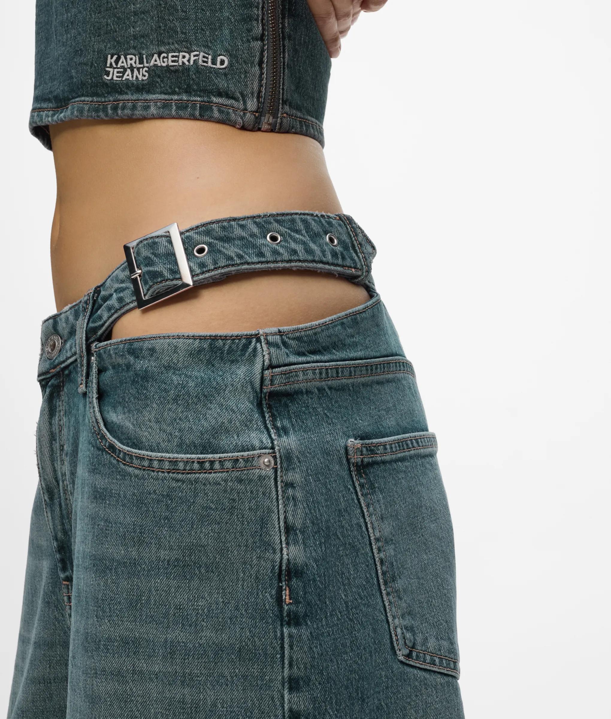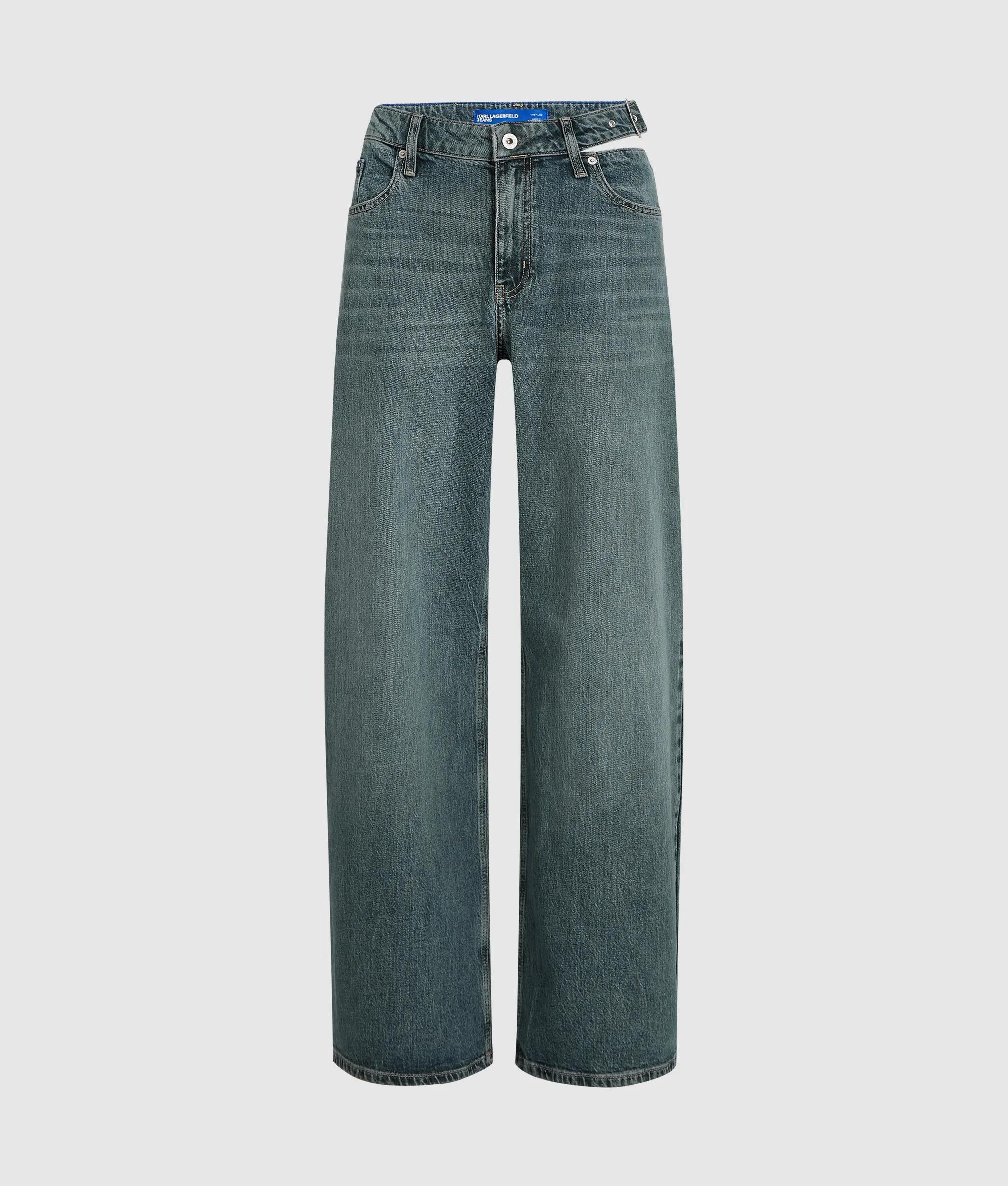 Du denim décontracté avec une touche rebelle. Ce jeans à jambes larges crée une silhouette assurée avec sa taille basse interrompue par des découpes et une boucle. Associez-le à un t-shirt cropped pour mettre en valeur la taille.