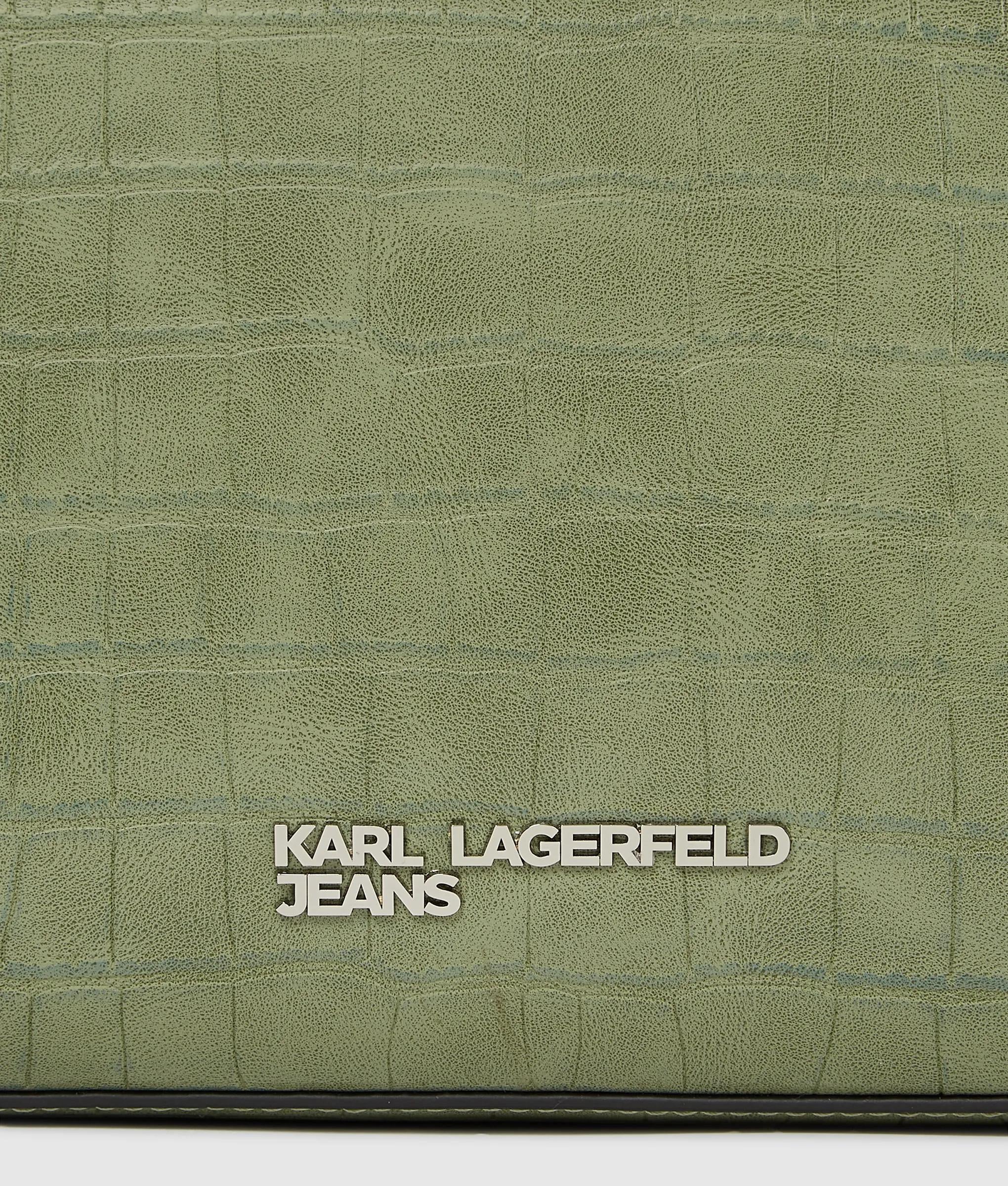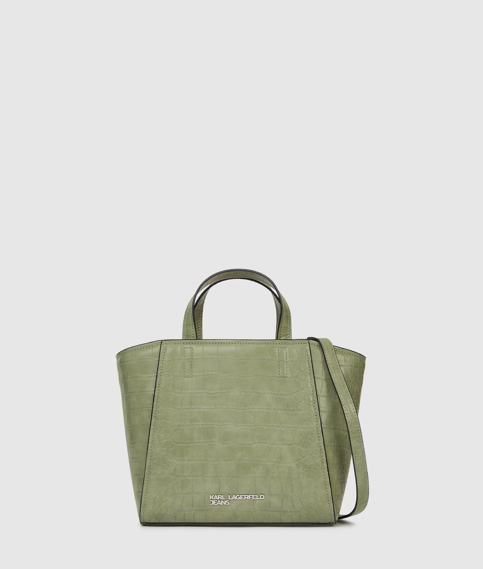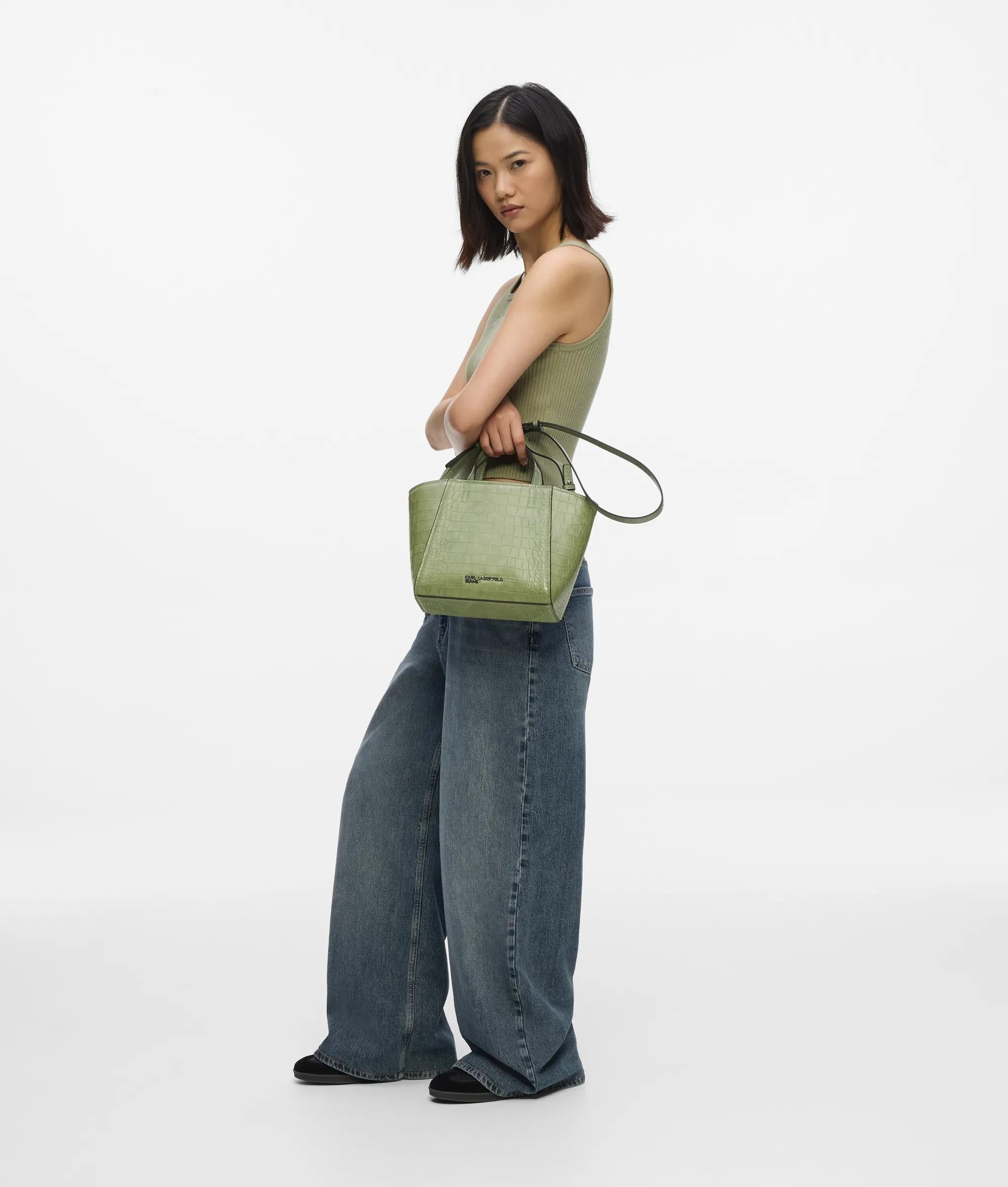 Ce sac en toile mini est conçu dans une forme compacte et géométrique, et est fini avec un effet crocodile brillant pour une approche nette et tactile de l'accessoirisation quotidienne.