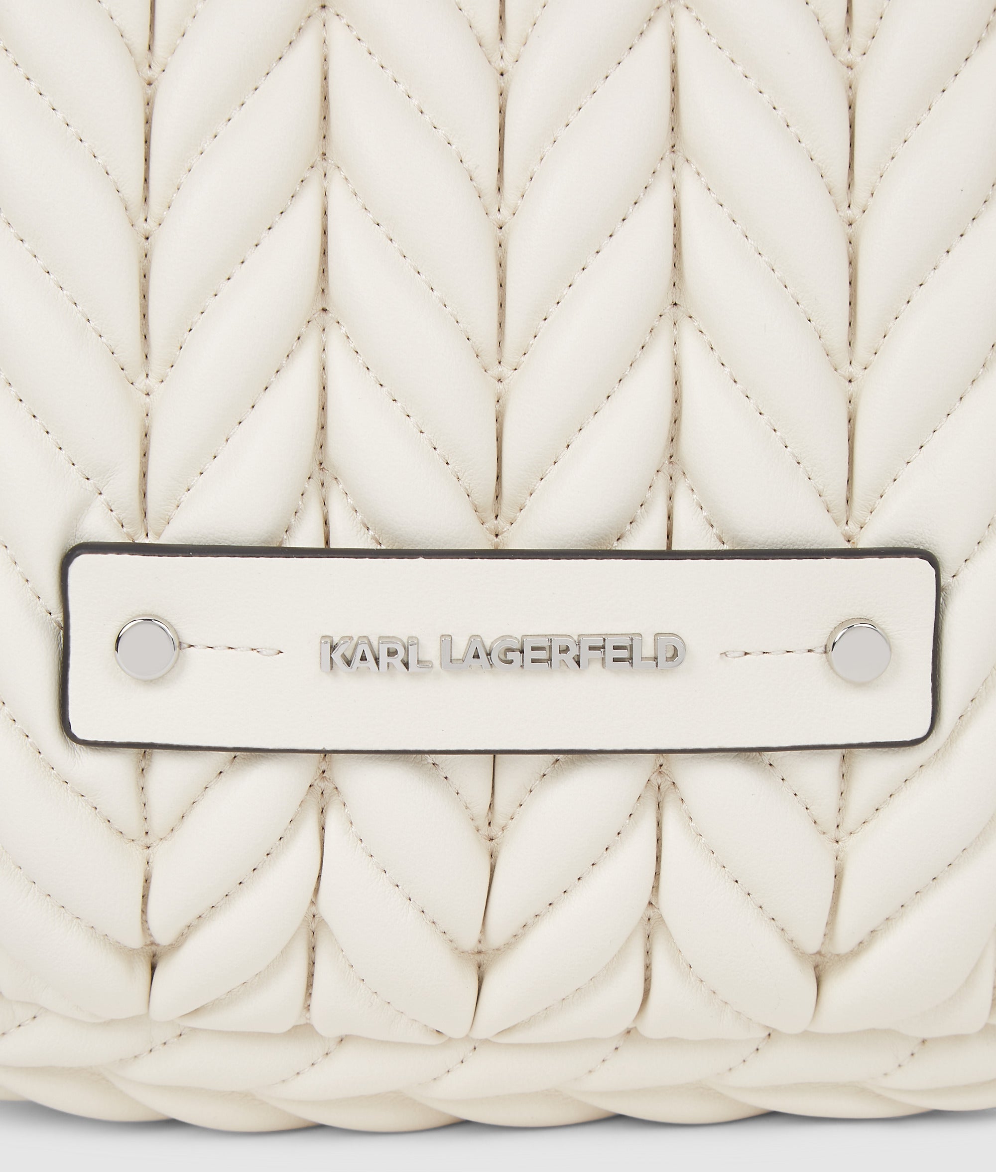 La texture luxueuse rencontre le design contemporain dans ce sac besace, doté d'un motif de tressage matelassé moelleux. La sangle ajustable assure un confort optimal, tandis que la plaque KARL LAGERFELD cloutée complète l'ensemble.