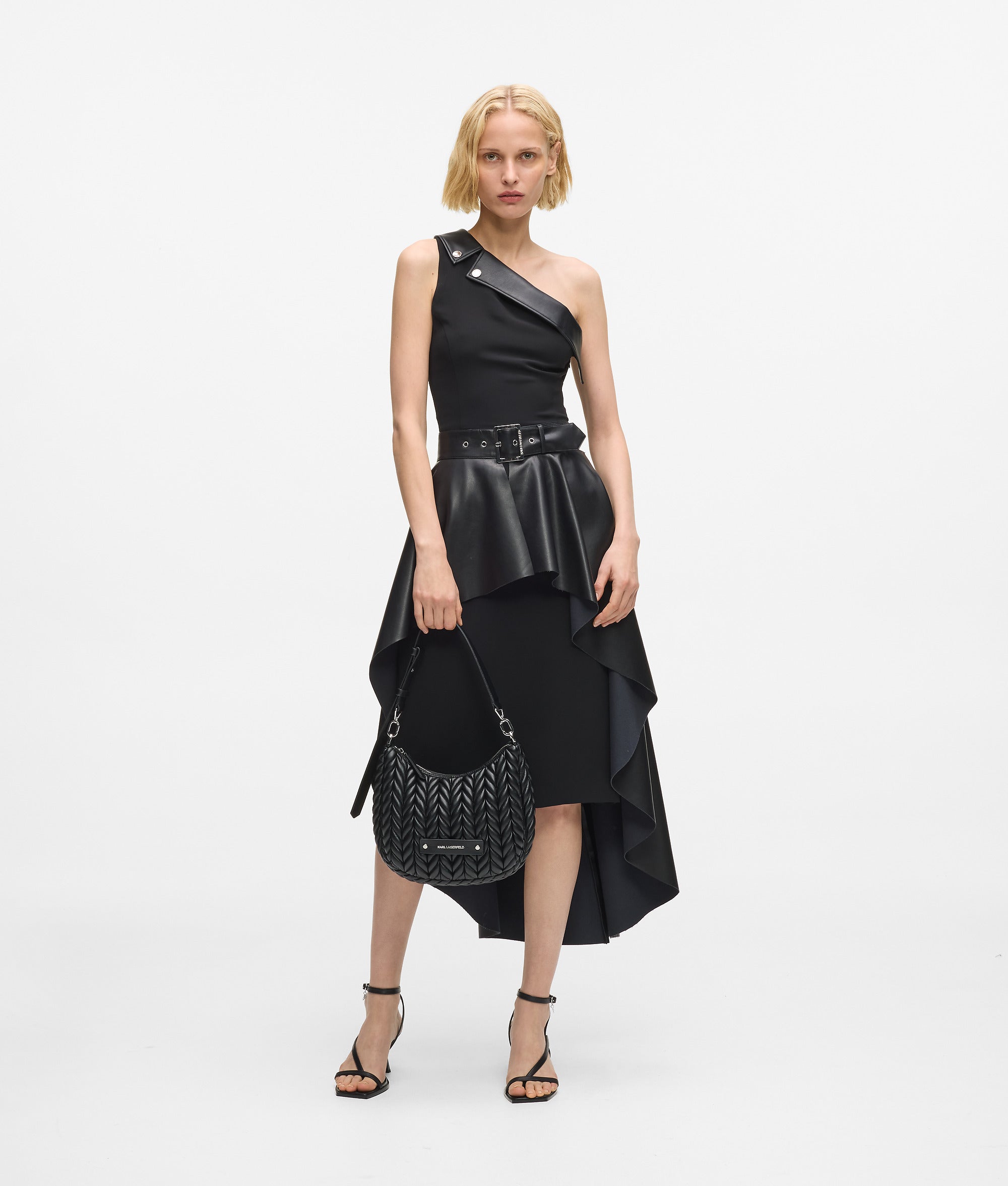 La texture luxueuse rencontre le design contemporain dans ce sac besace, doté d'un motif de tressage matelassé moelleux. La sangle ajustable assure un confort optimal, tandis que la plaque KARL LAGERFELD cloutée complète l'ensemble.
