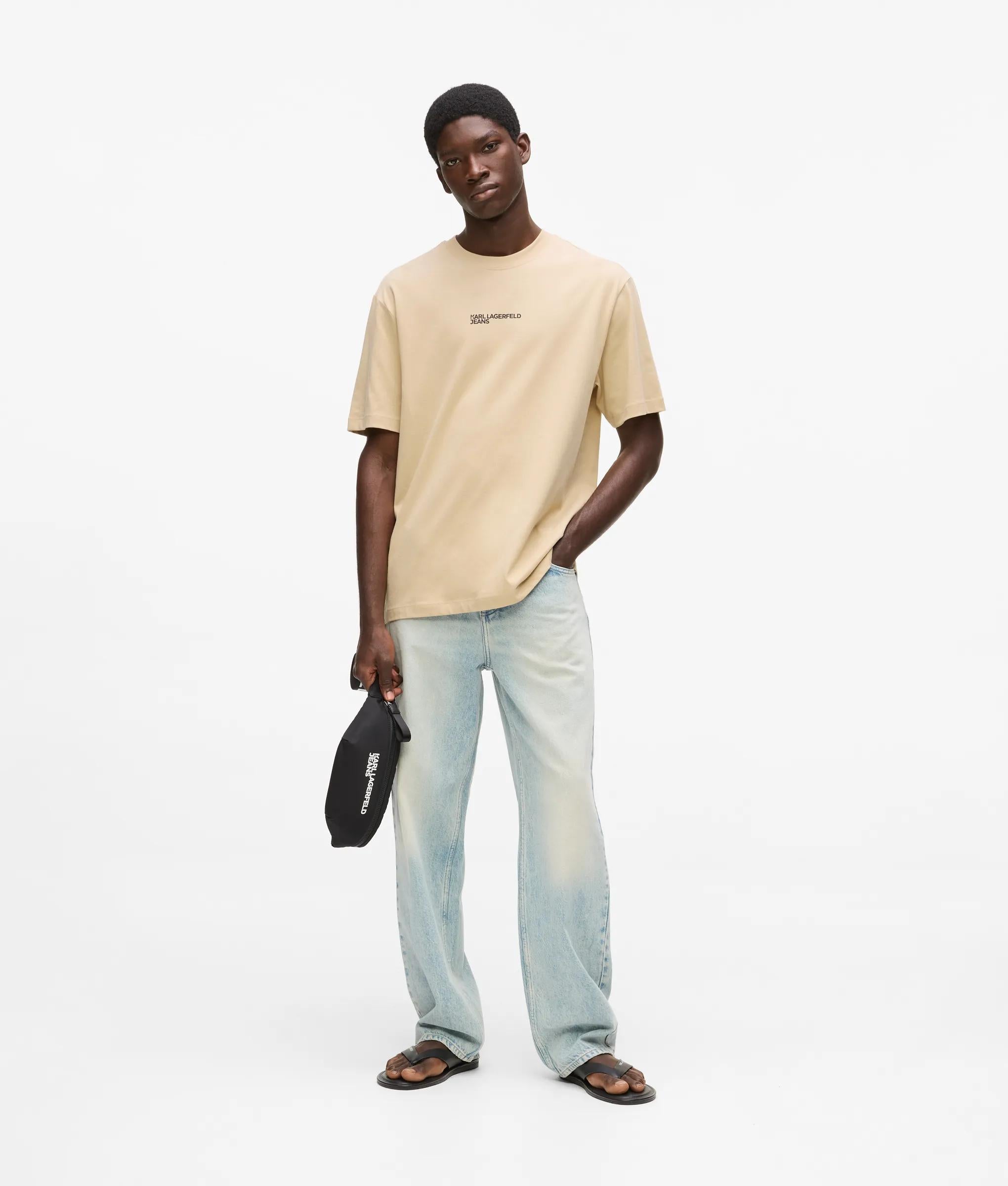 Un T-shirt oversize audacieux avec un col rond classique et un logo discret sur la poitrine, dynamisé par une impression de logo en cadre frappante au dos pour une allure confiante et prête pour la rue.