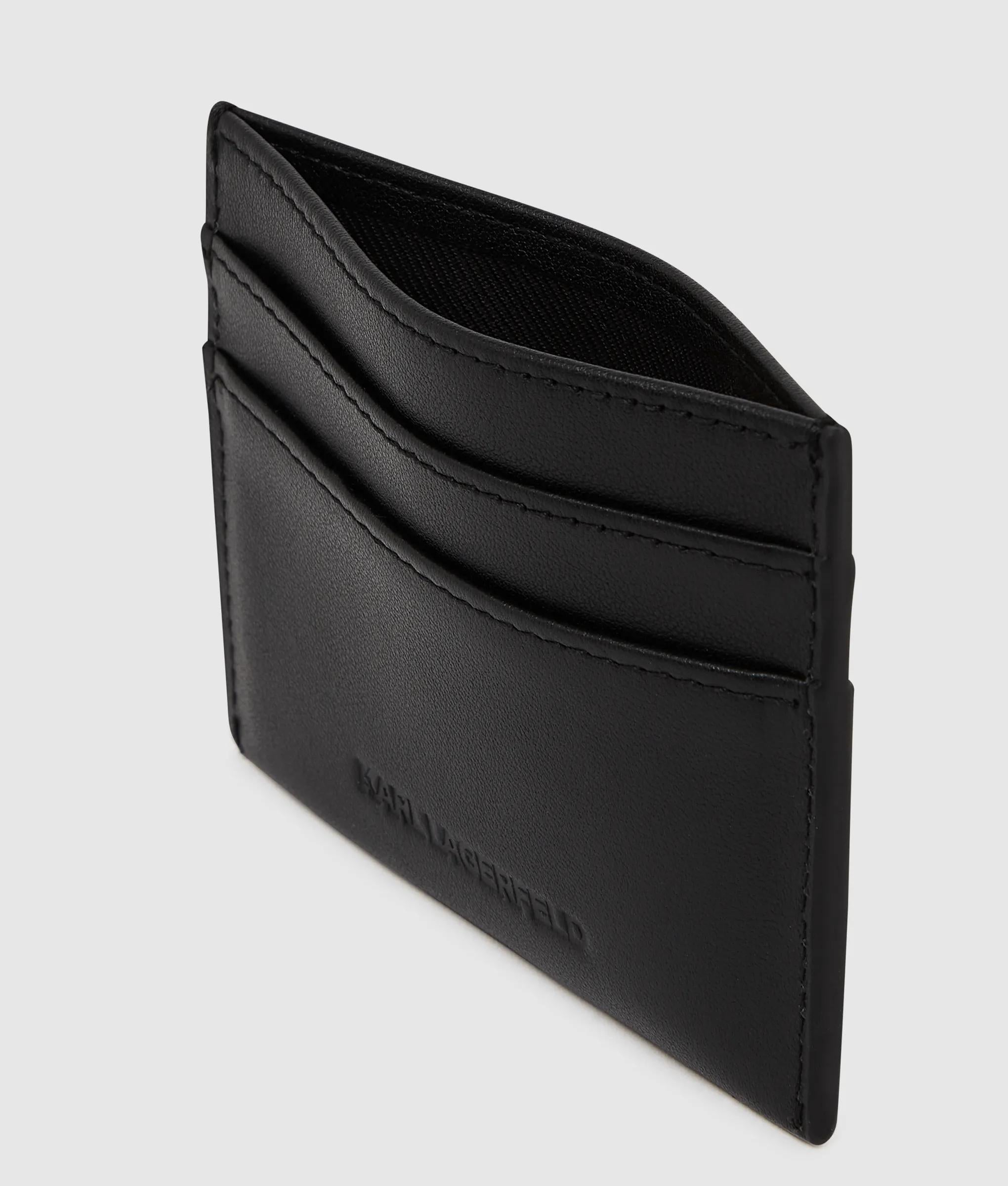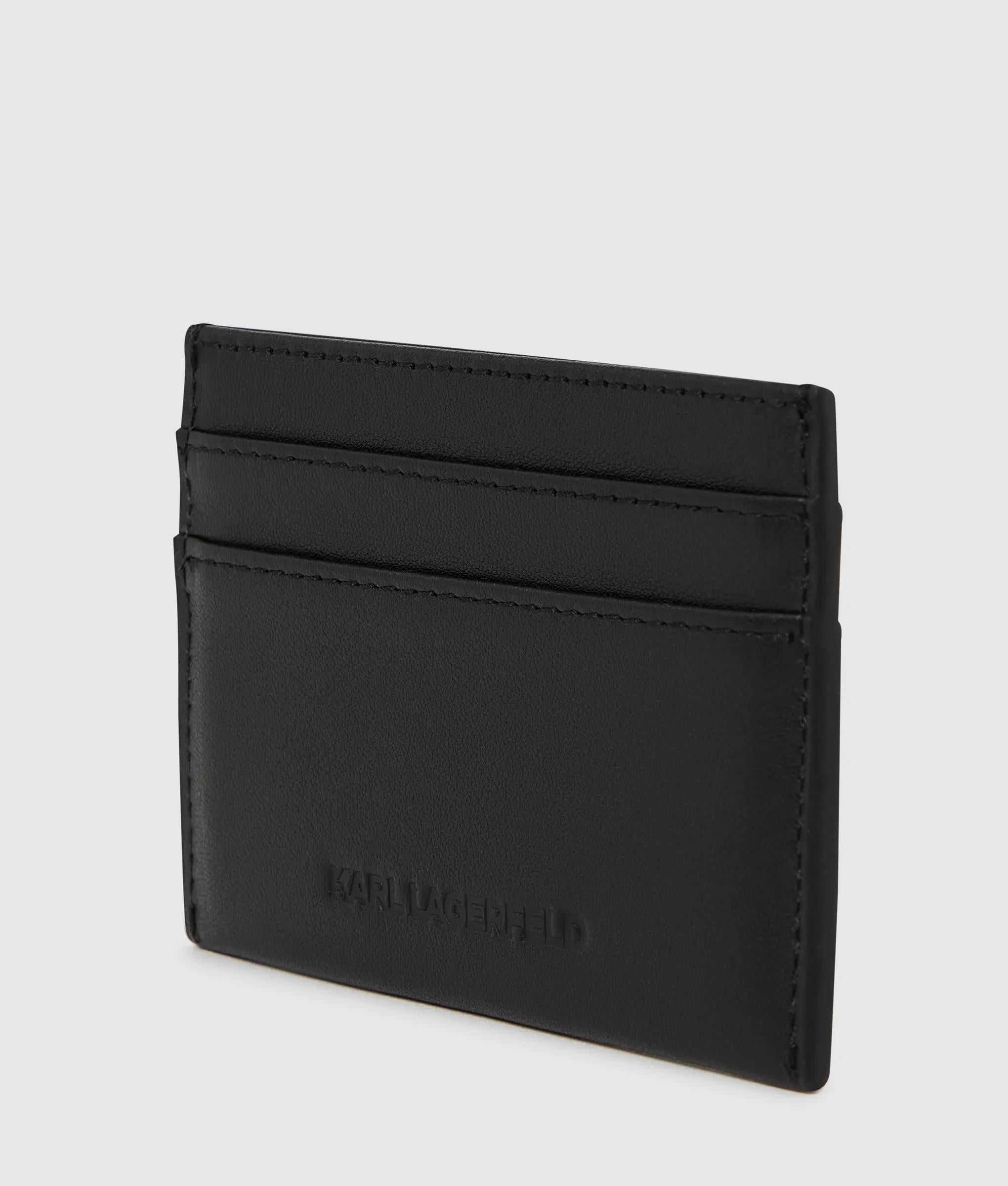Le simili-cuir doux au toucher définit ce porte-cartes épuré. Son profil fin contient les Essentials avec trois compartiments pour cartes et une poche centrale, rehaussée d'un écusson KL Monogram.