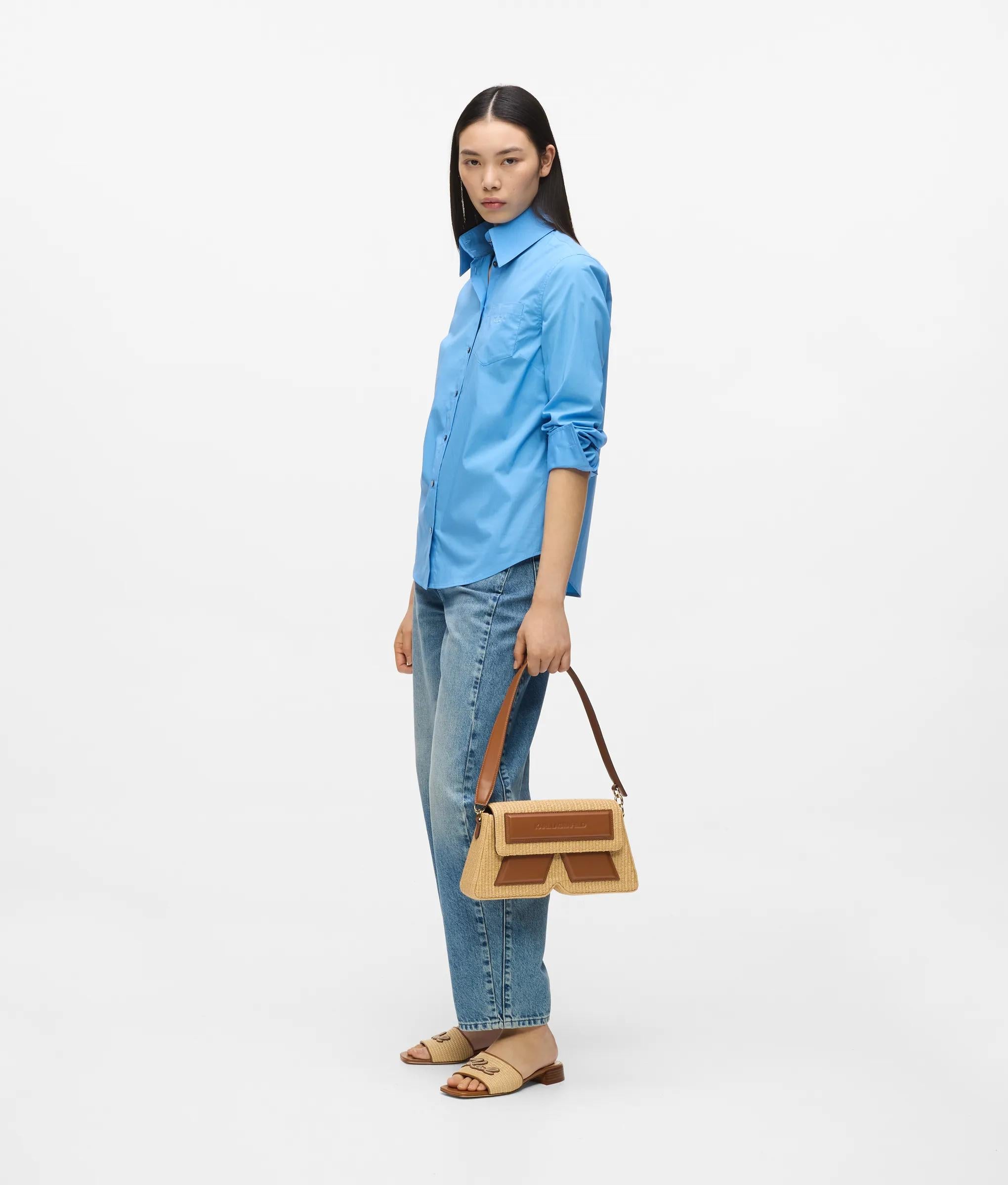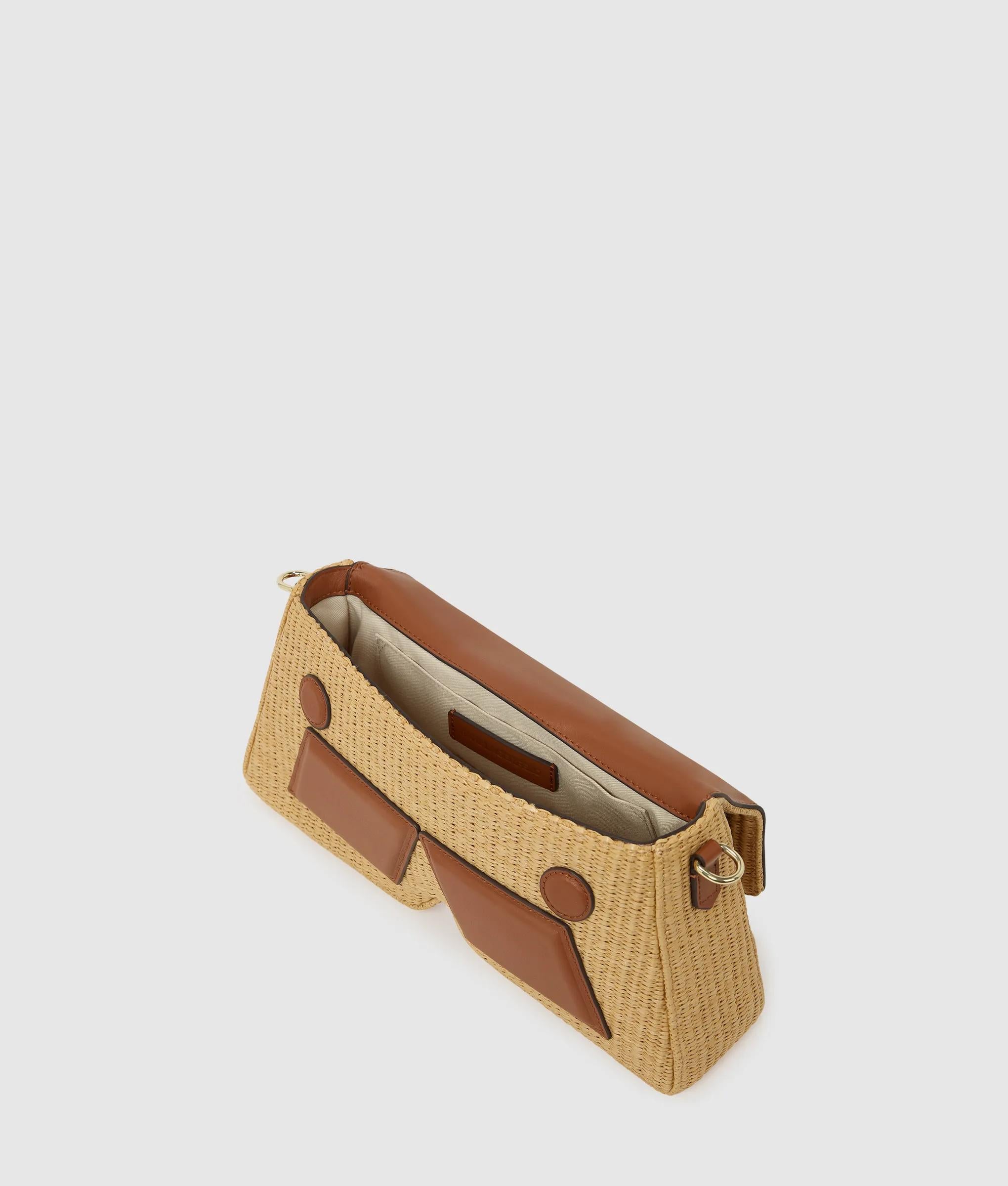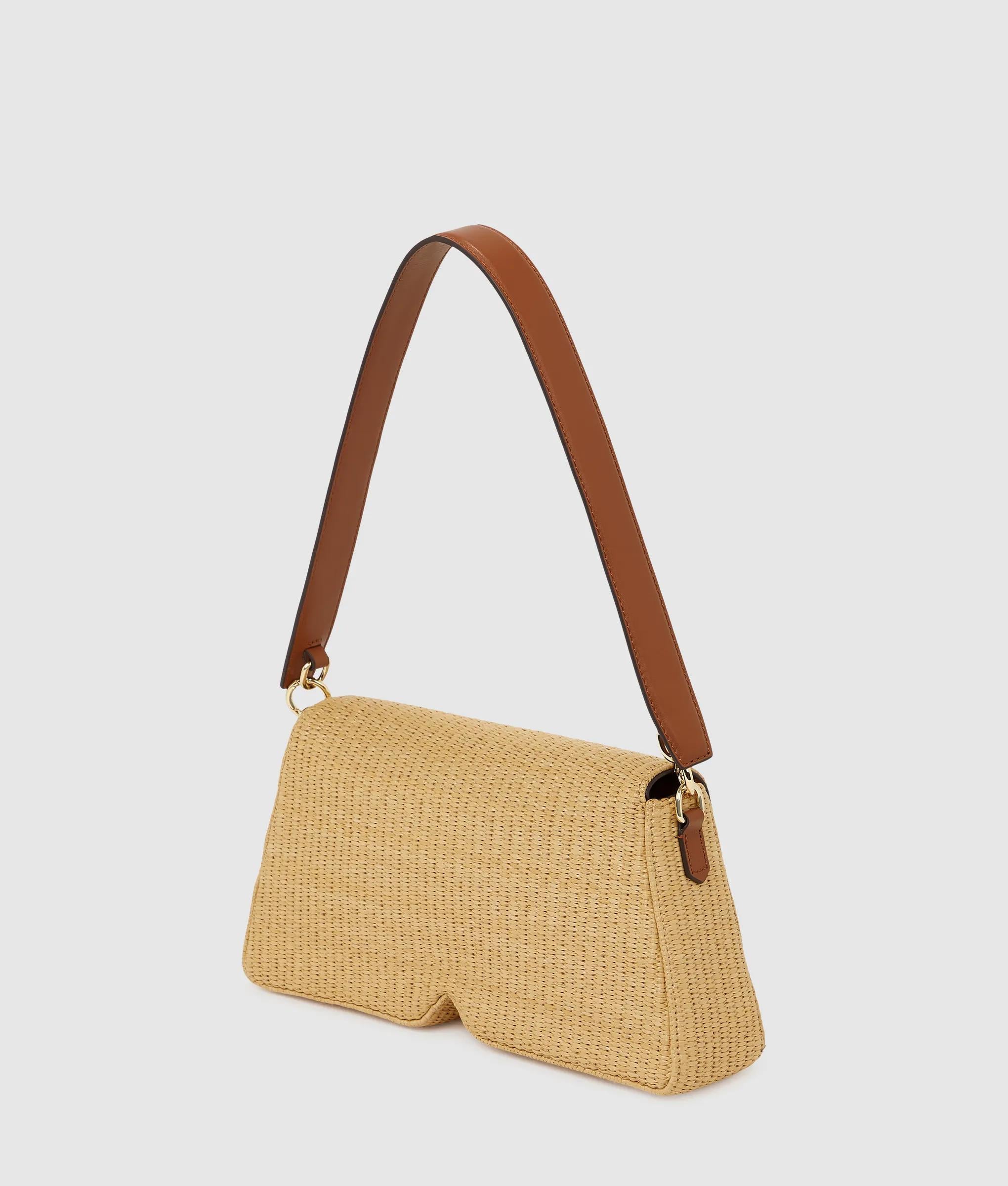 Ce sac porté épaule contemporain associe une silhouette K innovante à une fabrication tissée pour une touche estivale. Une élégante fermeture à rabat et une sangle en cuir technique offrent sécurité et confort.