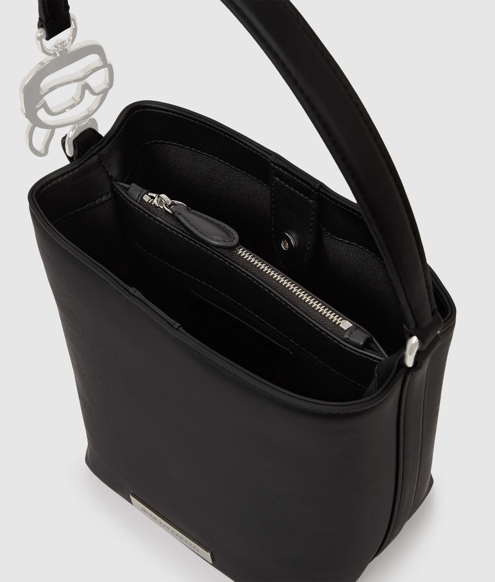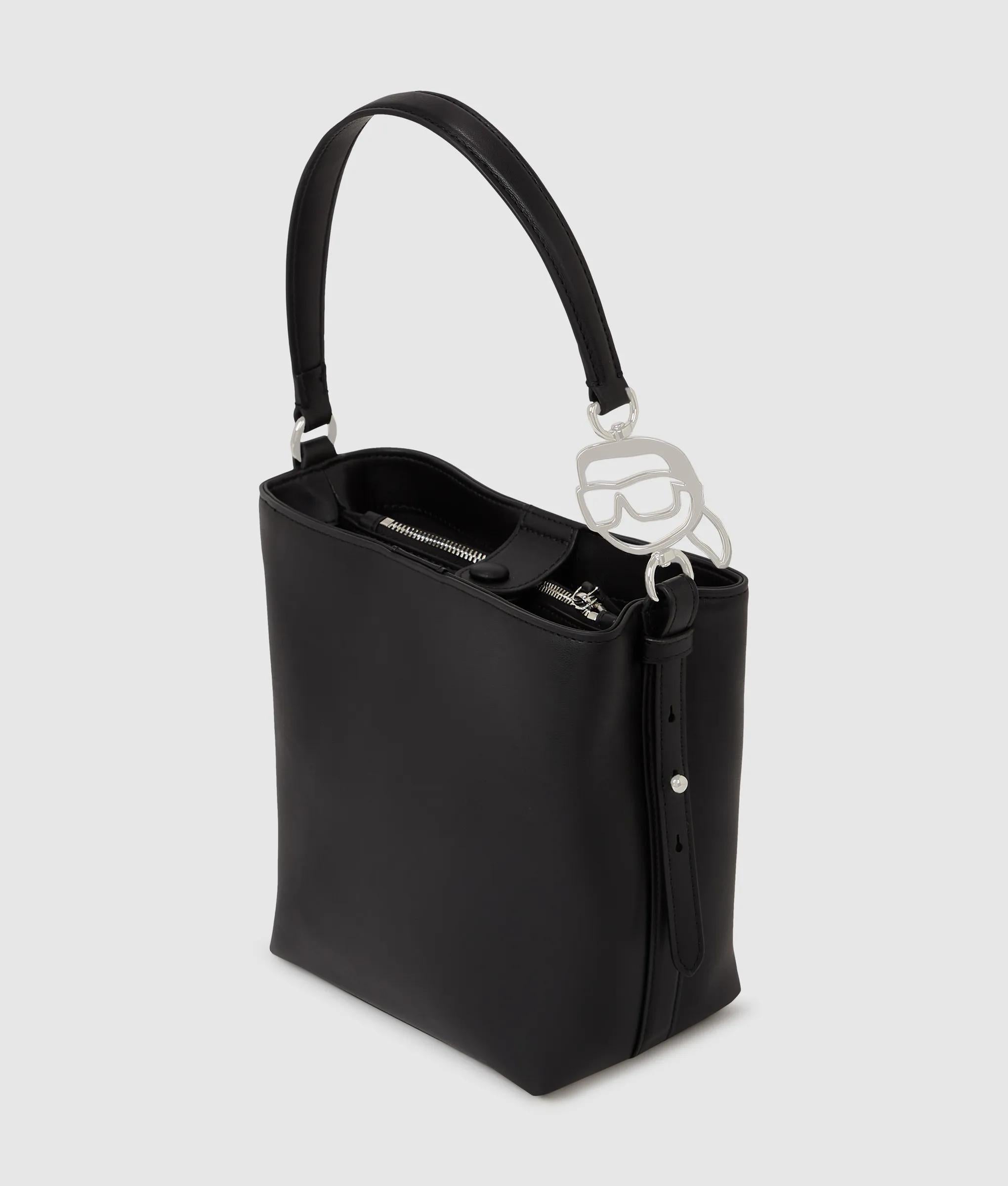 Débordant d’un chic parisien sans effort, ce petit sac seau est doté d’une bandoulière polyvalente et d’un détail ludique Ikon Karl en métal. Sa fermeture à bouton garantit la sécurité de vos essentiels.