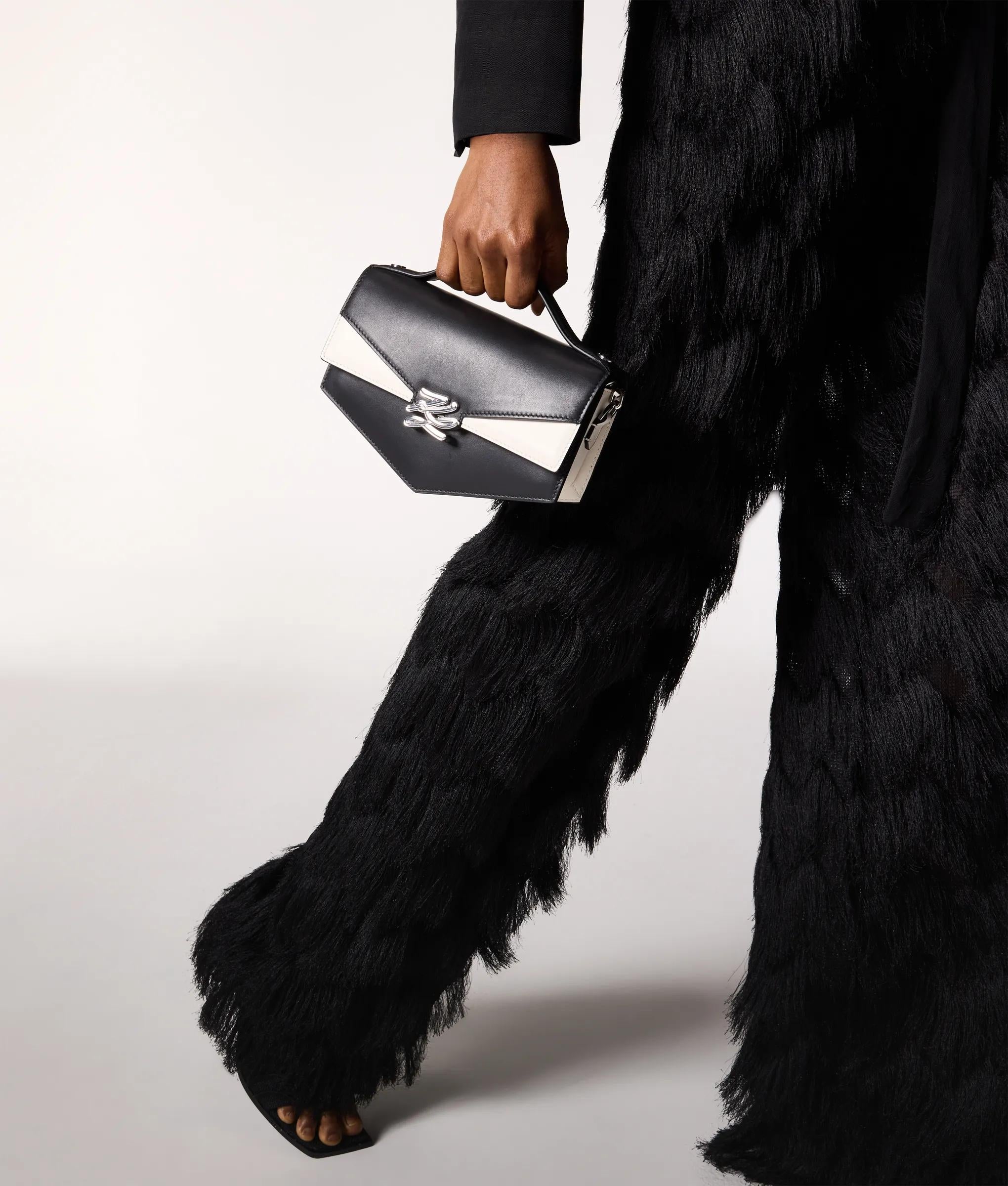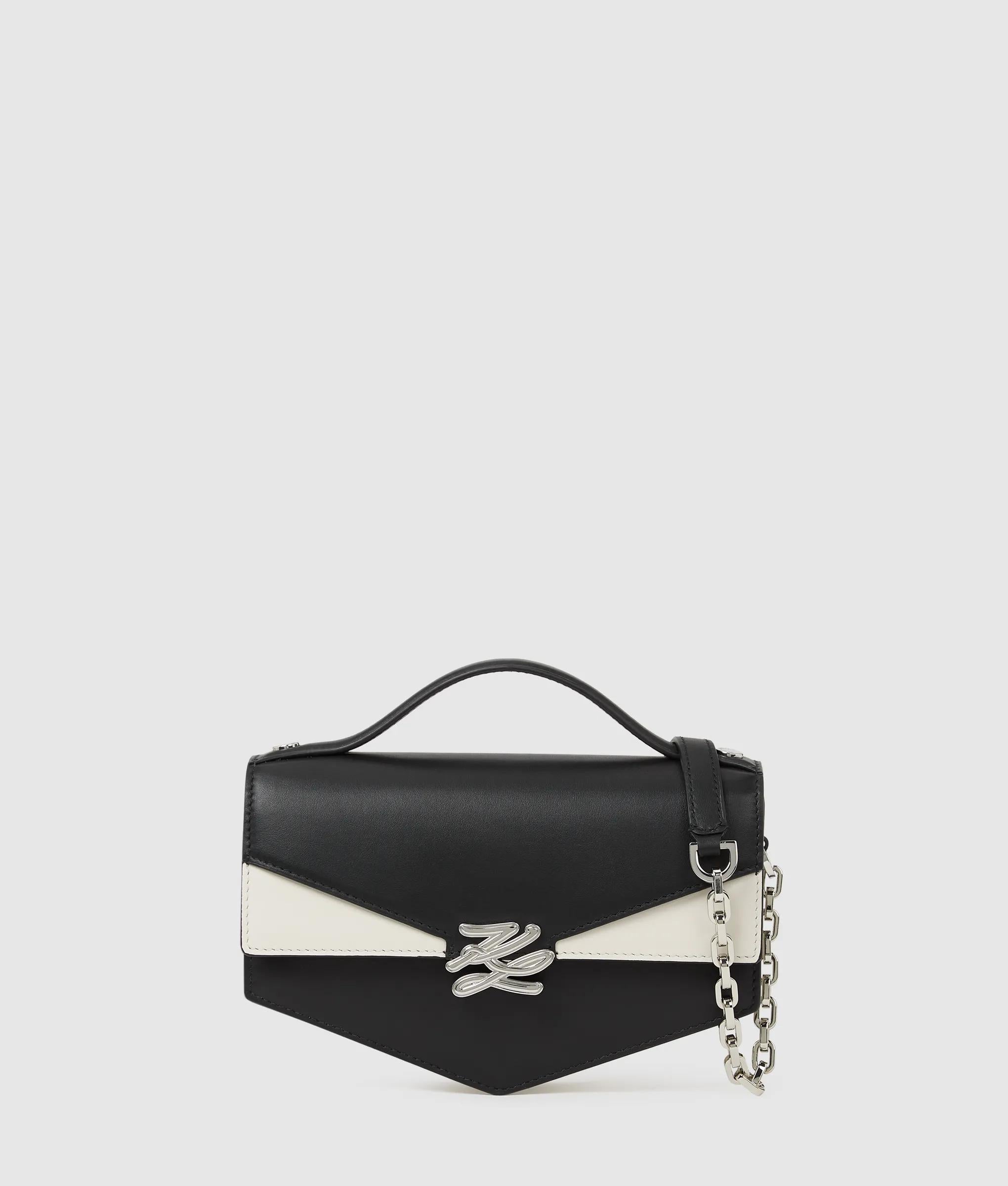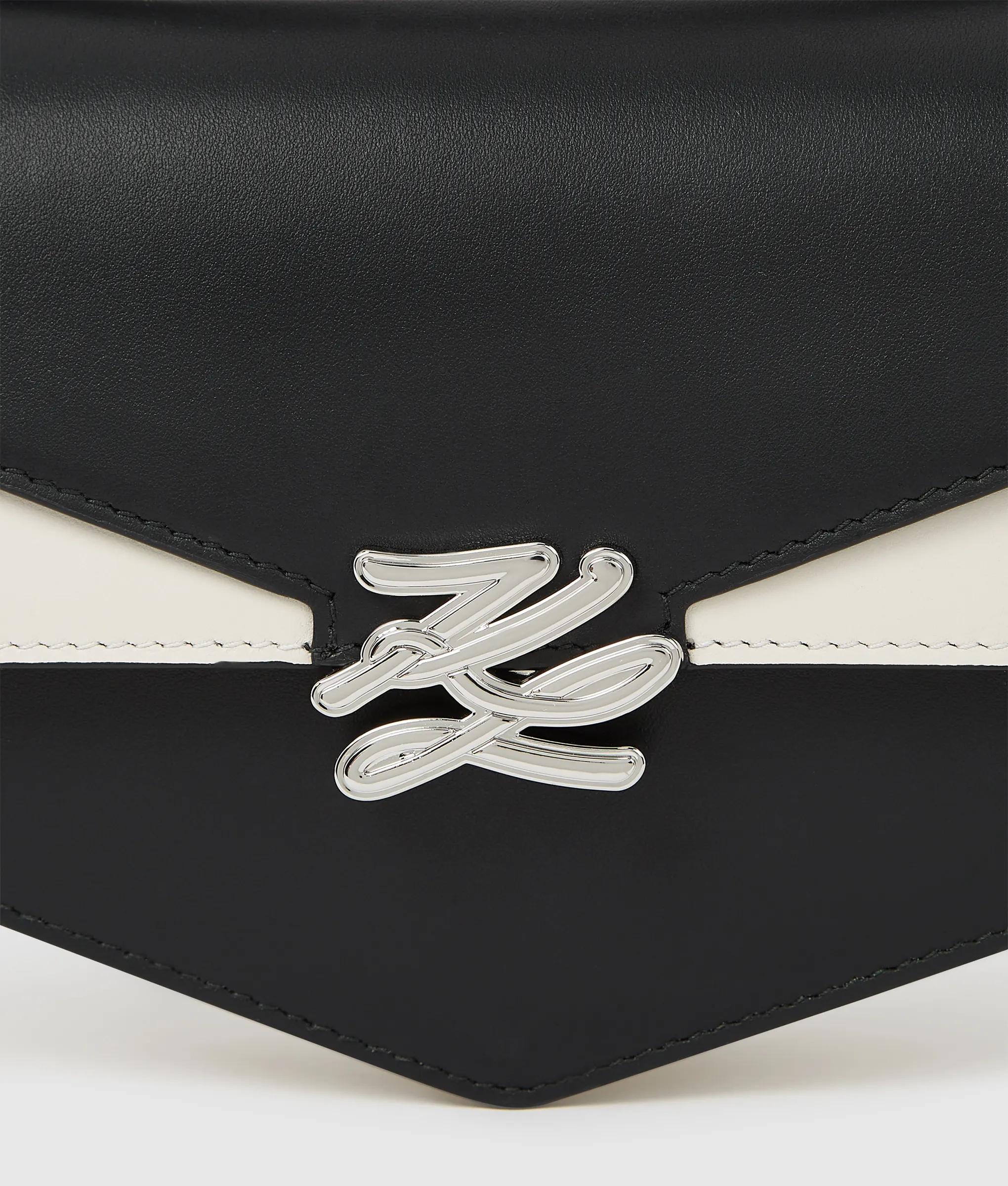 Ce sac à bandoulière élégant associe des empiècements noir et blanc avec l'emblème Autograph, né de la signature de Karl Lagerfeld. Parfait pour une utilisation quotidienne, ce sac dispose d'une chaîne et d'une poignée supérieure lui assurant une grande polyvalence.
