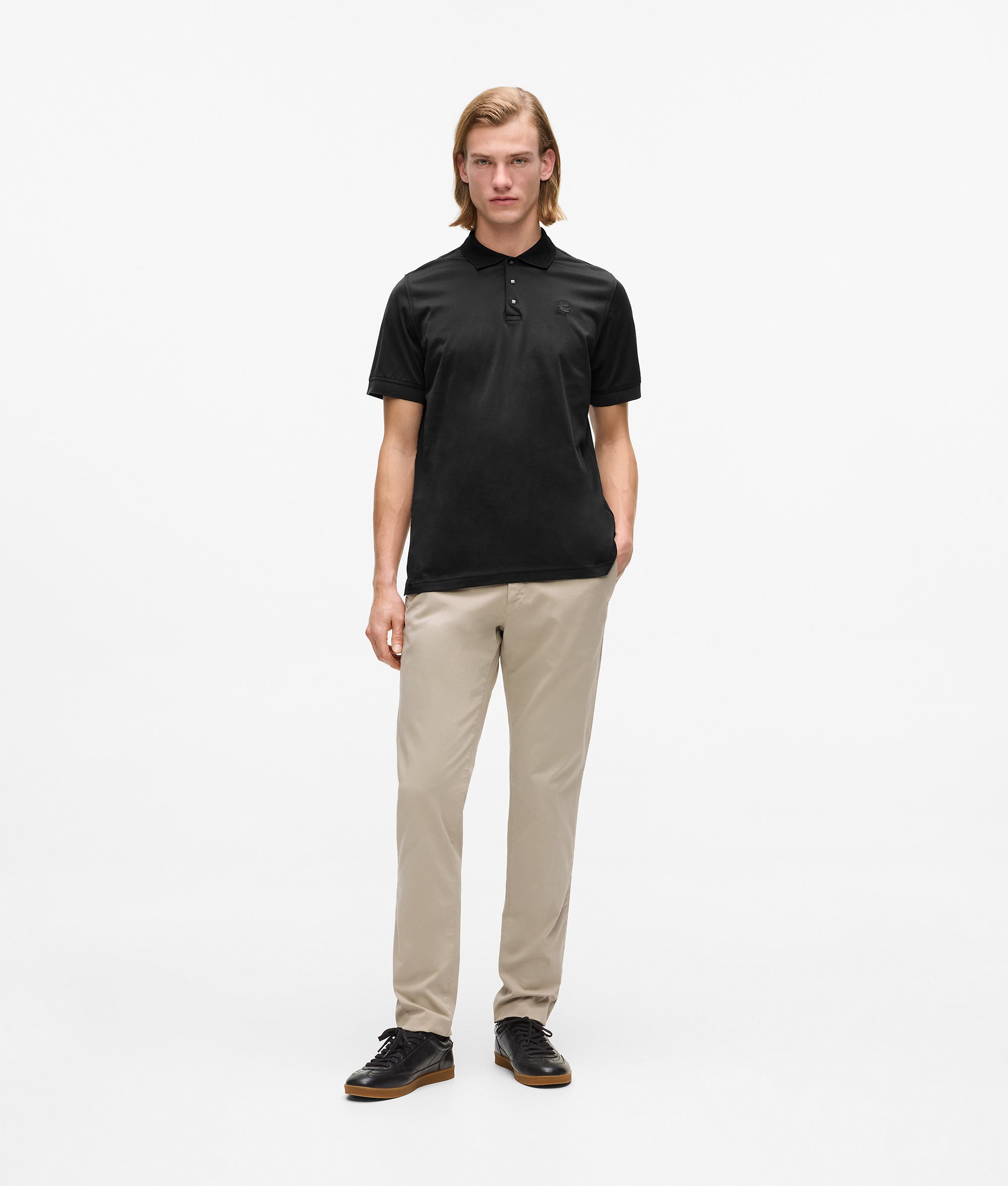 Le coton doux, enrichi d'une touche d'élasticité, structure ce chino habillé, équilibrant structure et aisance. Des lignes épurées et des détails subtils créent une base raffinée pour n'importe quelle tenue.